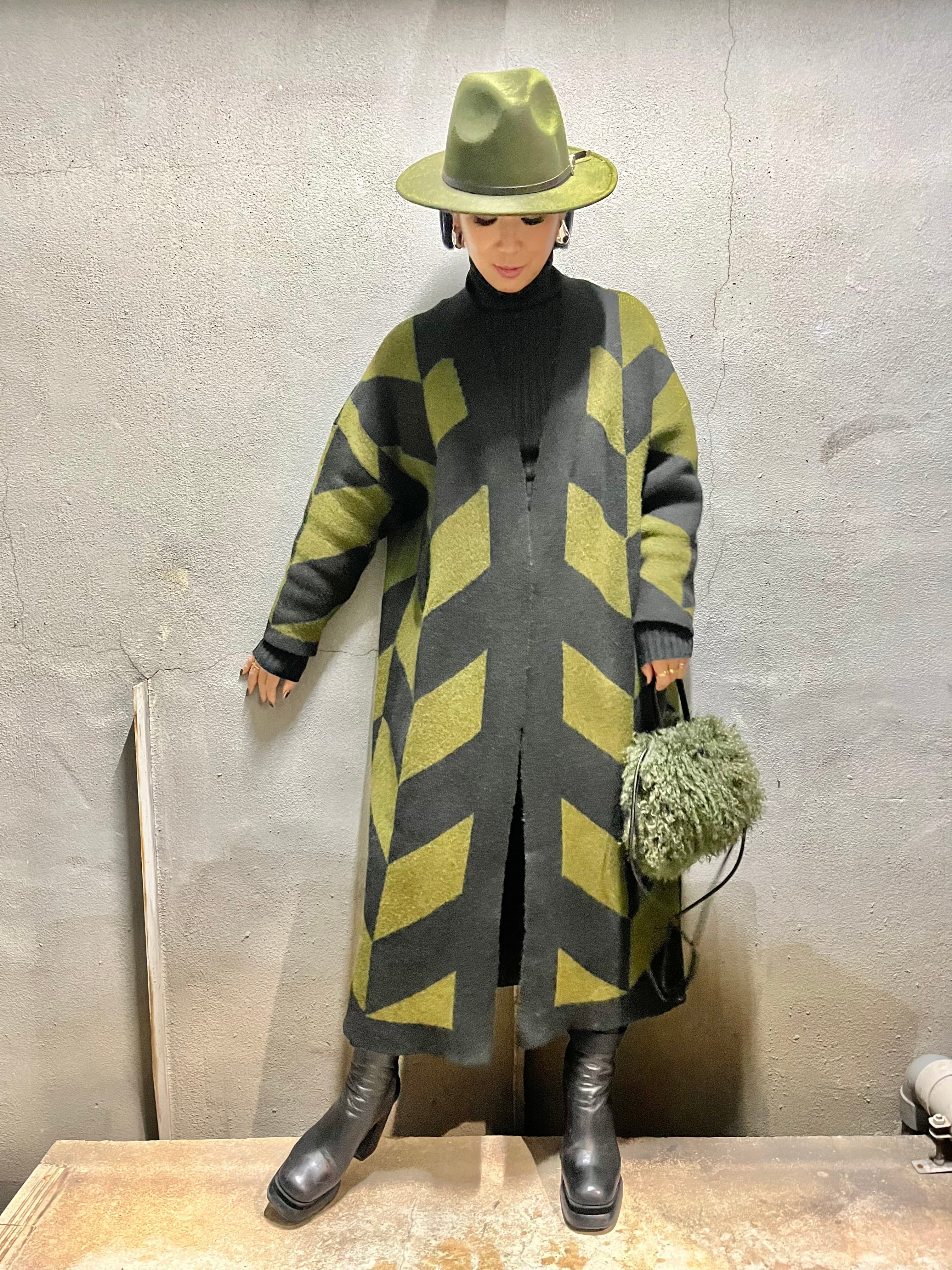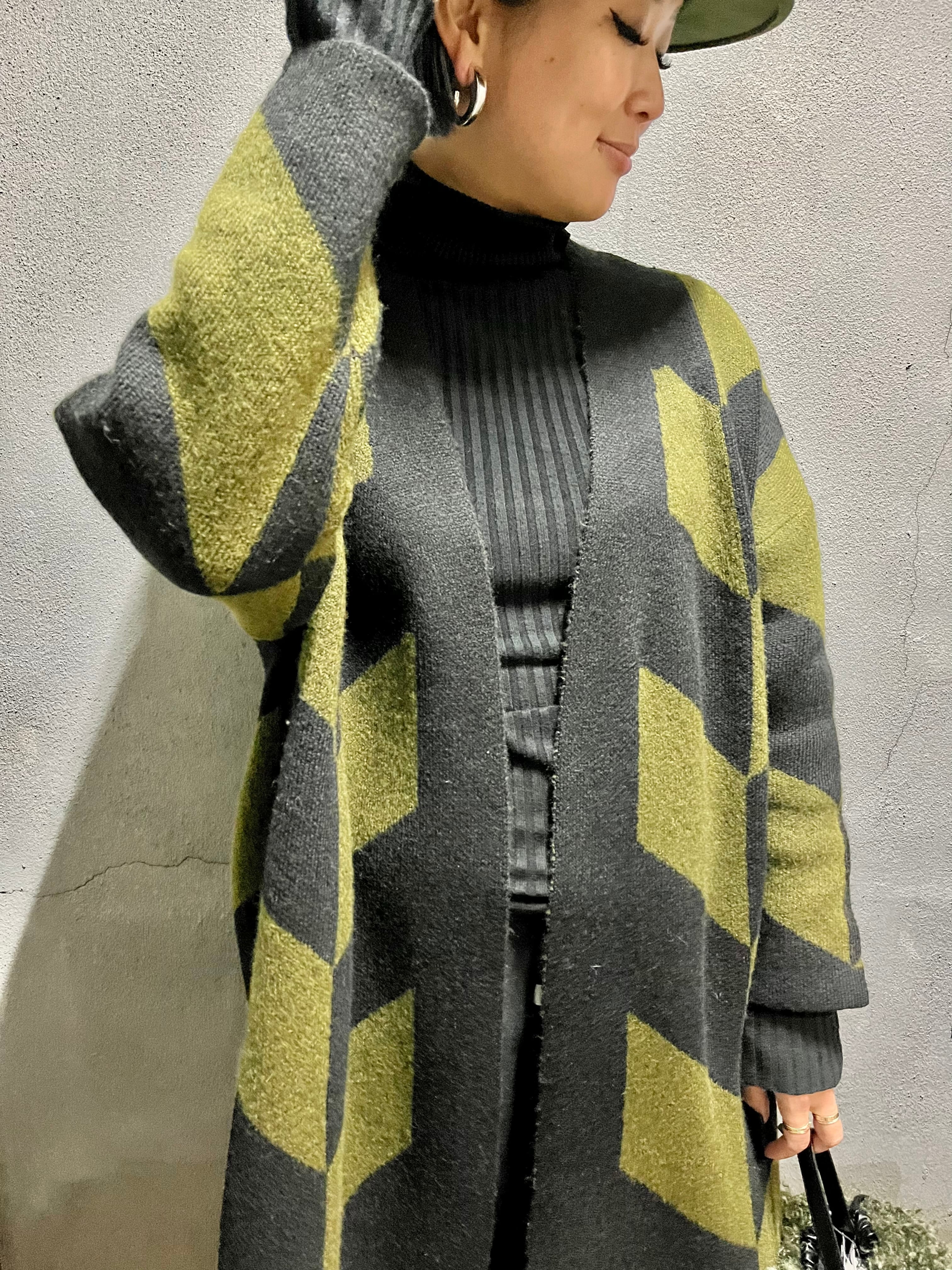 bias design jacquard knit long cardigan ニット カーディガン ニットカーデ ジャガード