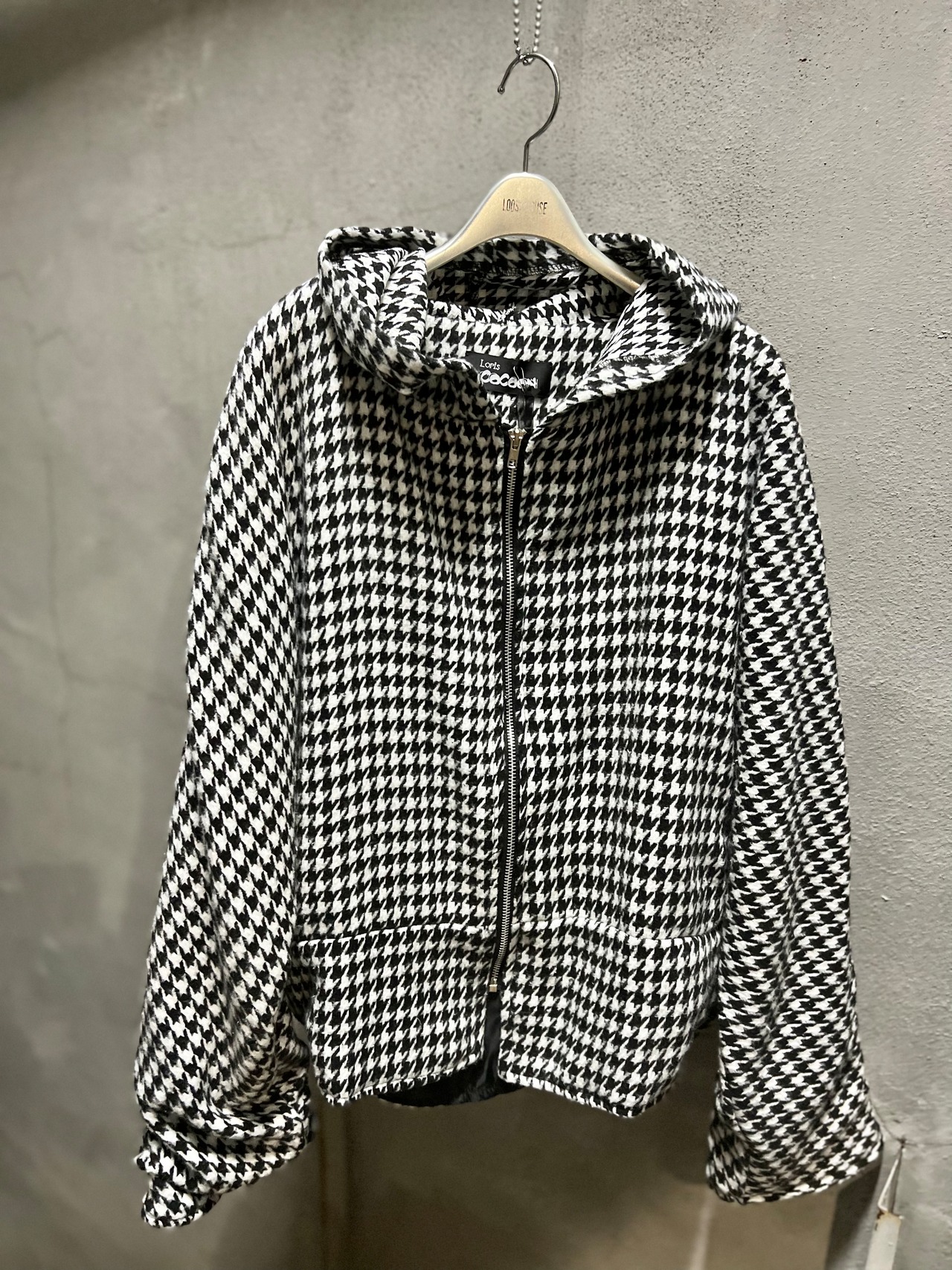 houndstooths pattern hoodie over jacket ジャケット フーディー 千鳥 オーバーサイズ ポケット