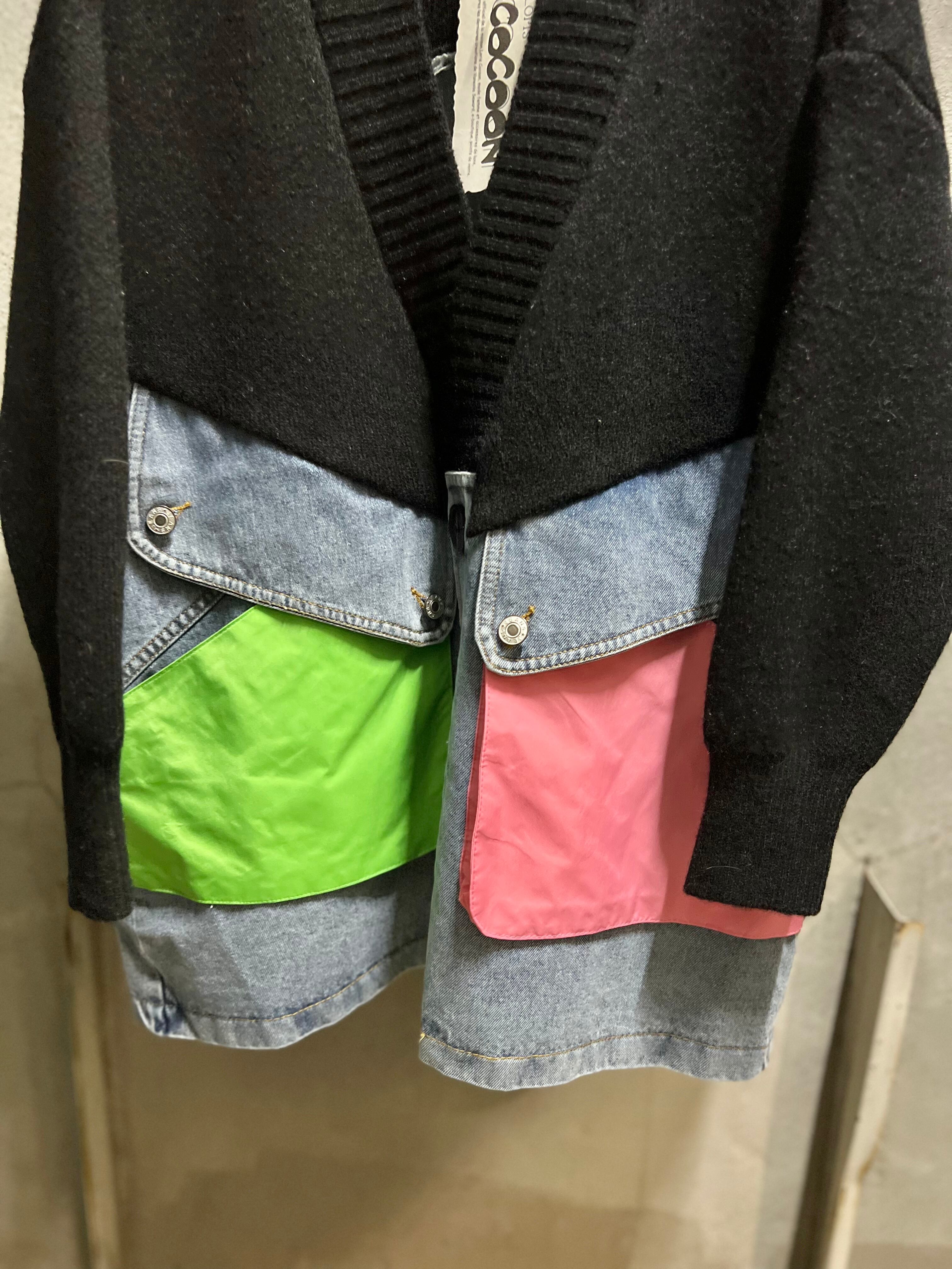 denim change color pocket knit cardigan ニット カーディガン デニム ポケット