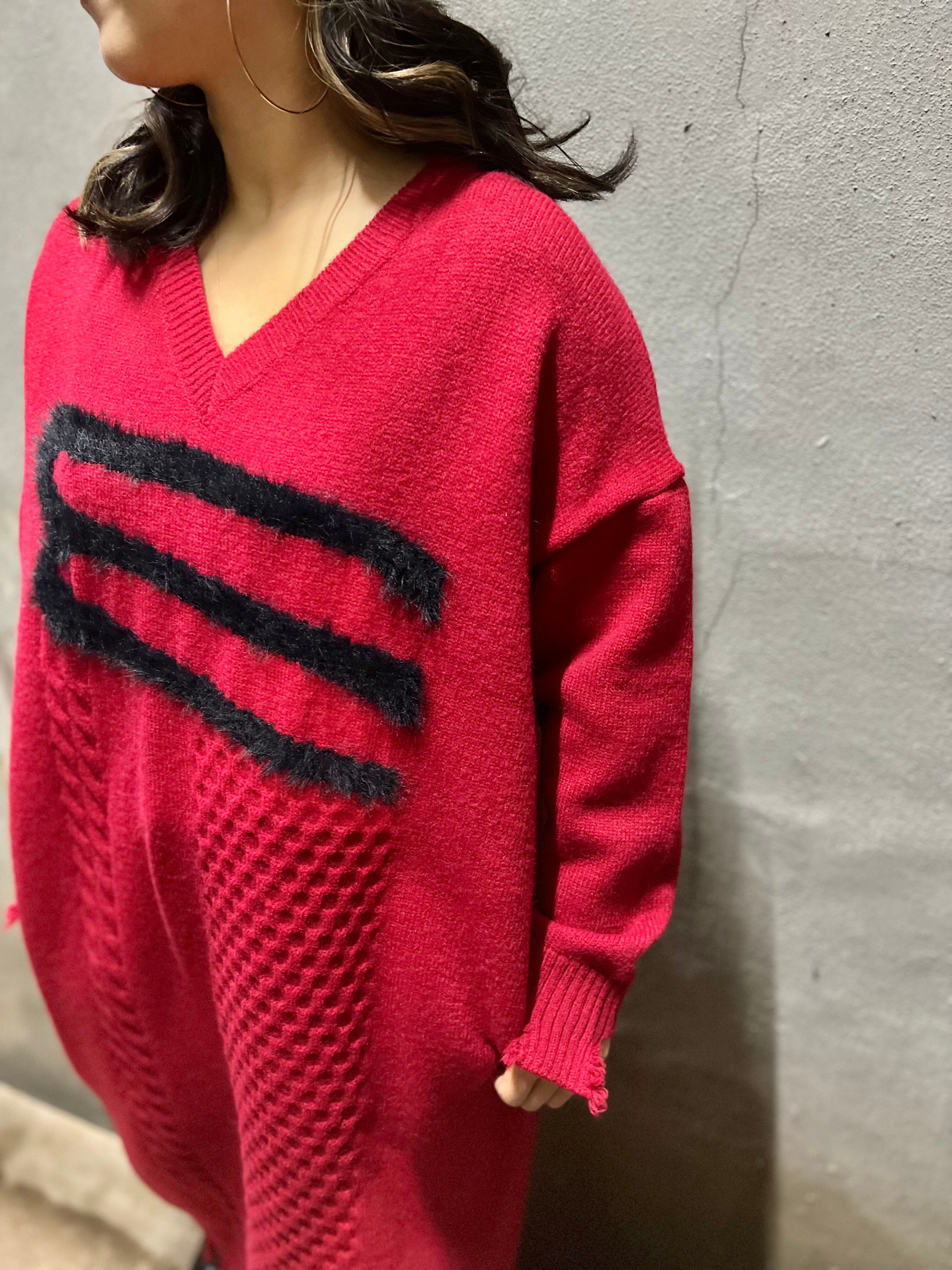 bi-color point V-neck knit long one-piece ニット ワンピース ワンピ ロング丈