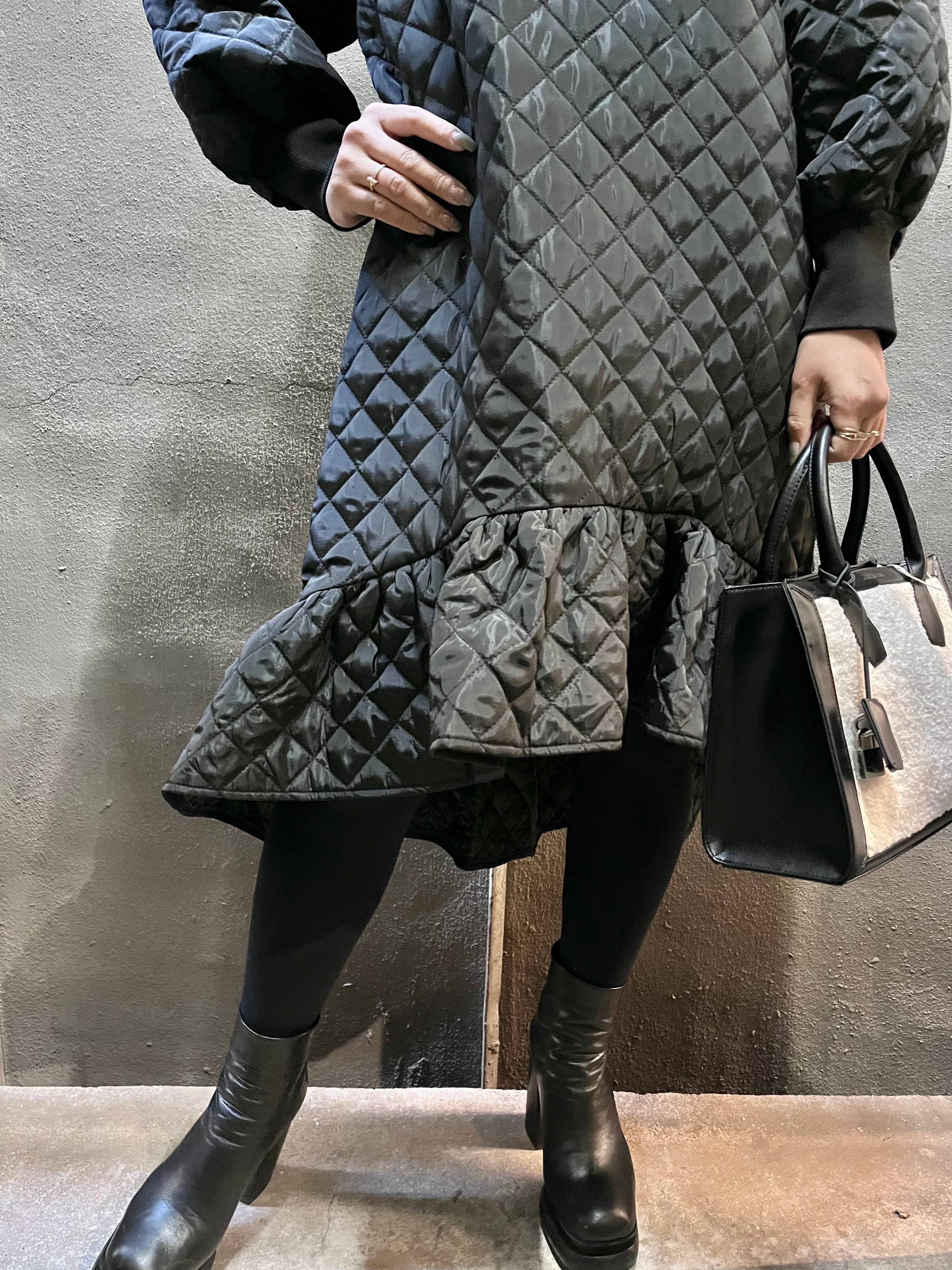quilting high neck frill one-piece ワンピース ワンピ キルティング ハイネック フリル