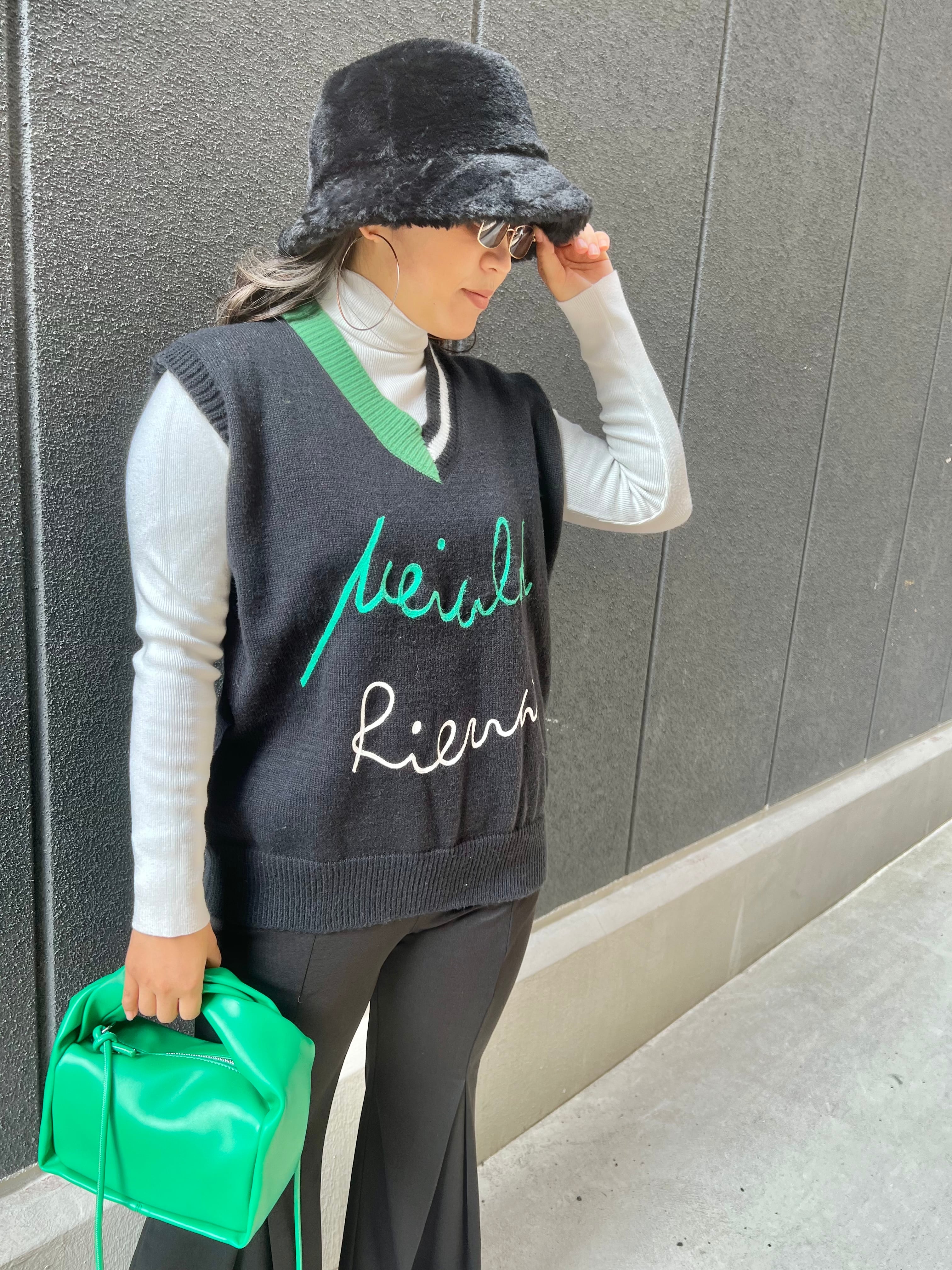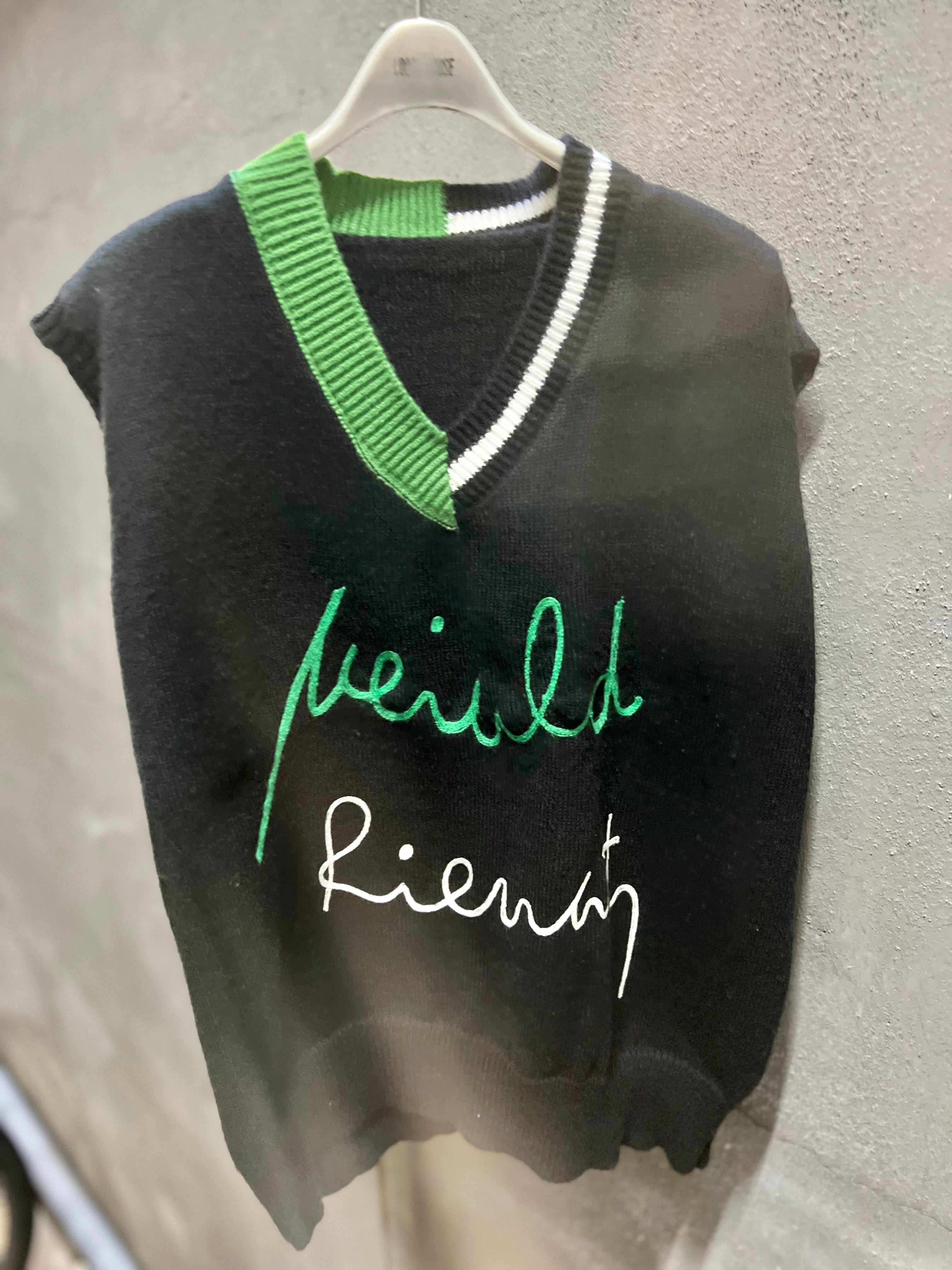 over size knit ニット ベスト トップス 刺繍入り オーバーサイズ