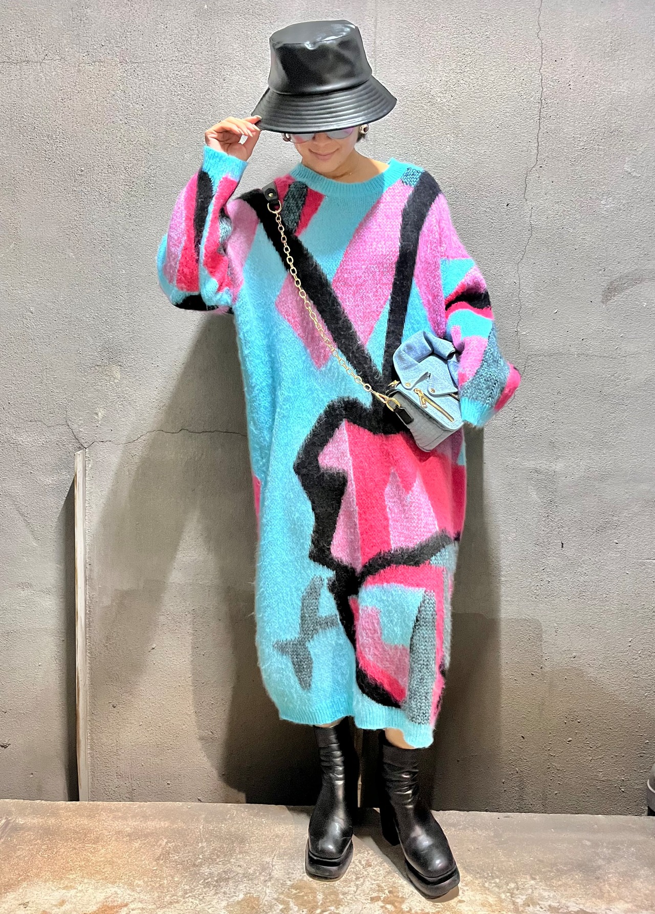 art pattern knit long one-piece ニット ワンピース ニットワンピ アート ロングワンピ