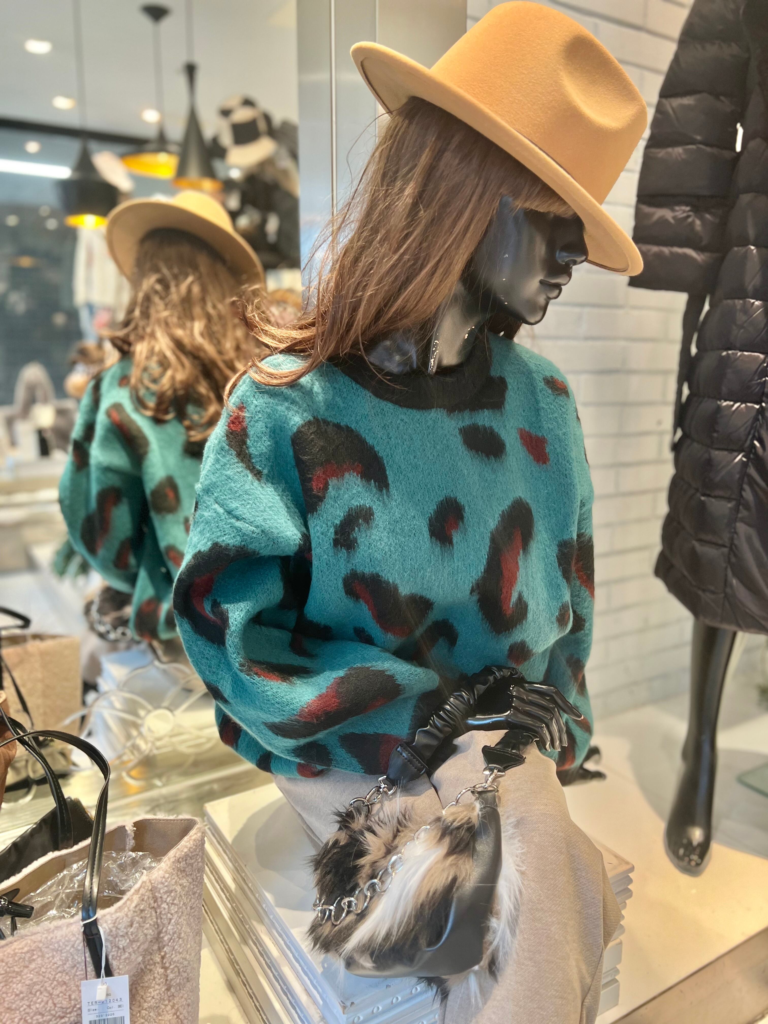 shaggy jacquard leopard big sleeve knit tops ニット トップス セーター レオパード 豹柄 ビッグスリーブ