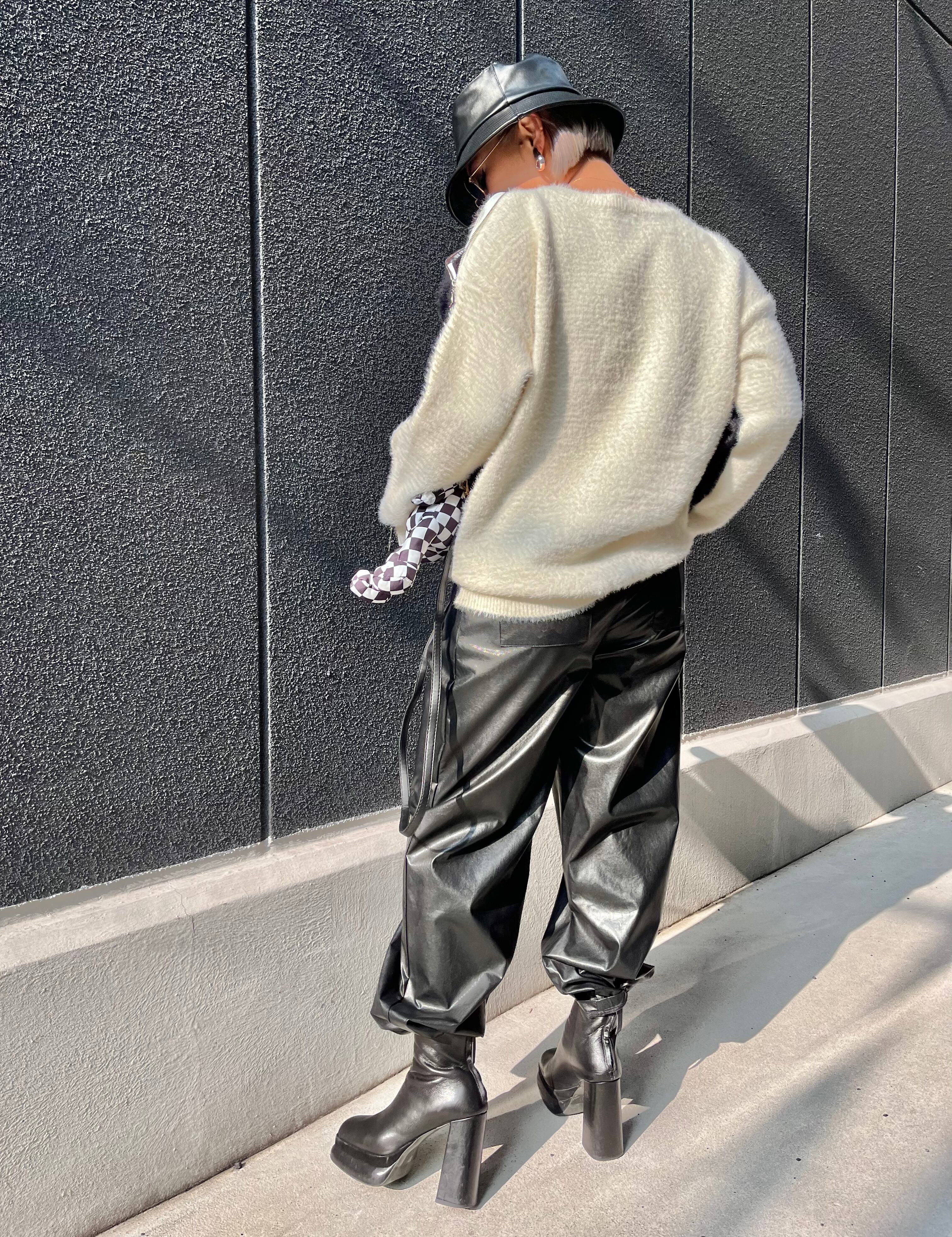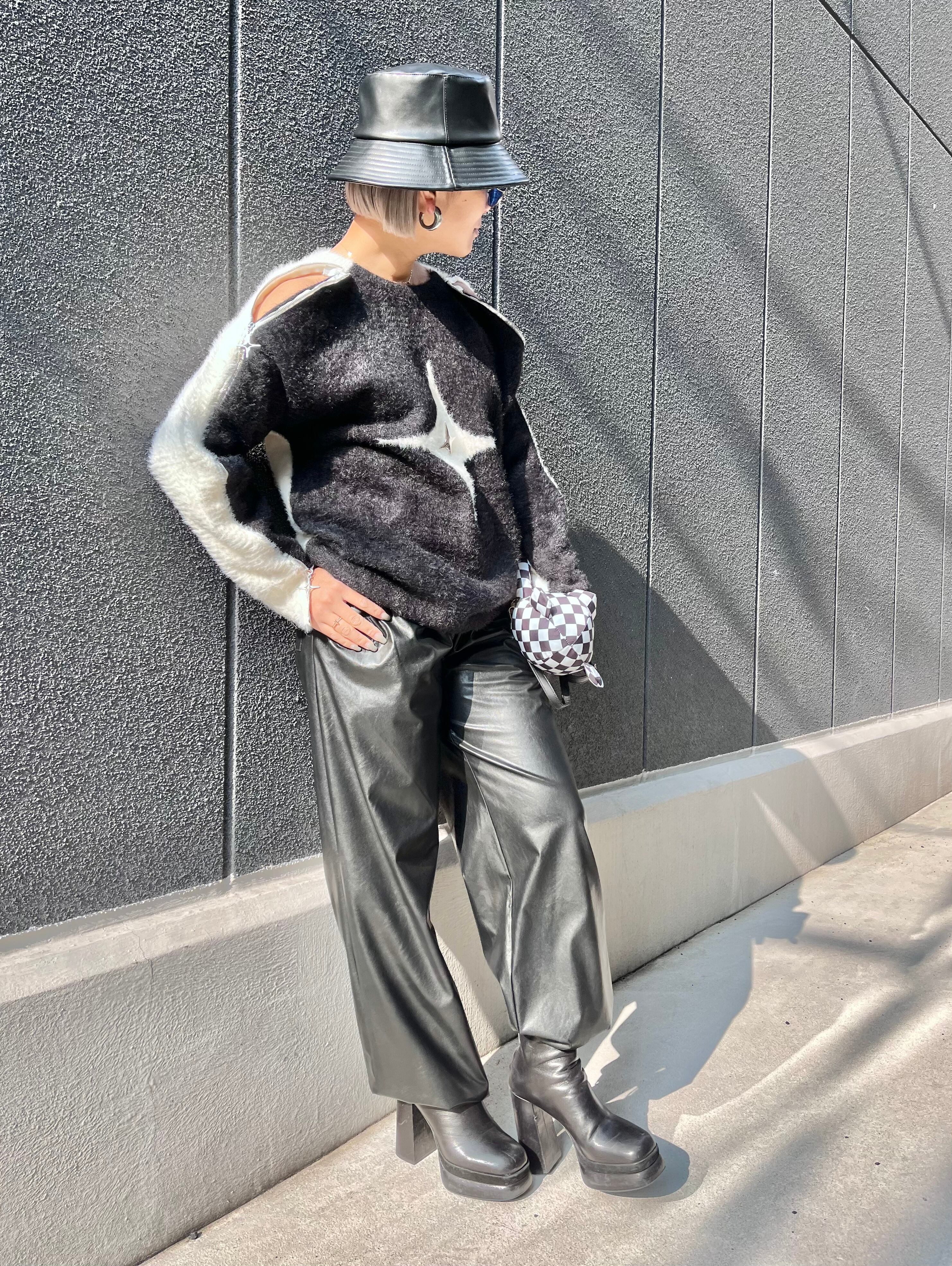square star zip open design knit tops ニット トップス シャギー ジップ 四角星 バイカラー