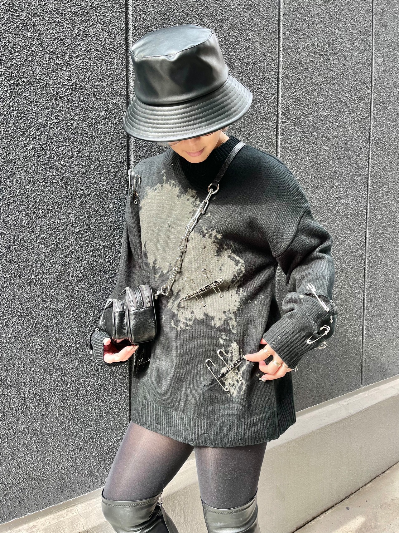 hard damage safety pin knit sweater ニット セーター ダメージ 安全ピン クール かっこいい