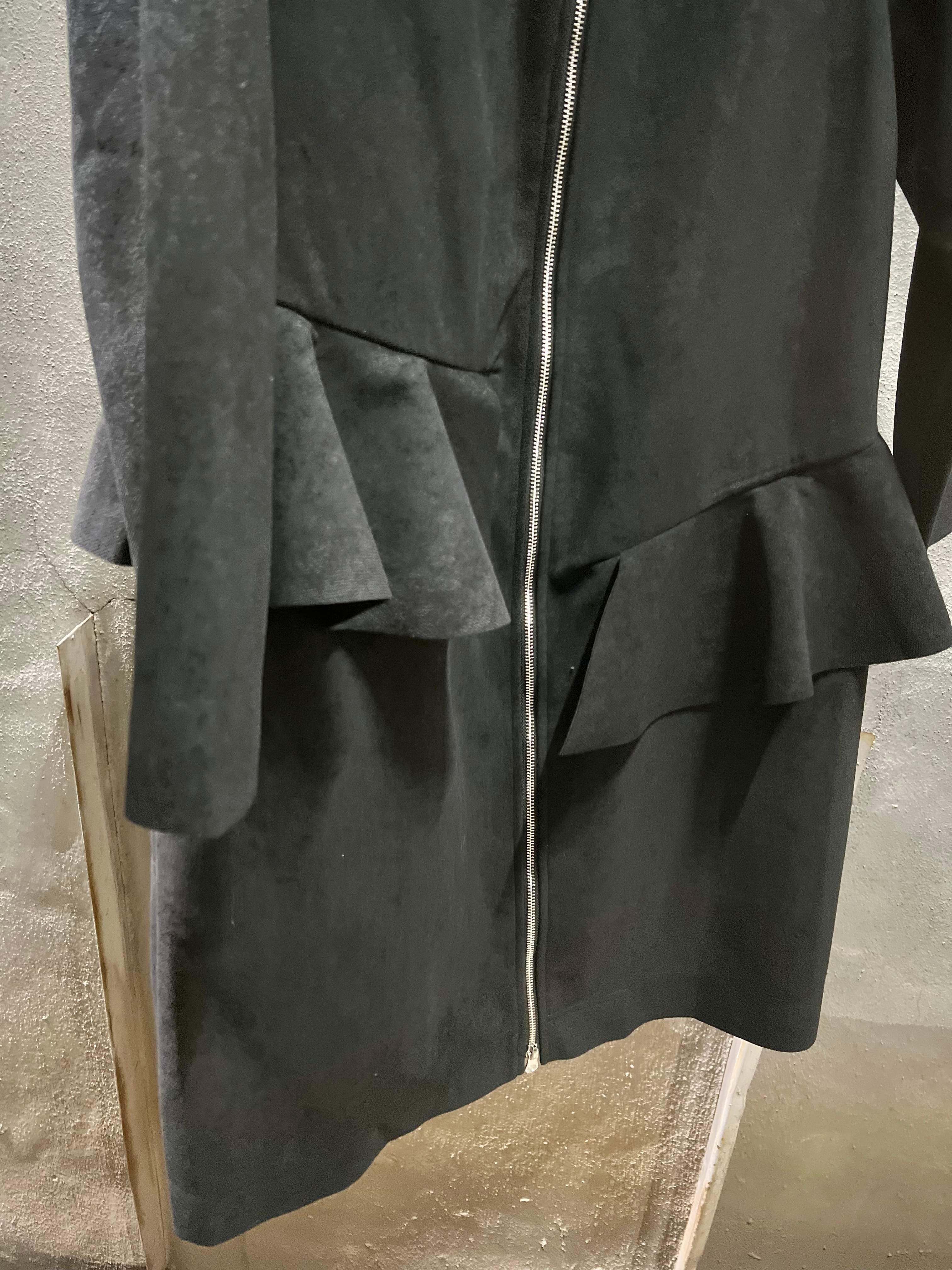 frill design collarless W-zip coat コート ワンピース フリル ジッパー ノーカラー