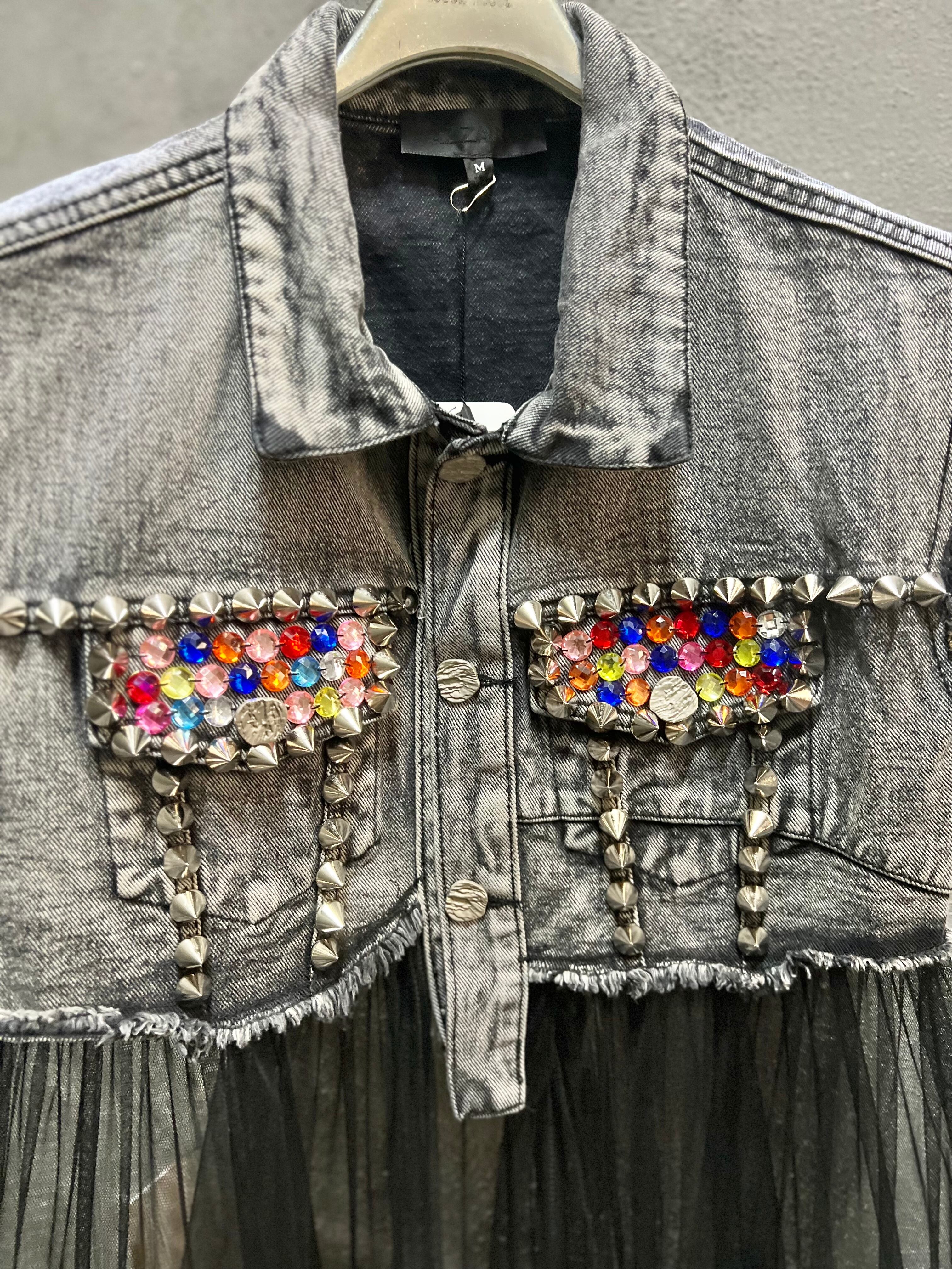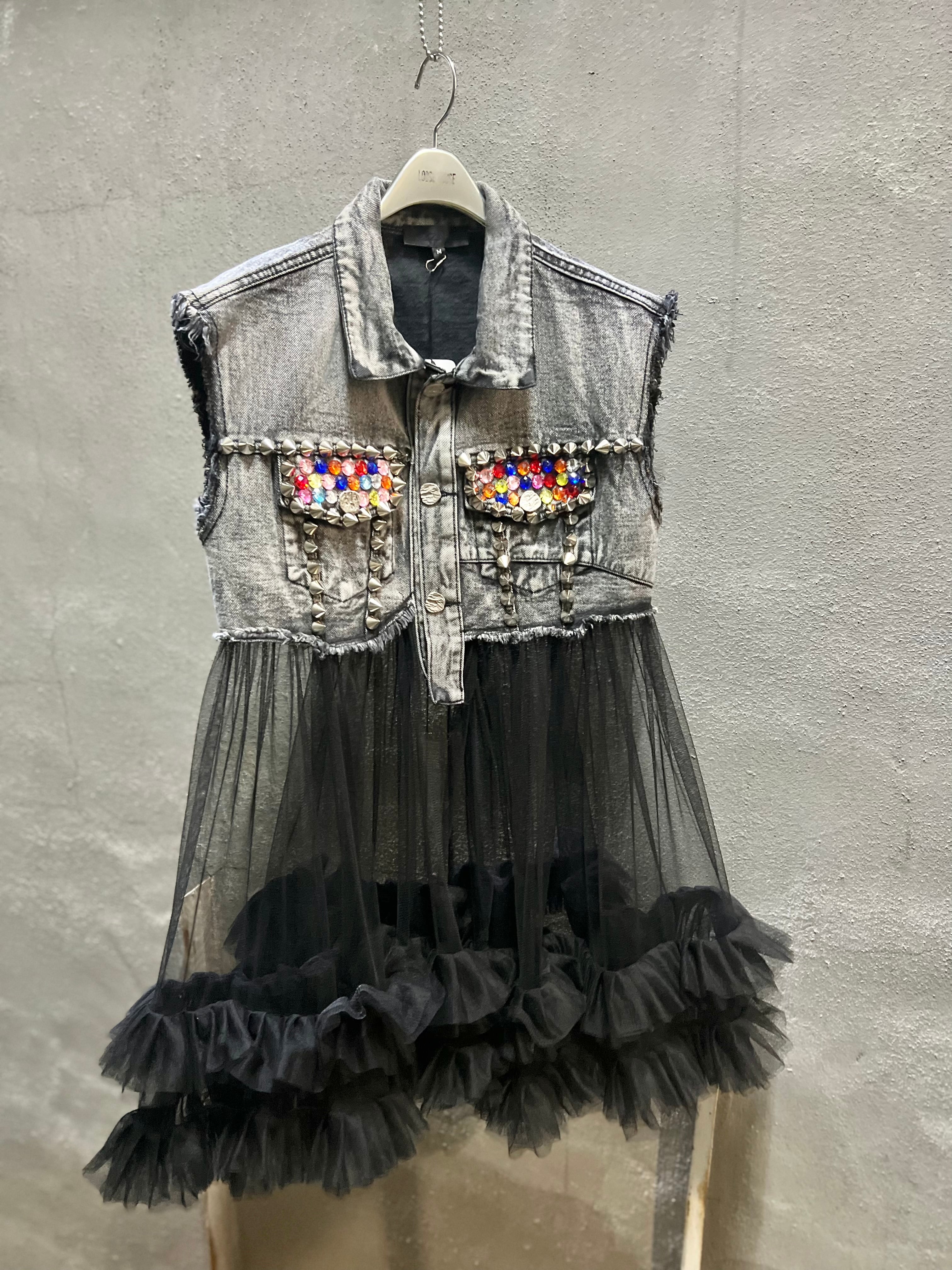 denim × tulle bijou deco vest ベスト ジレ デニム チュール ビジュー デザインベスト