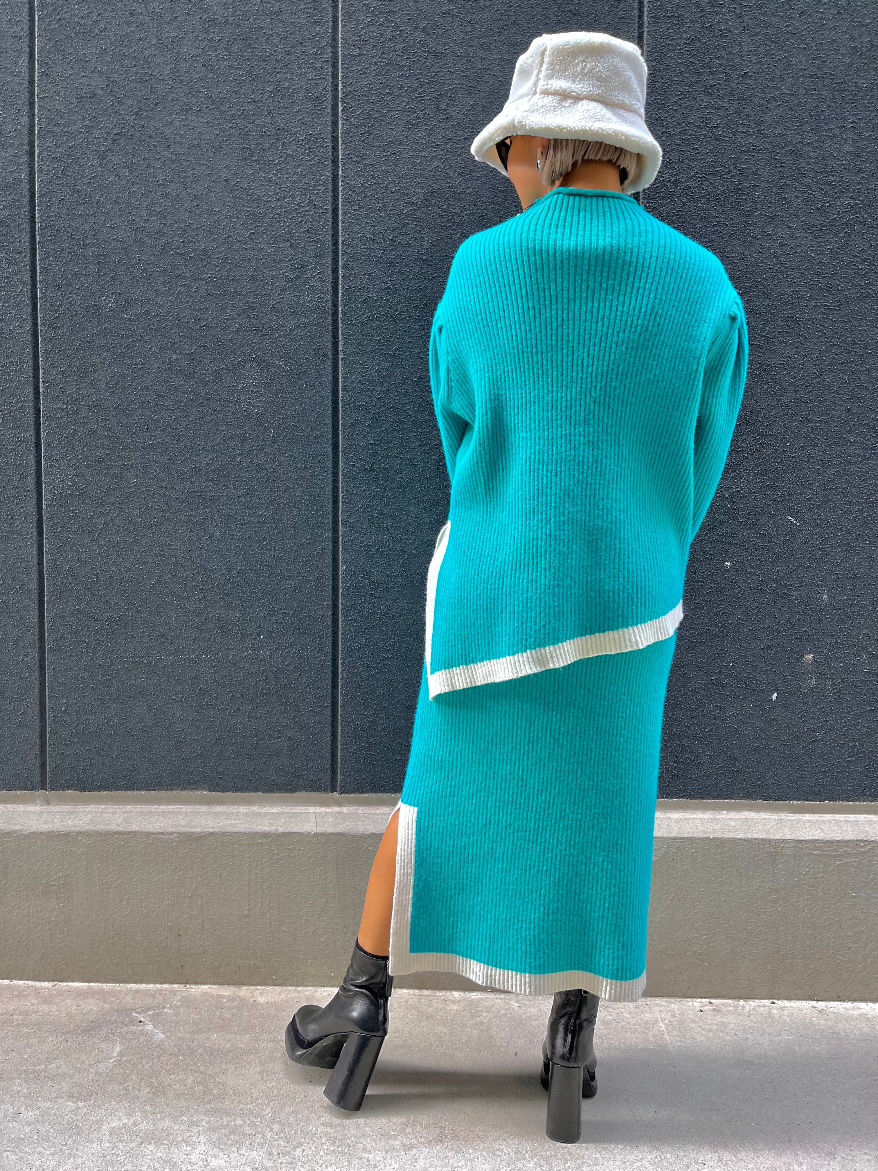 bi-color trimming knit tops × skirt 2P set ニット セットアップ 2点セット トップス スカート バイカラー きれい色