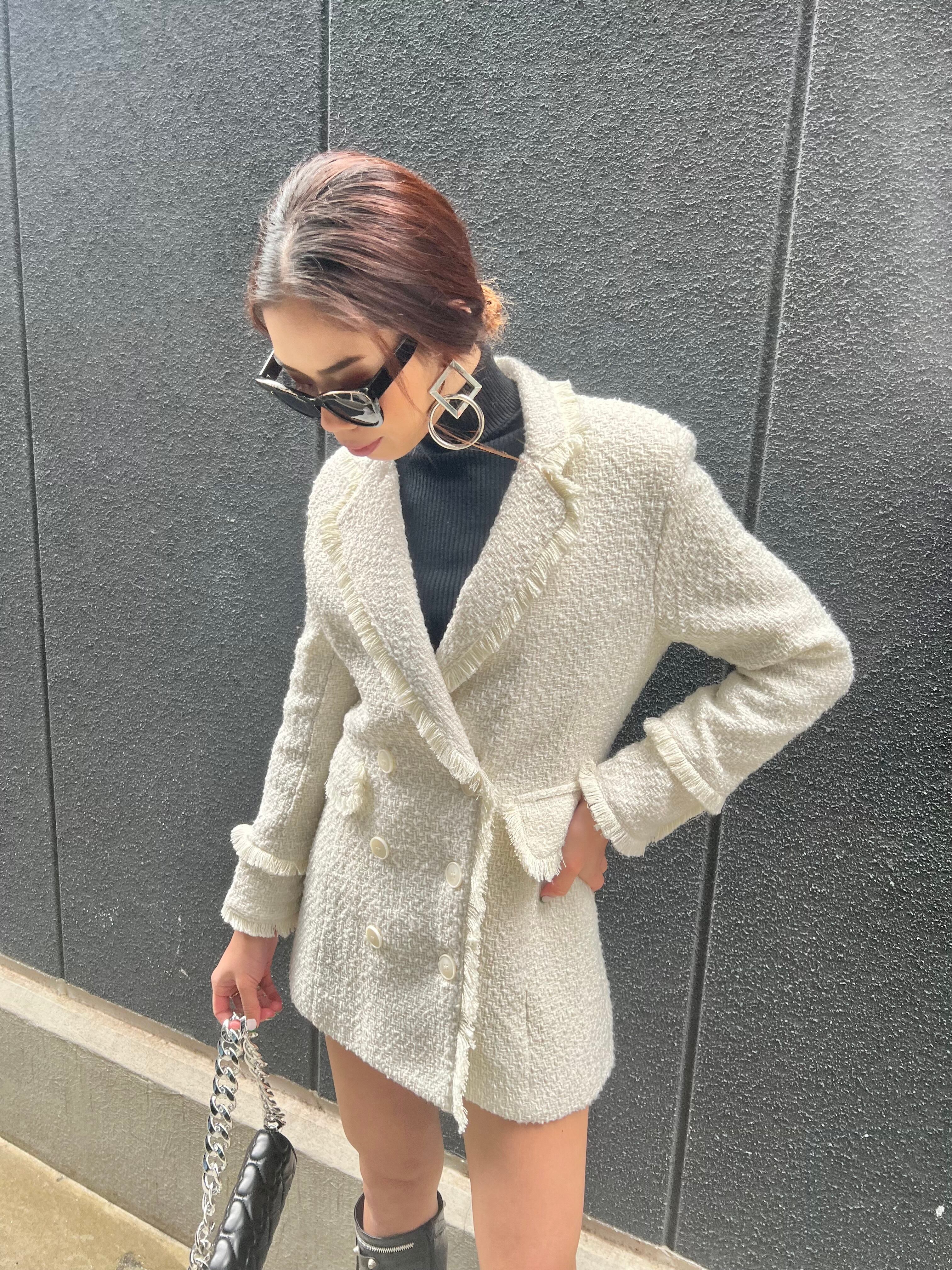 tweed long jacket ジャケット ミニワンピ ツィード きれいめ 上品 清楚