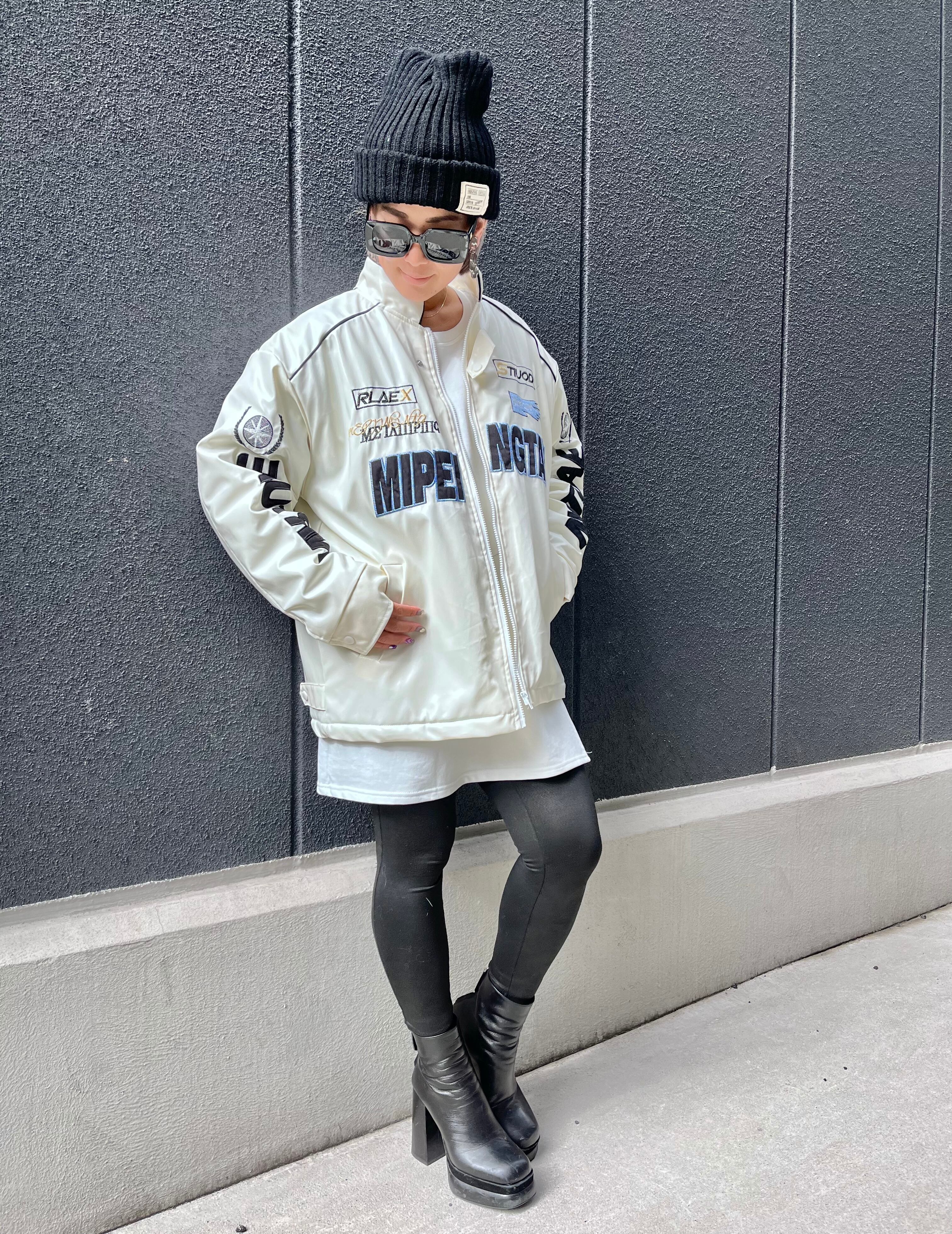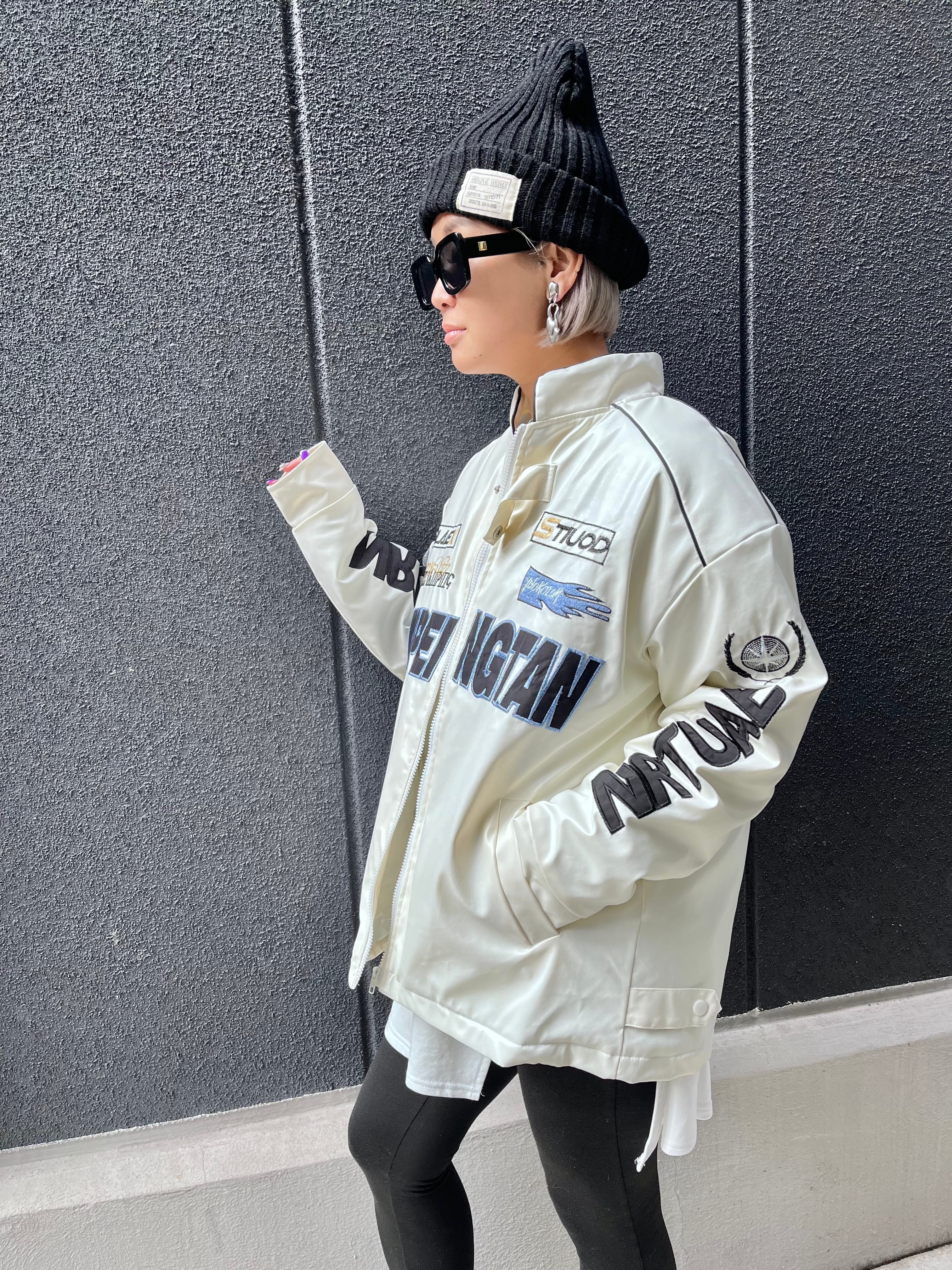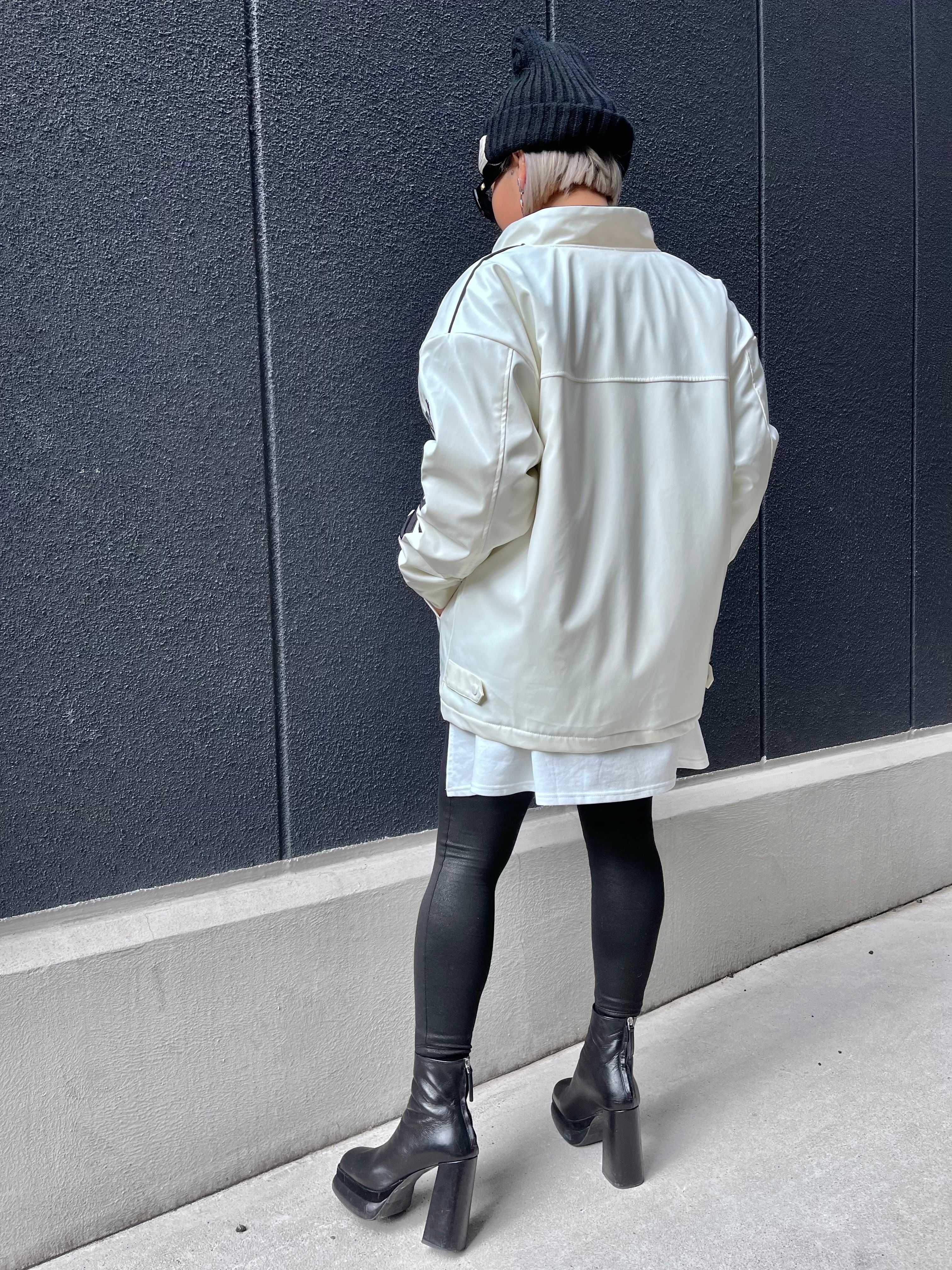 eco leather unisex design jacket ジャケット オーバーサイズ エコレザー 合皮 中綿 カジュアル