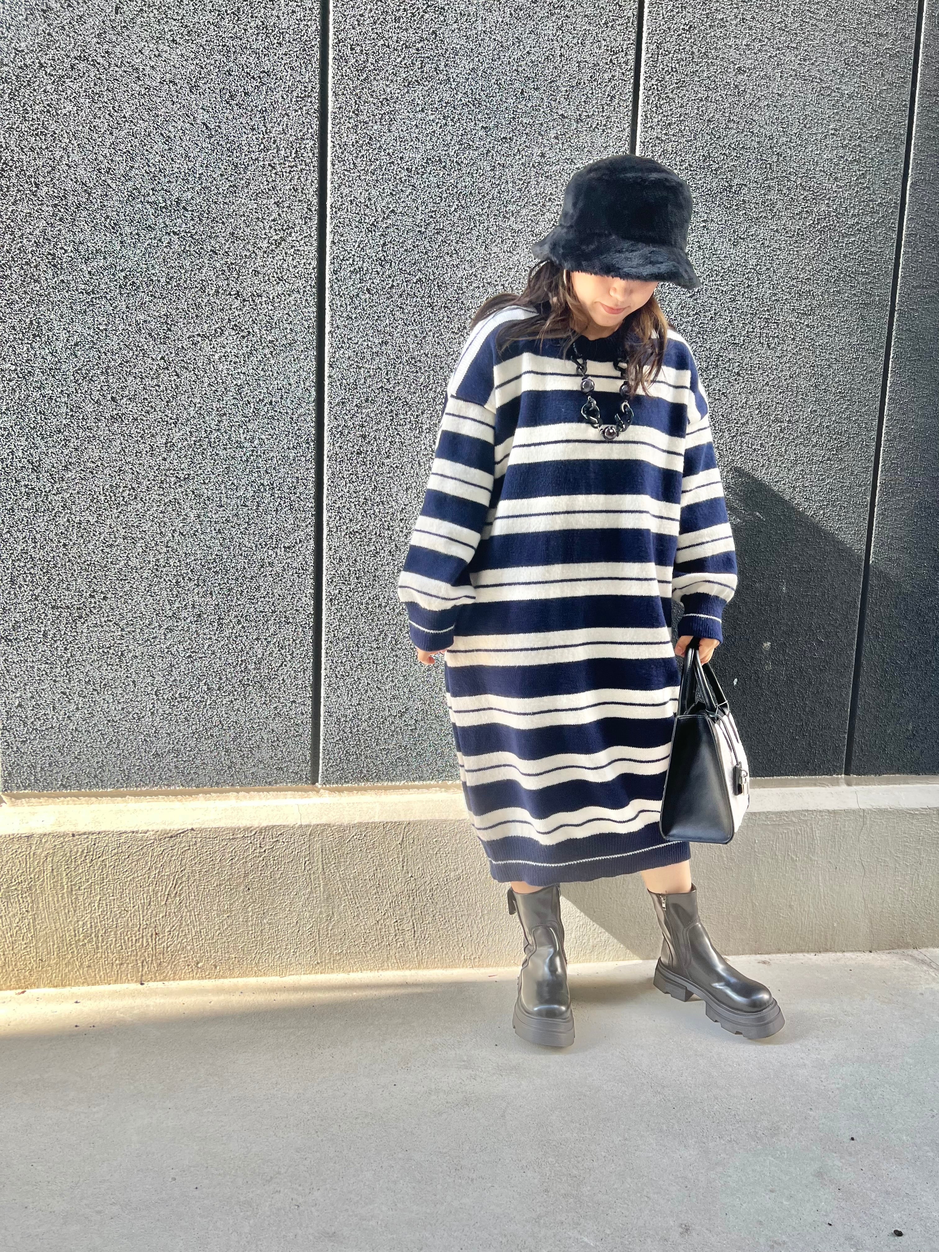 border knit over size one-piece ワンピース ワンピ ニットワンピ ボーダー オーバーサイズ ゆったりめ