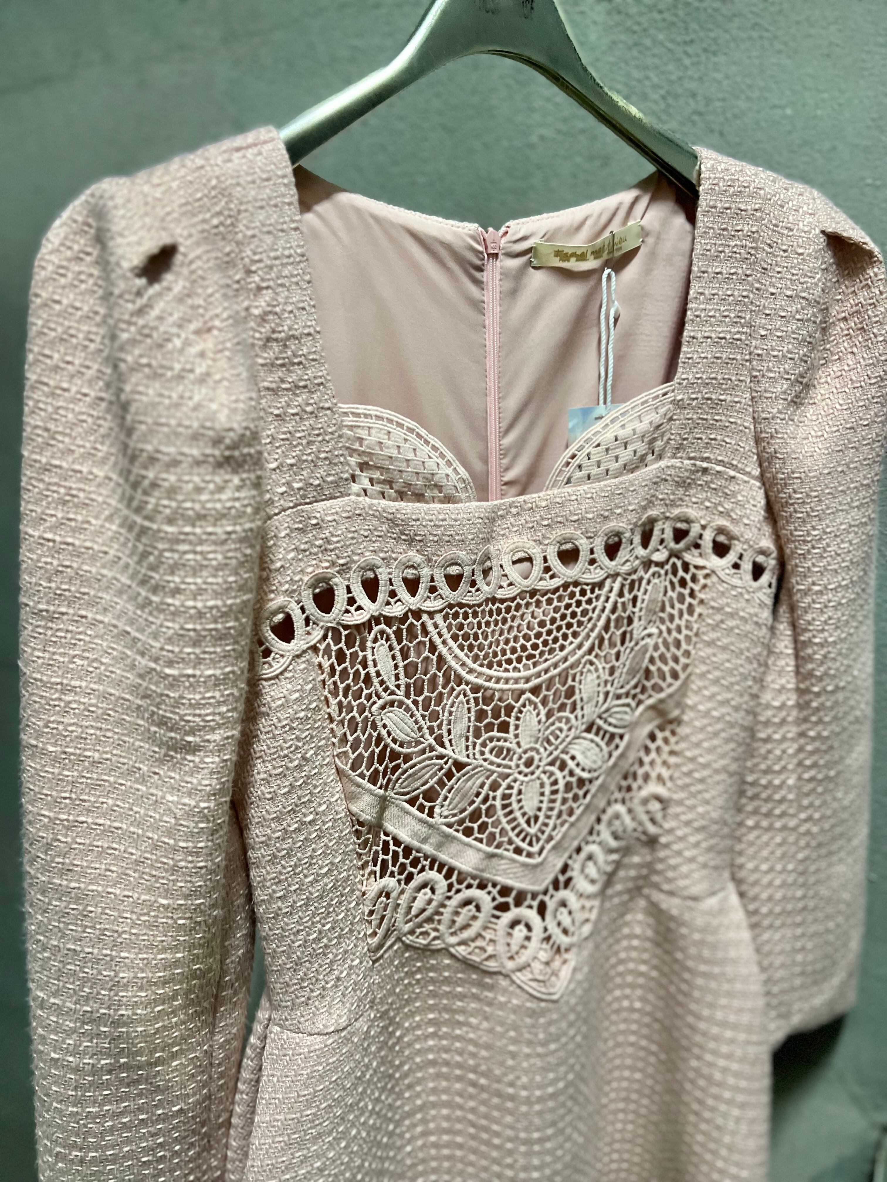 tweed code lace curvy silhouette mini one-piece ワンピース ミニワンピ ツィード レース ドレス 結婚式 二次会 パーティー