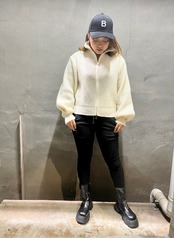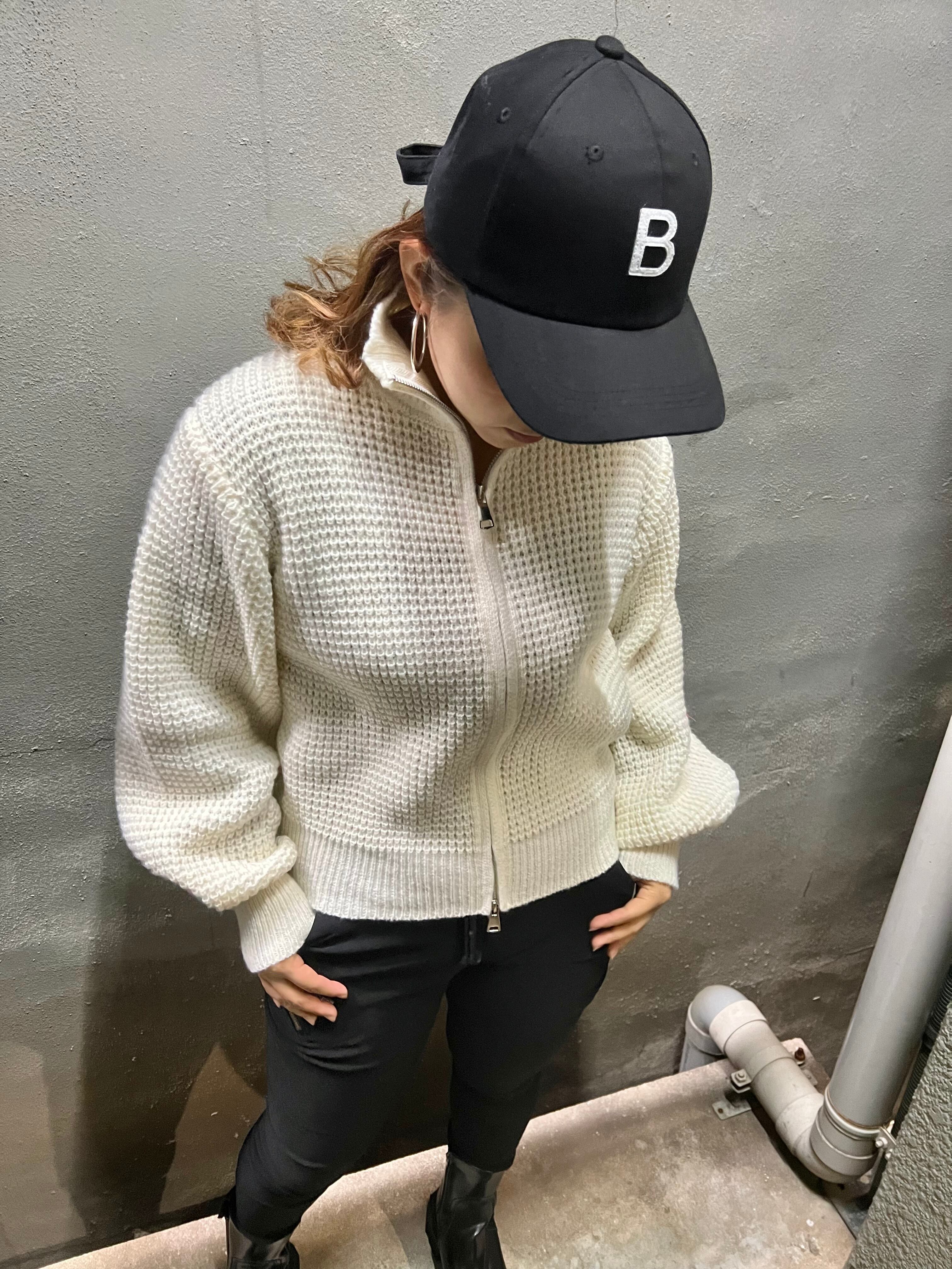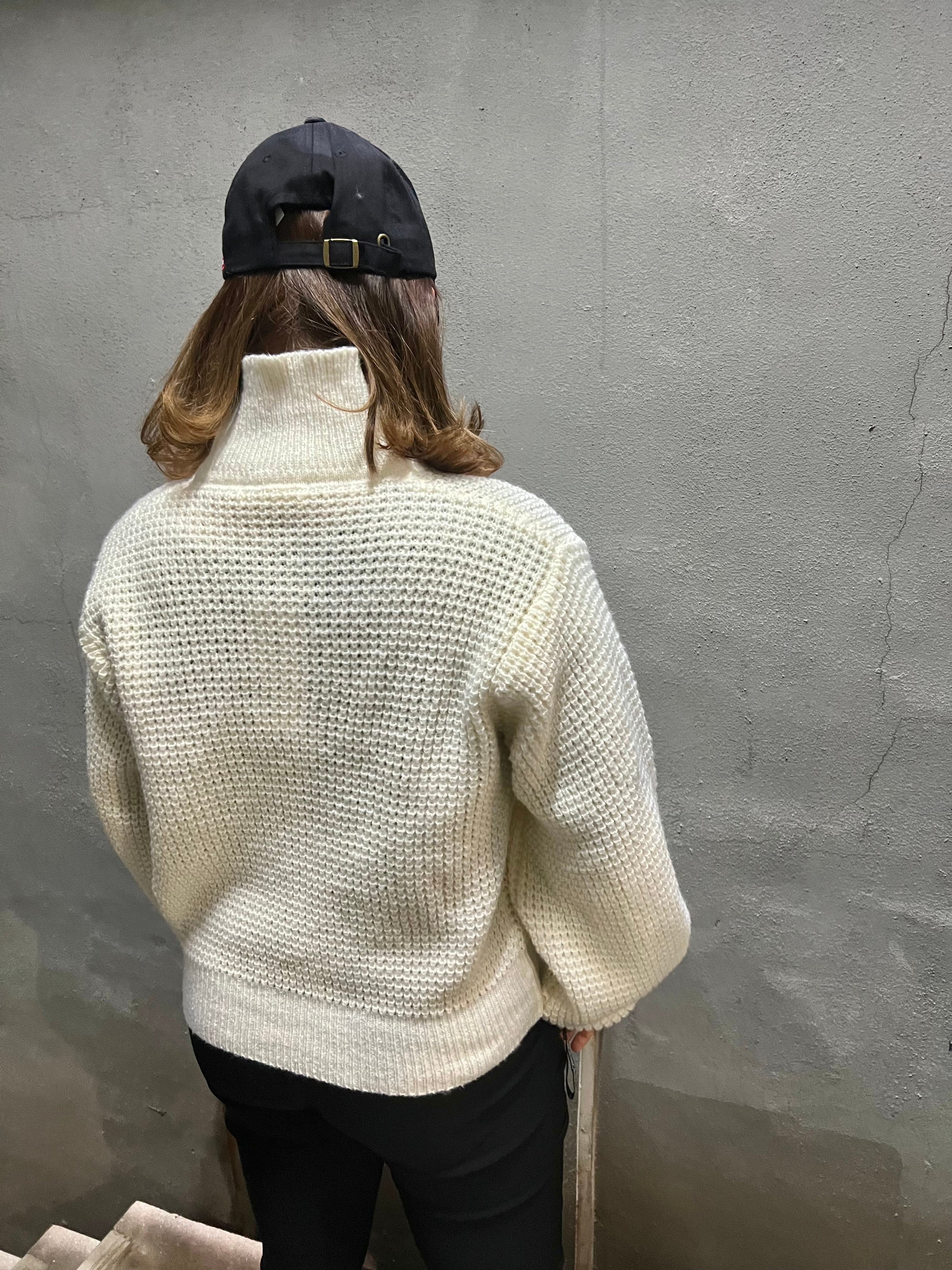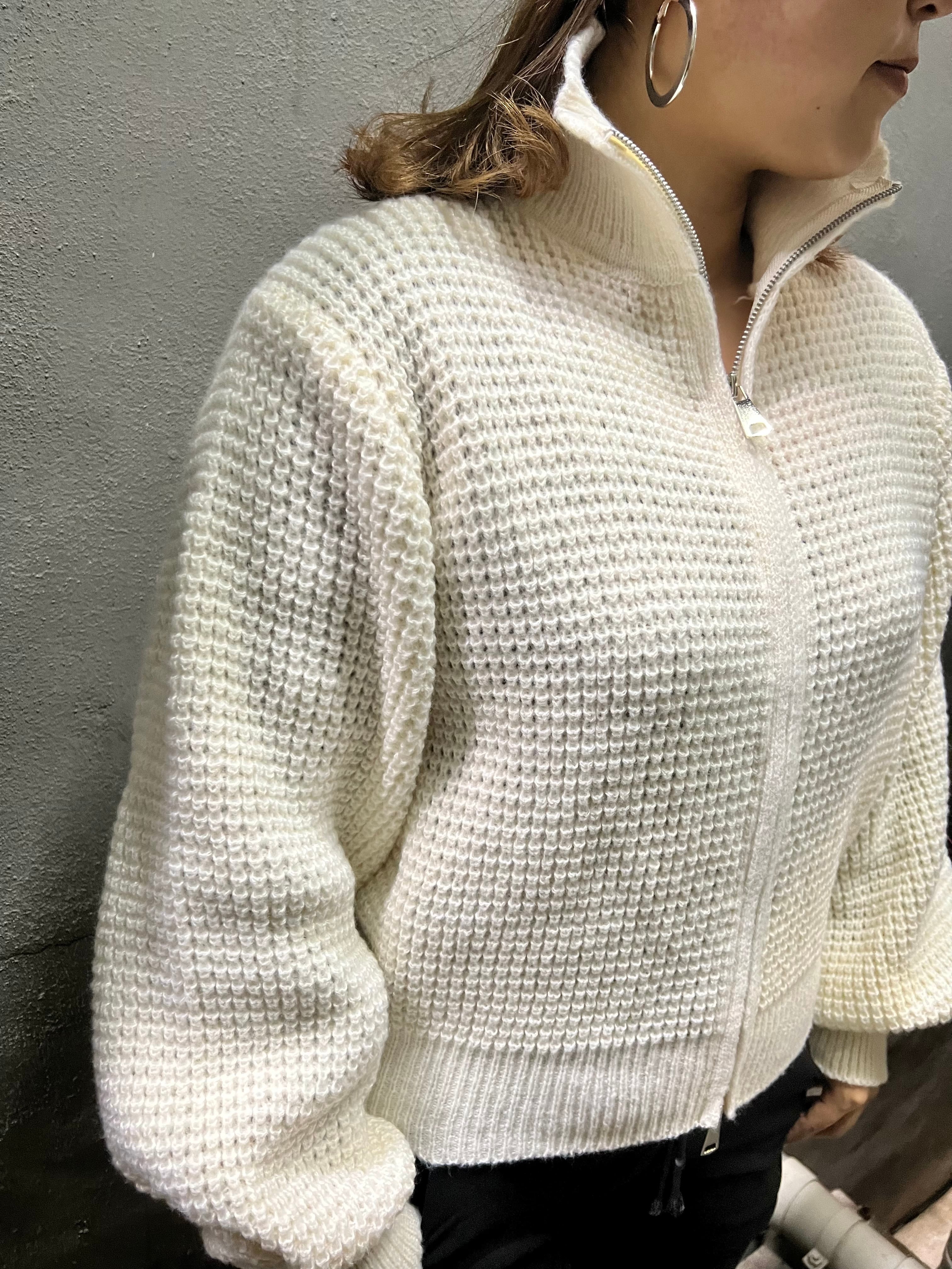 waffle knit W zip high neck knit jacket ニット ジャケット ジッパー ワッフルニット ハイネック
