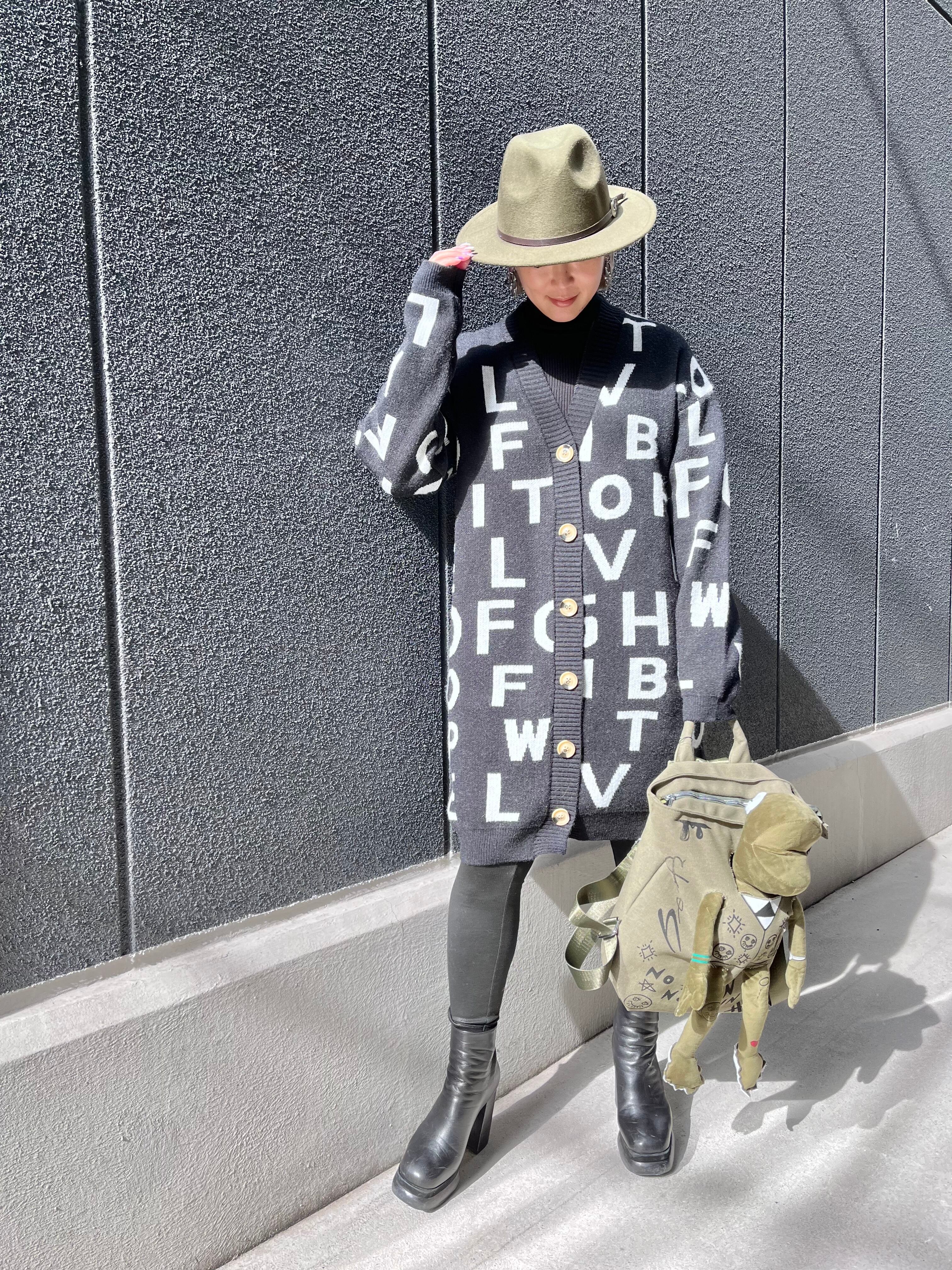 alphabet jacquard knit cardigan ニット カーディガン ニットカーデ アルファベット ランクニット