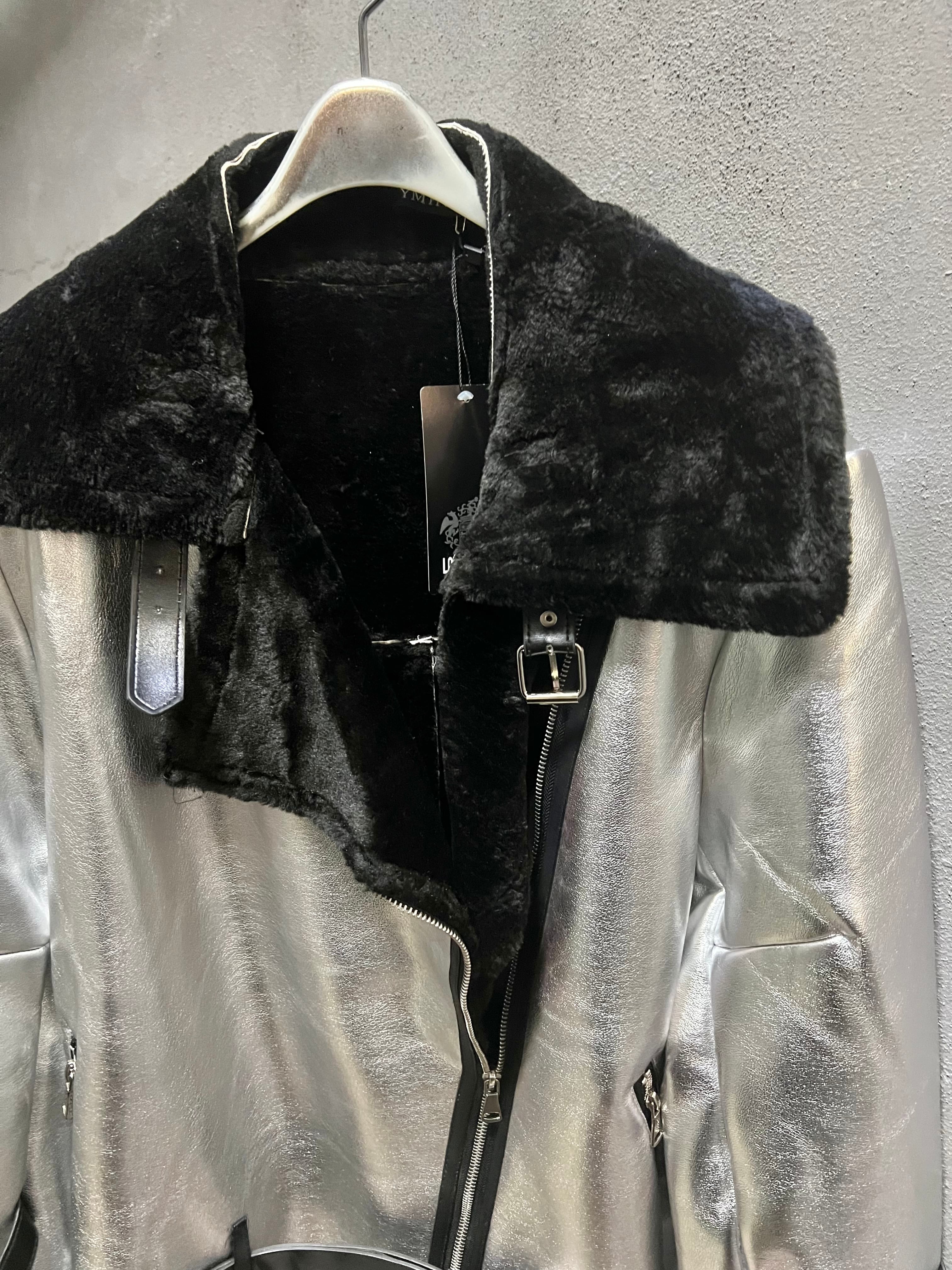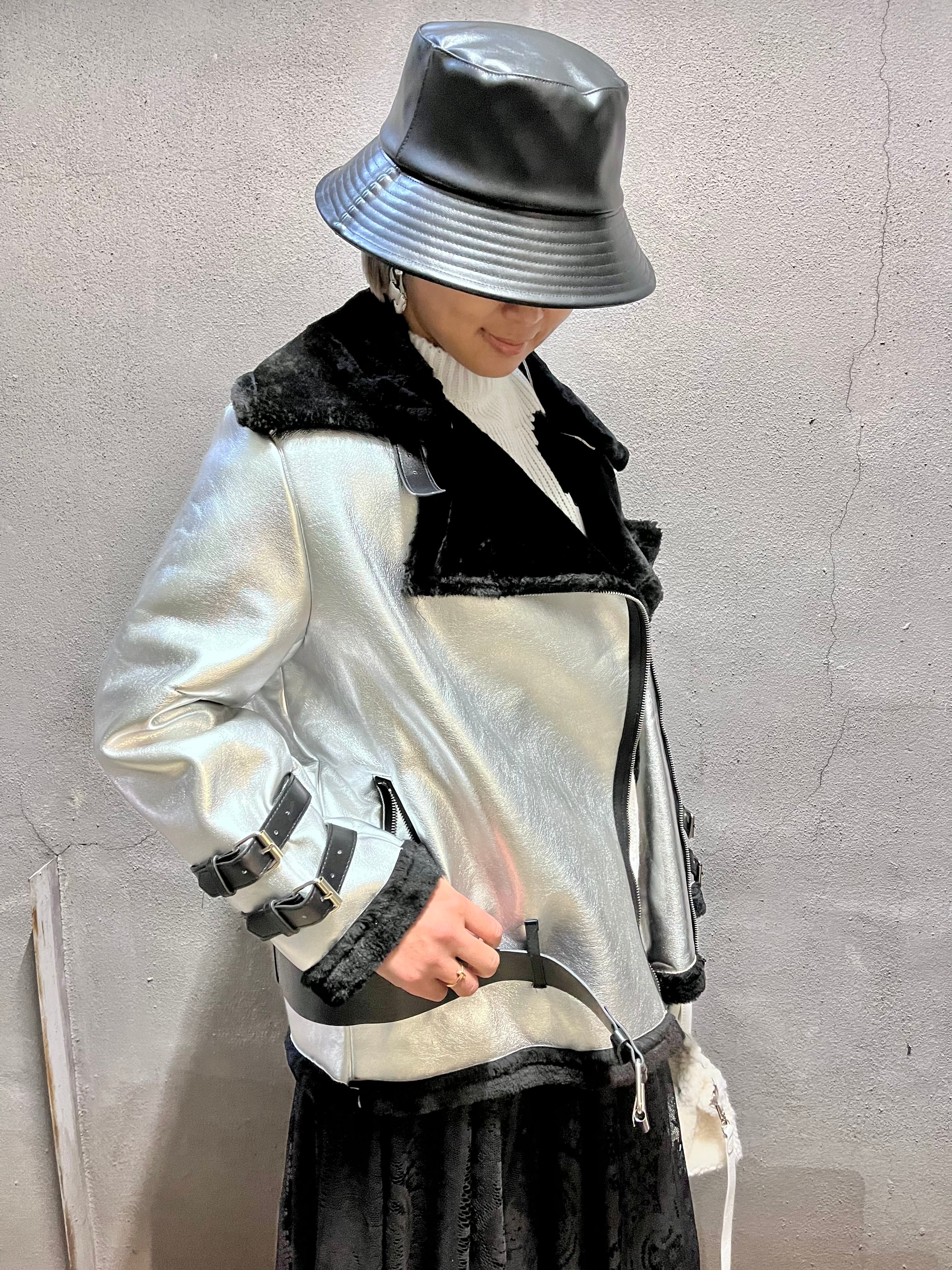 metallic riders jacket ジャケット ライダース ボア メタリック シルバー オーバーサイズ