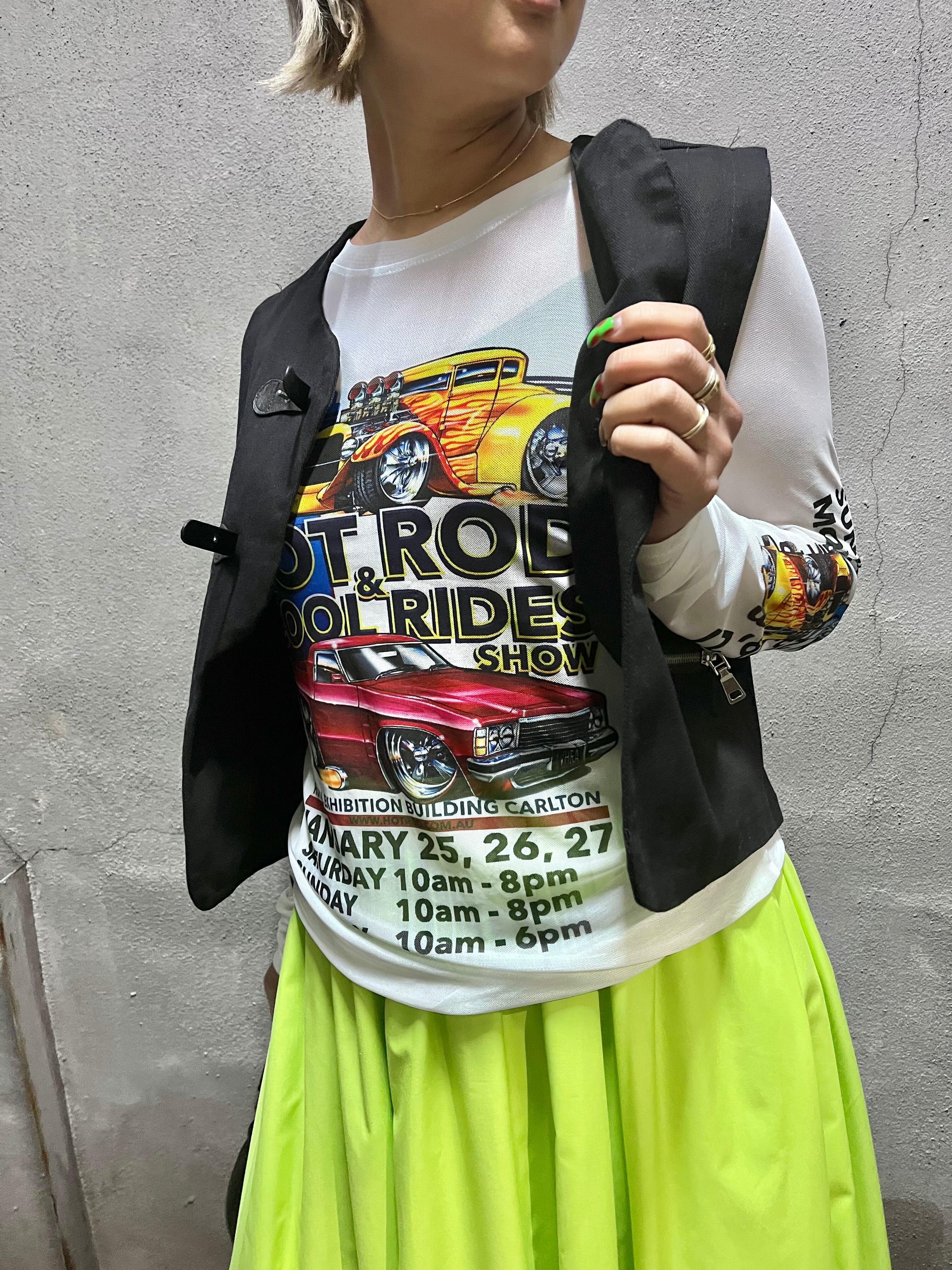【再入荷】stretch mesh car show design tops トップス メッシュ ストレッチ シースルー プリント 車 ショー
