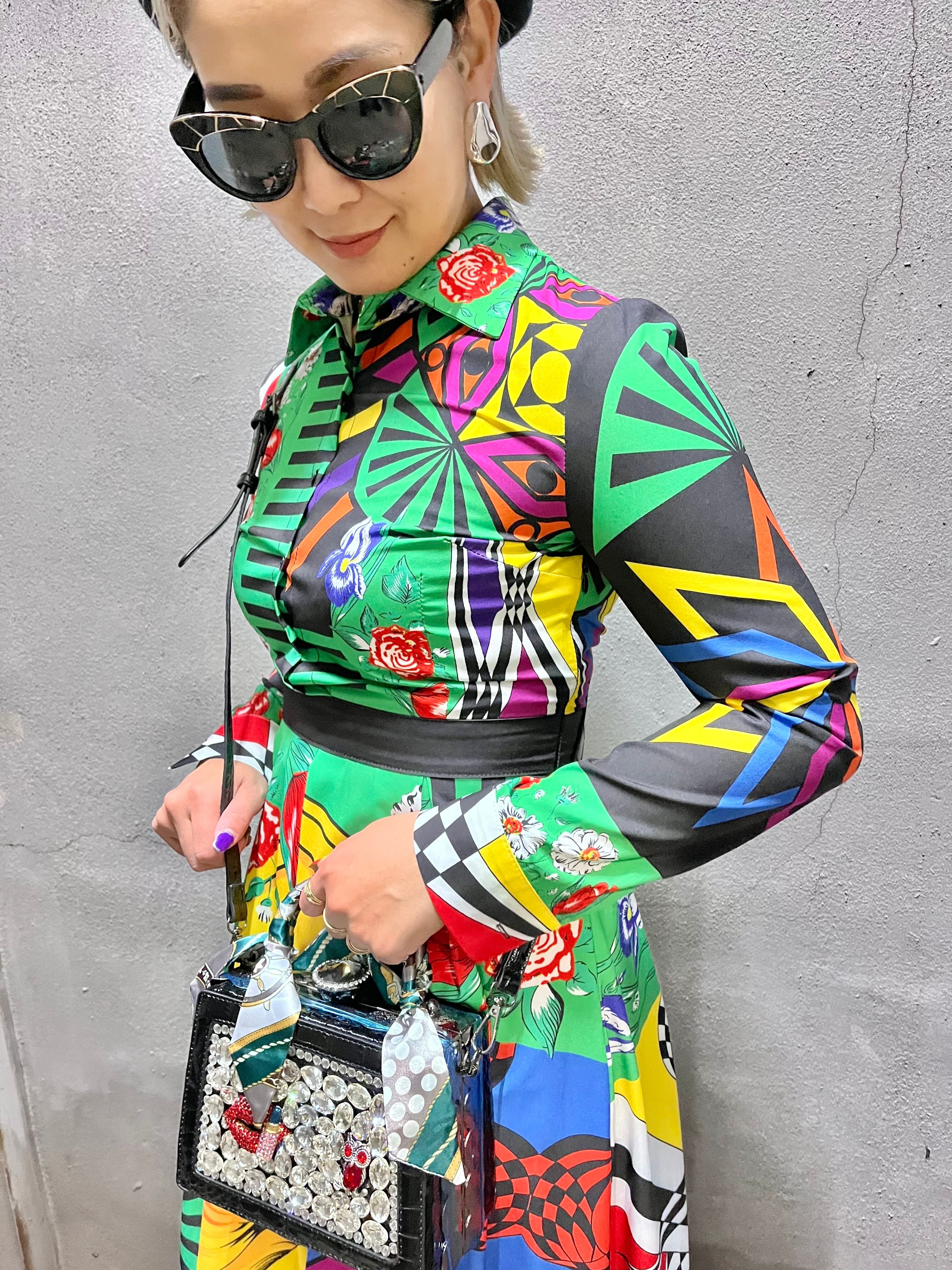 VIVID color & pattern mix print one-piece ワンピース ワンピ 柄ワンピ 幾何学模様 花柄 カラフル 個性的 パーティー 女子会