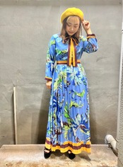 バードウォッチング?柄プリントのロング・ワンピース