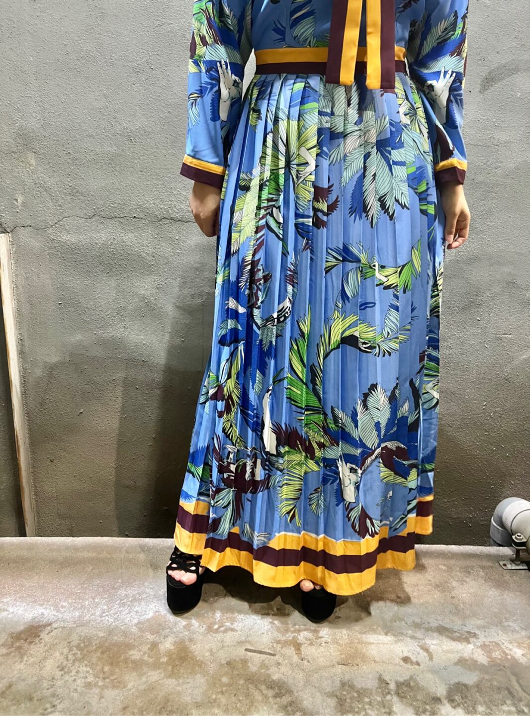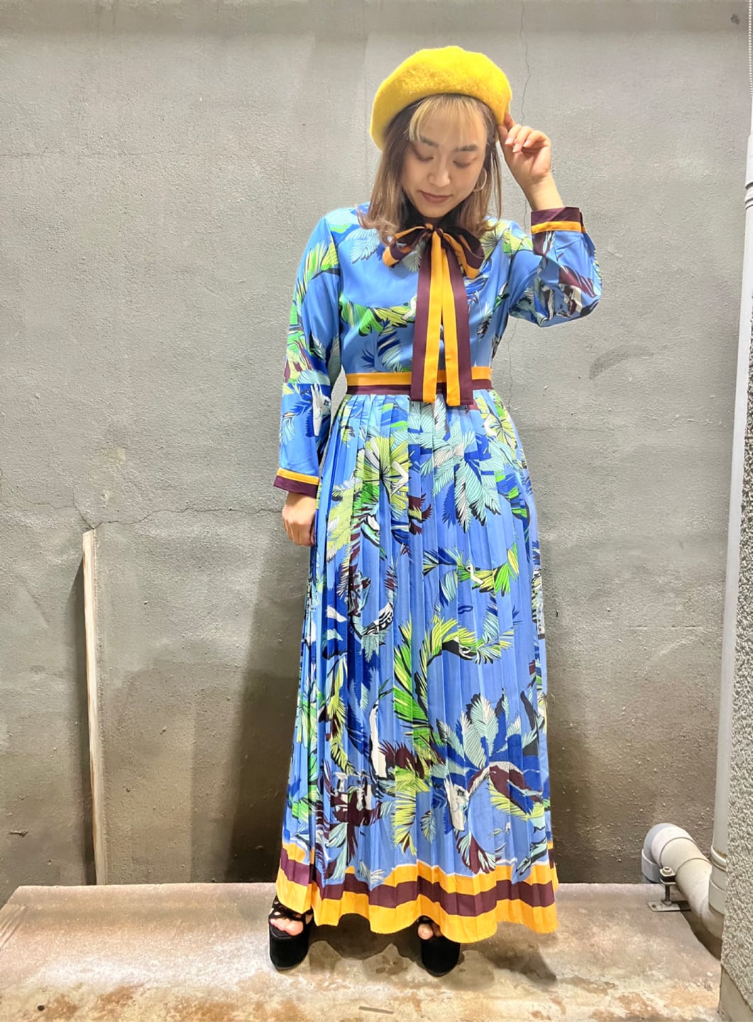 palm tree touch print bow-tie one-piece ワンピース ワンピ 柄ワンピ ロングワンピ ボウタイ リボン カラフル
