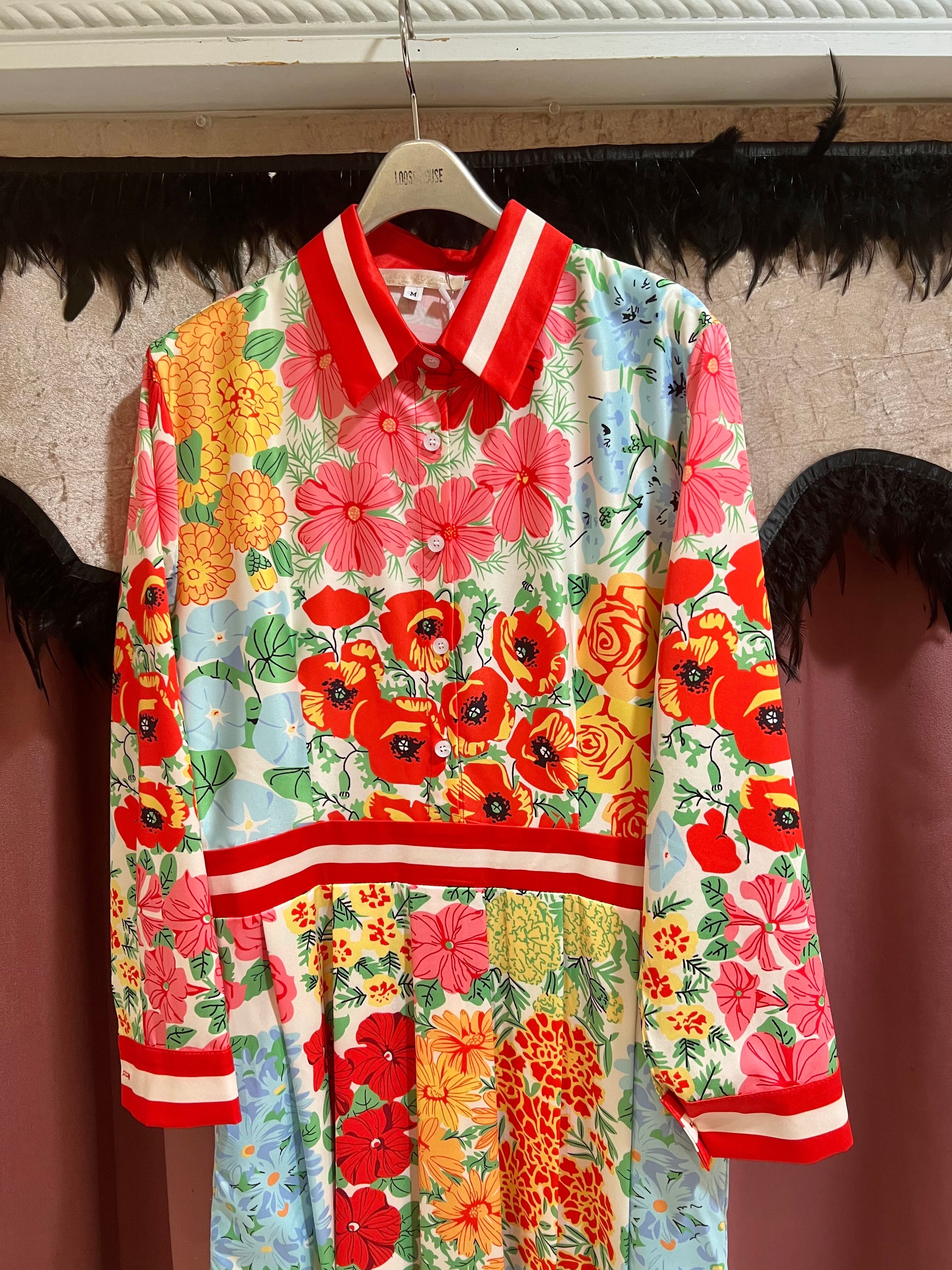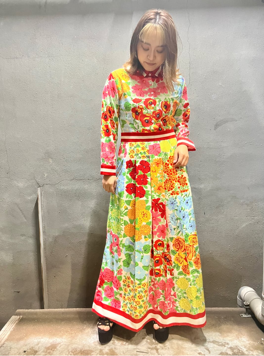 flower print line trimming long one-piece ワンピース ワンピ 柄ワンピ ロングワンピ 花柄 カラフル