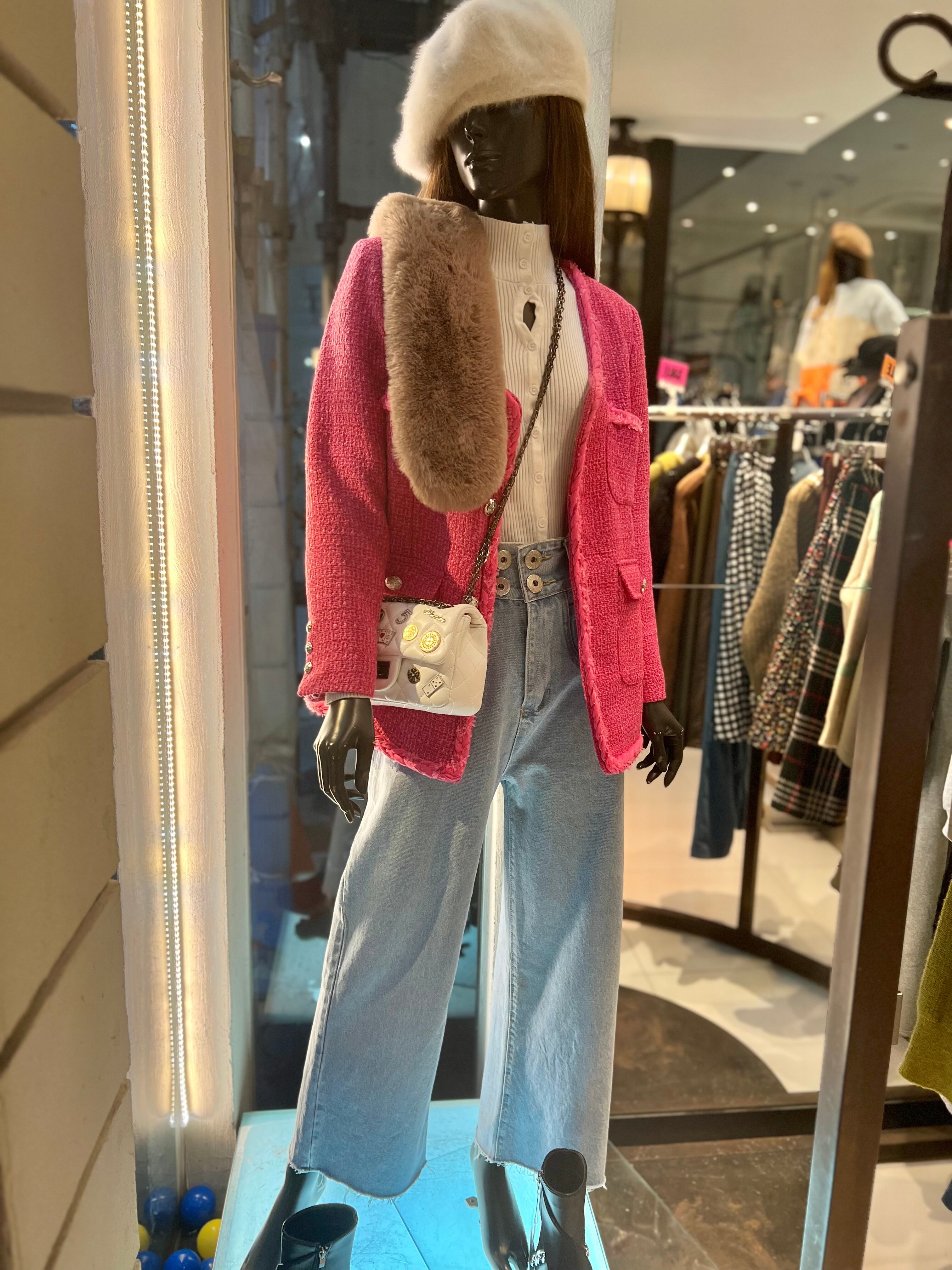 みんな大好きツィードにPINKのロングジャケットが登場!