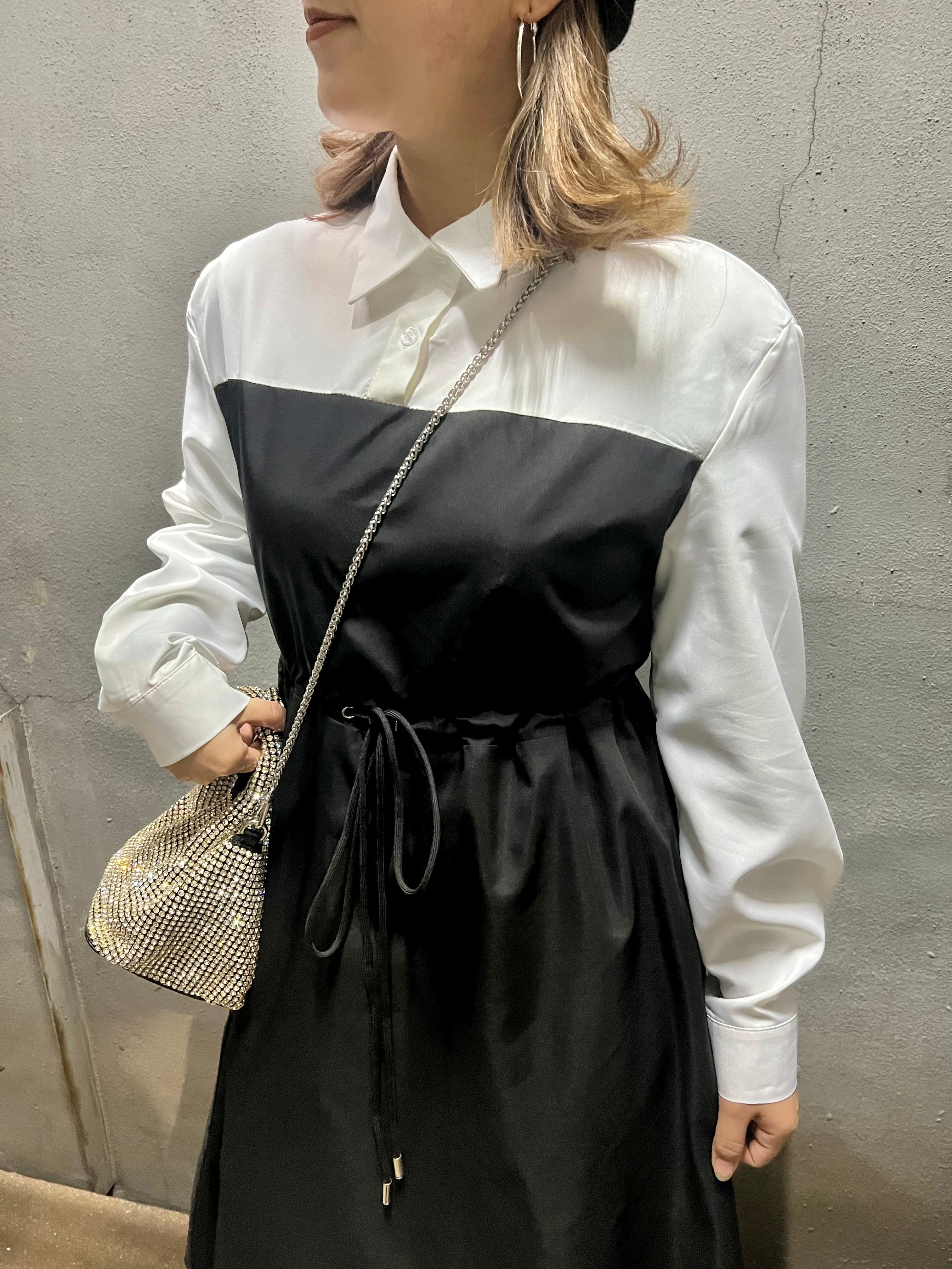 bi-color change waist mark shirt one-piece ワンピース ワンピ シャツワンピ バイカラー 白黒