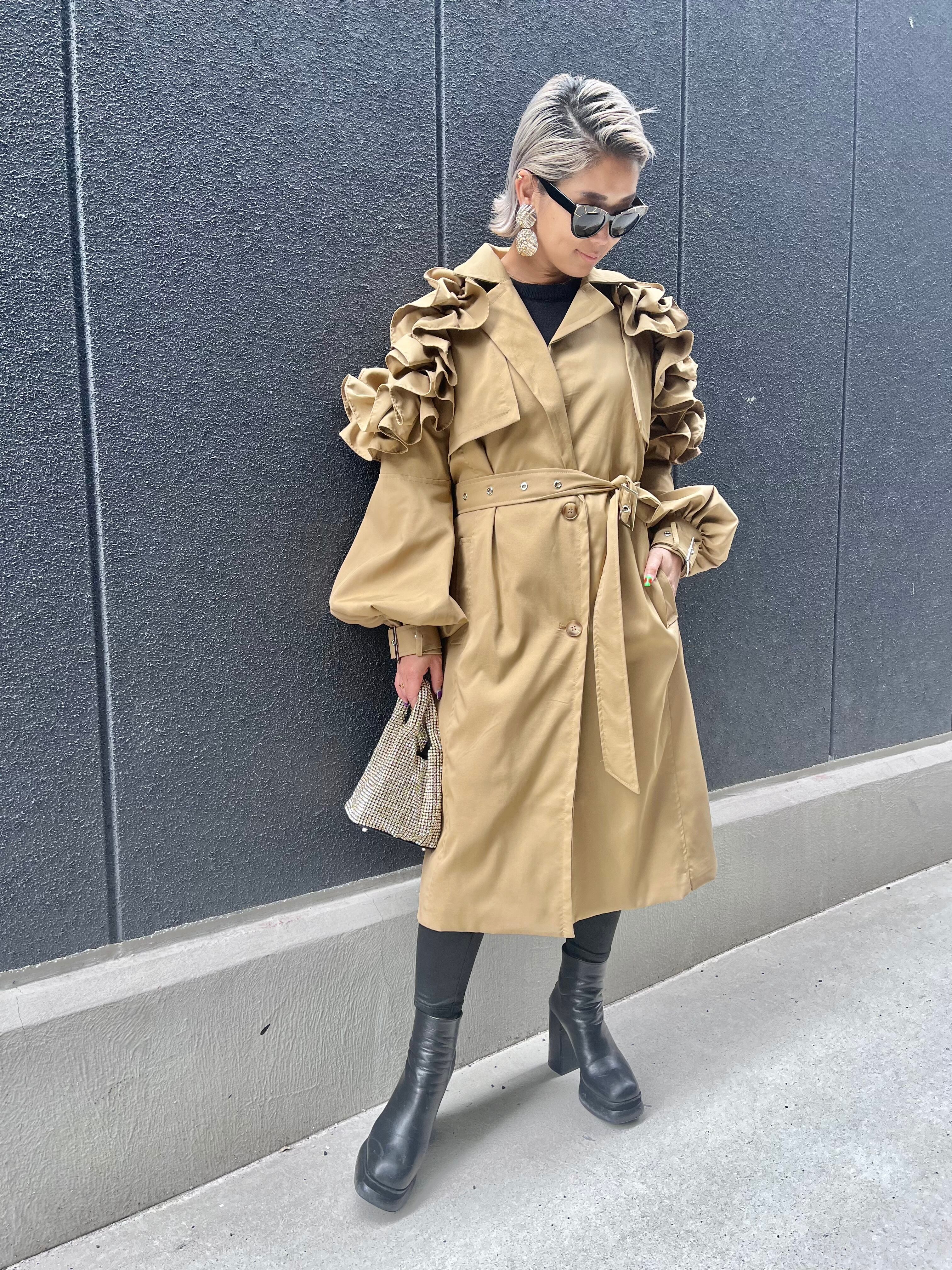 frill shoulder design trench coat コート トレンチコート デザインコート フリル ランタンスリーブ ベルト付き