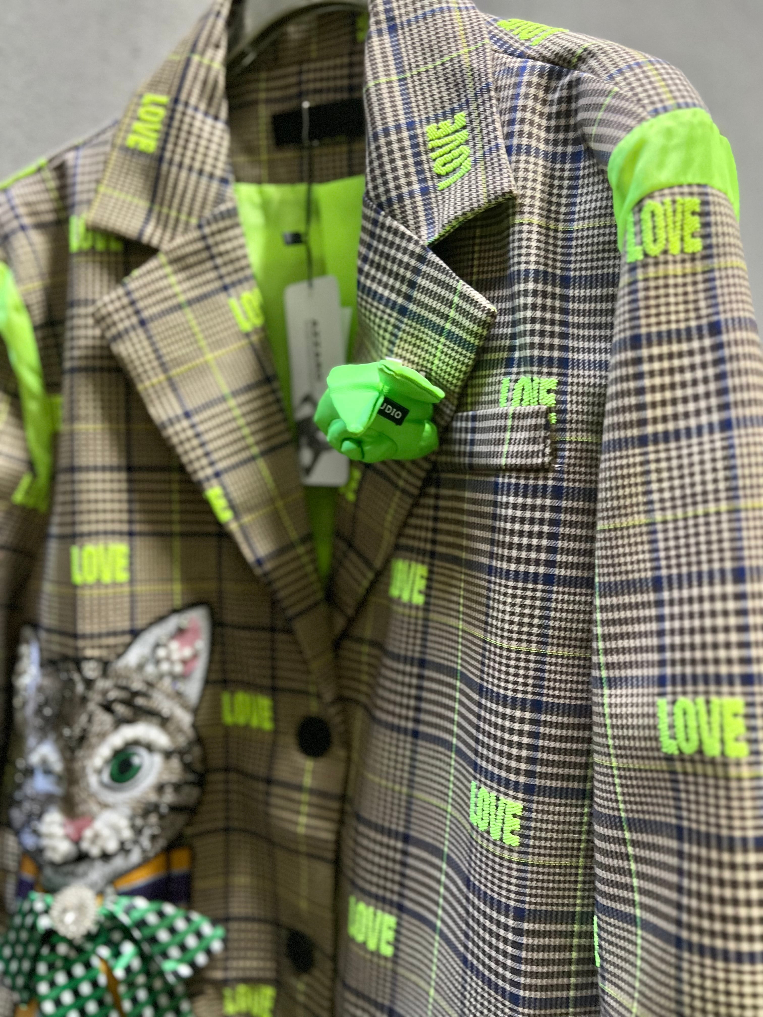 glen check neon stitch cat design jacket ジャケット グランチェック 猫 ネコ ネオンカラー