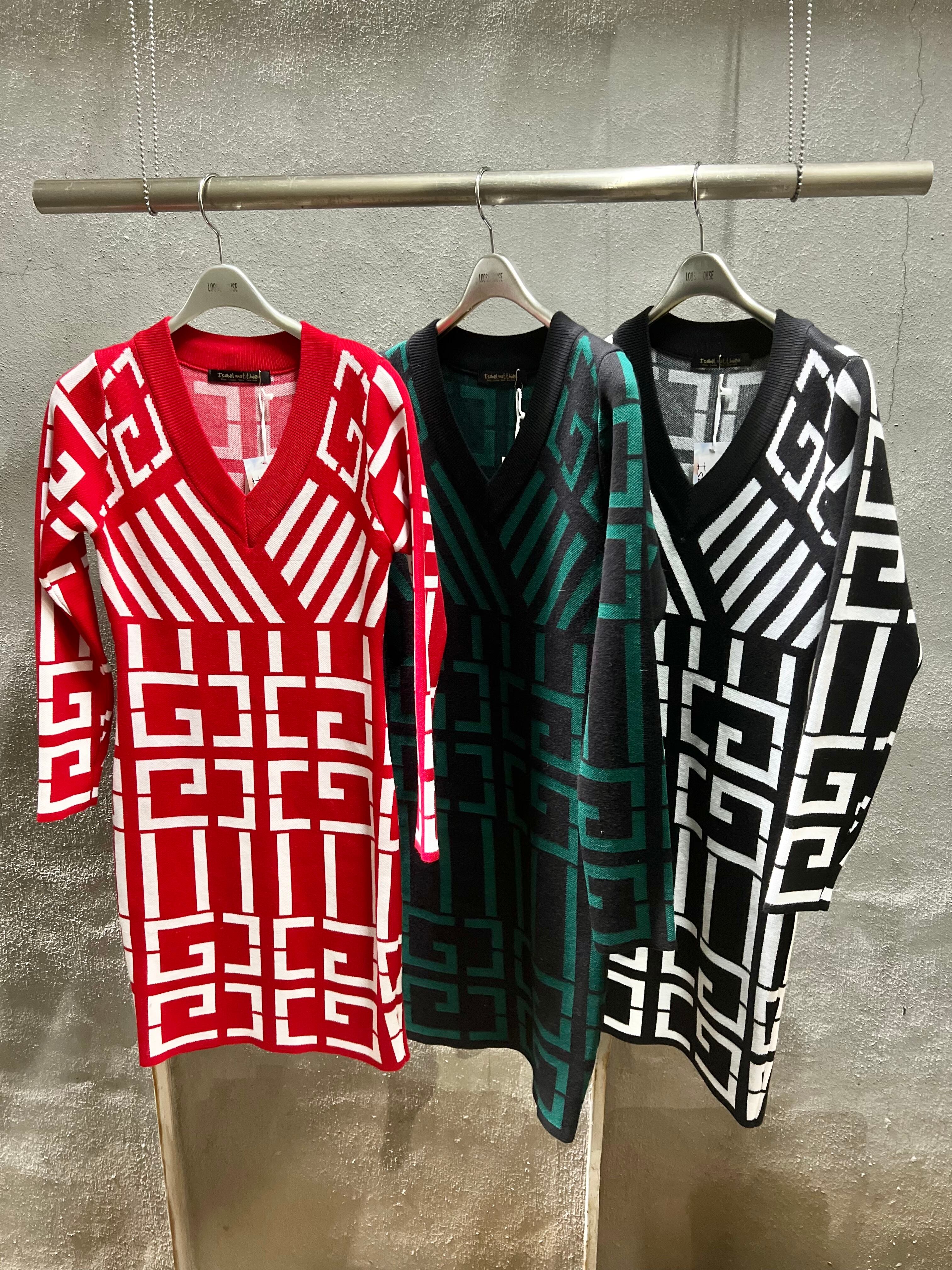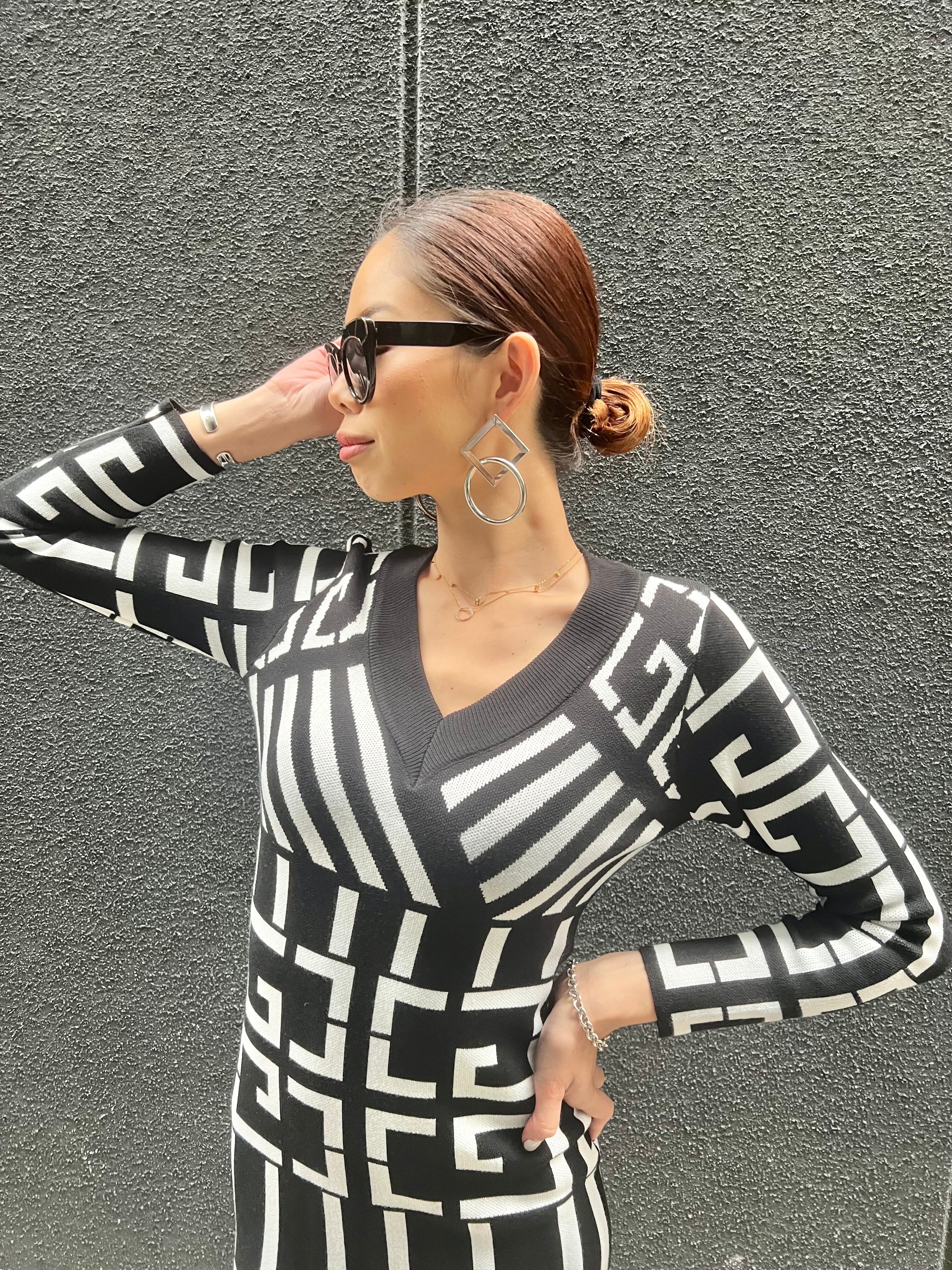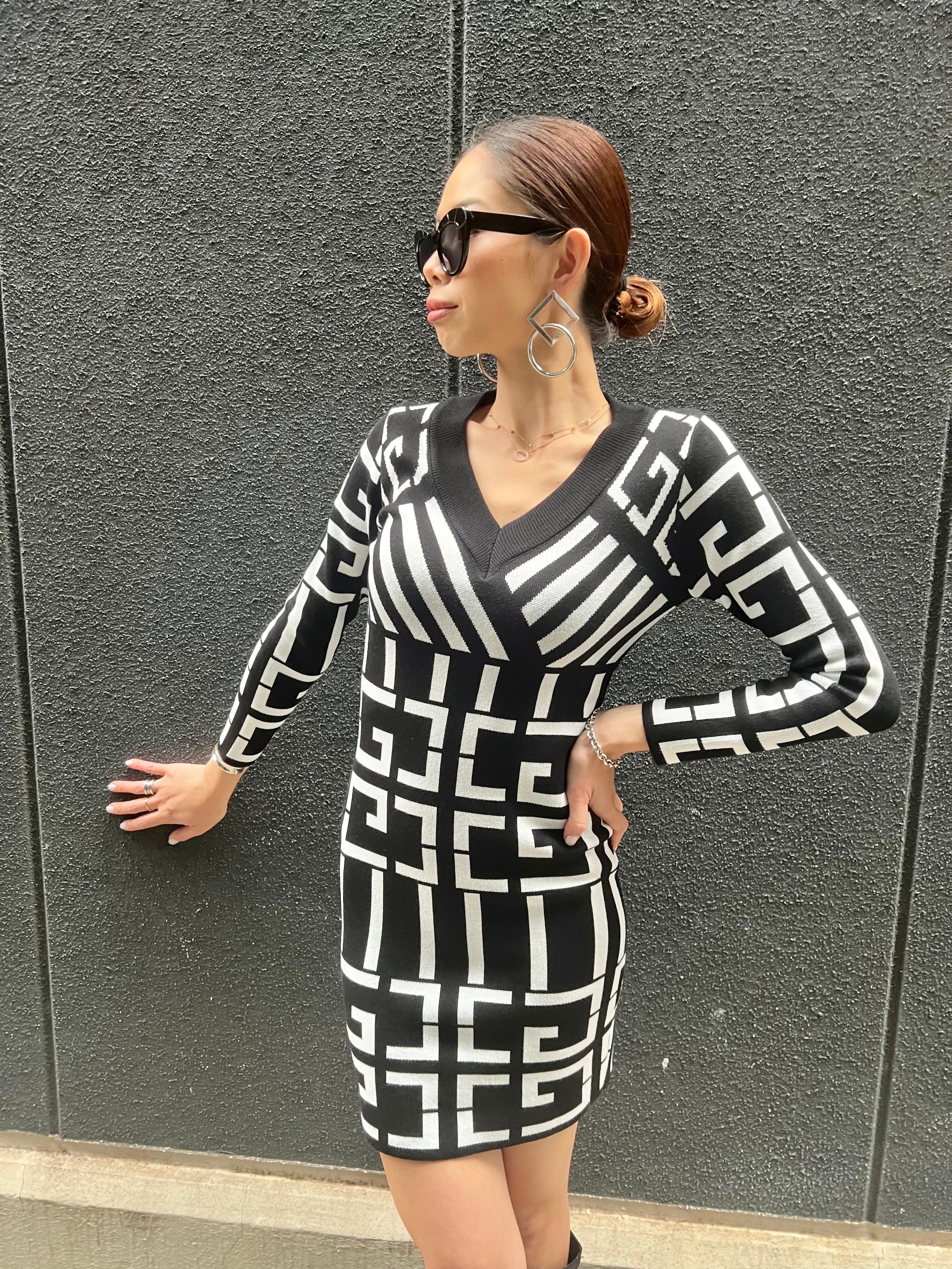 jacquard V-neck knit one-piece ニット ワンピース ニットワンピ Vネック ジャガード