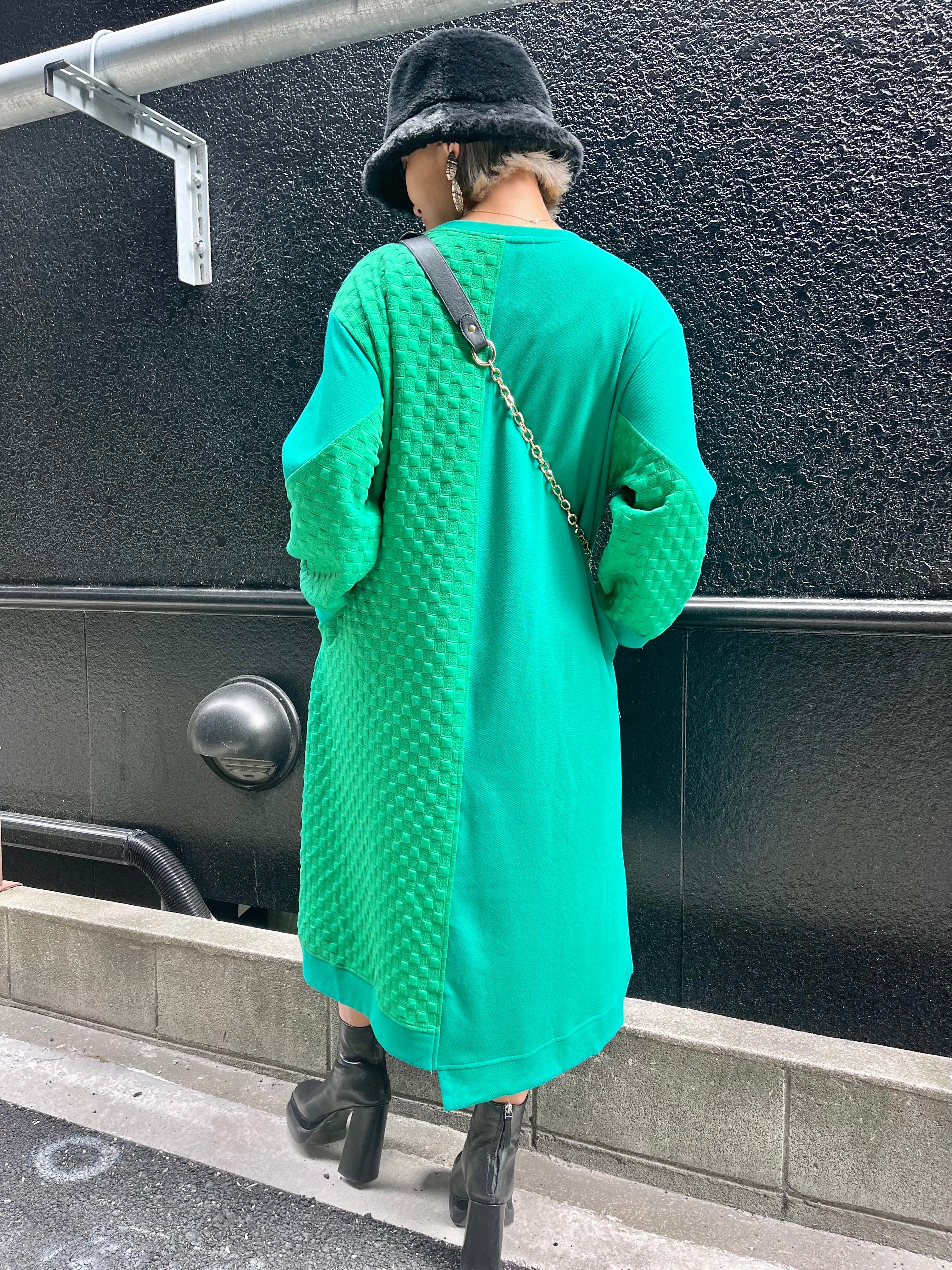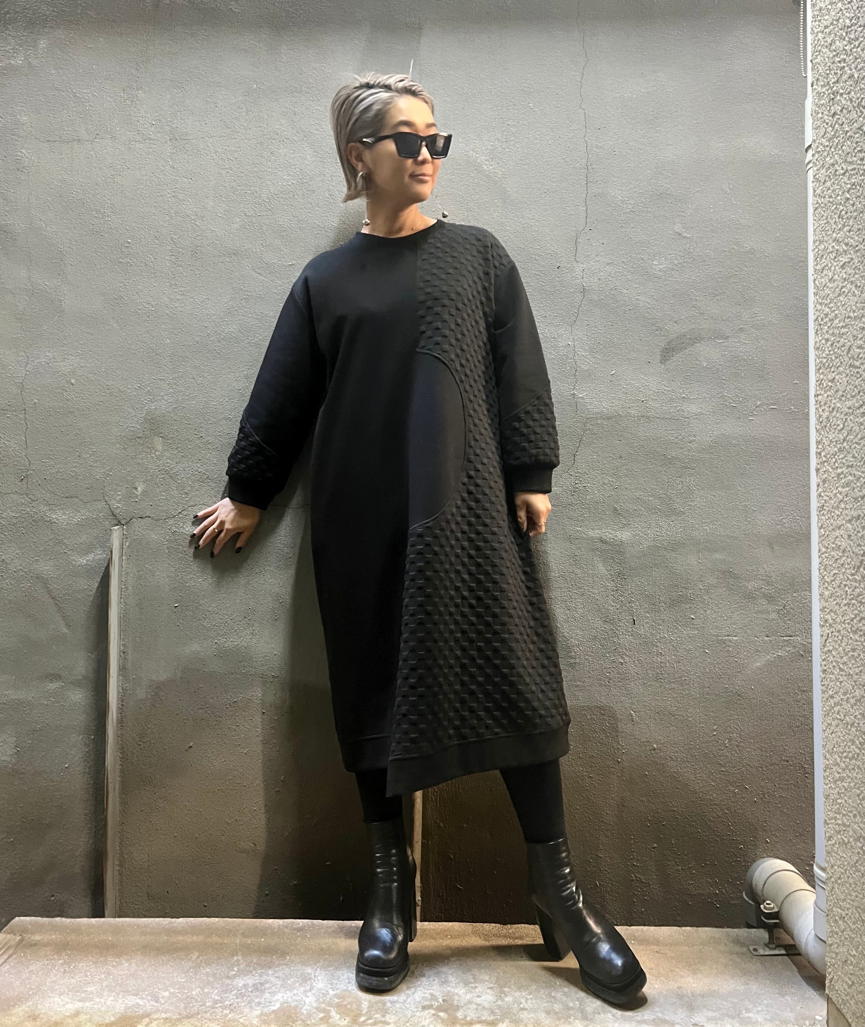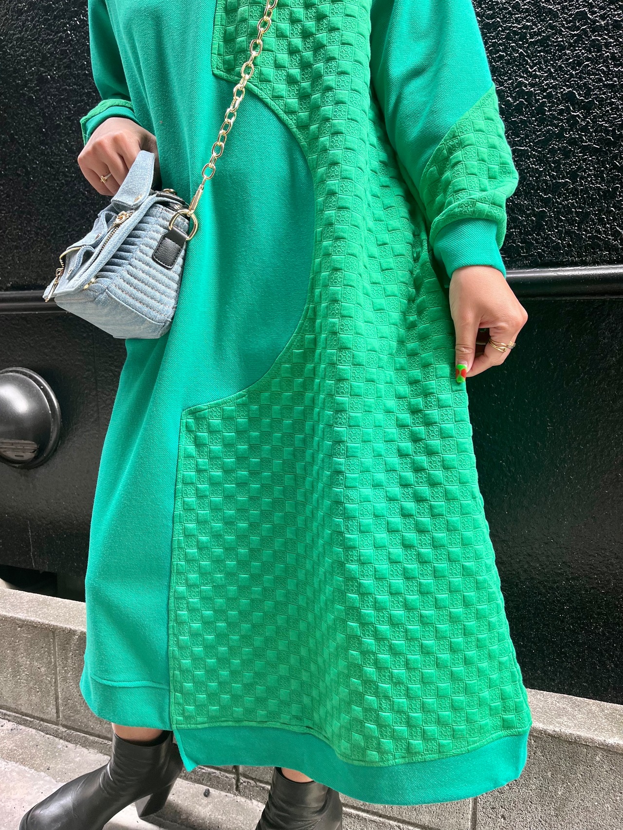 waffle change design A-silhouette one-piece ワンピース ワンピ Aライン ワッフル クルーネック
