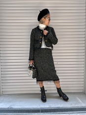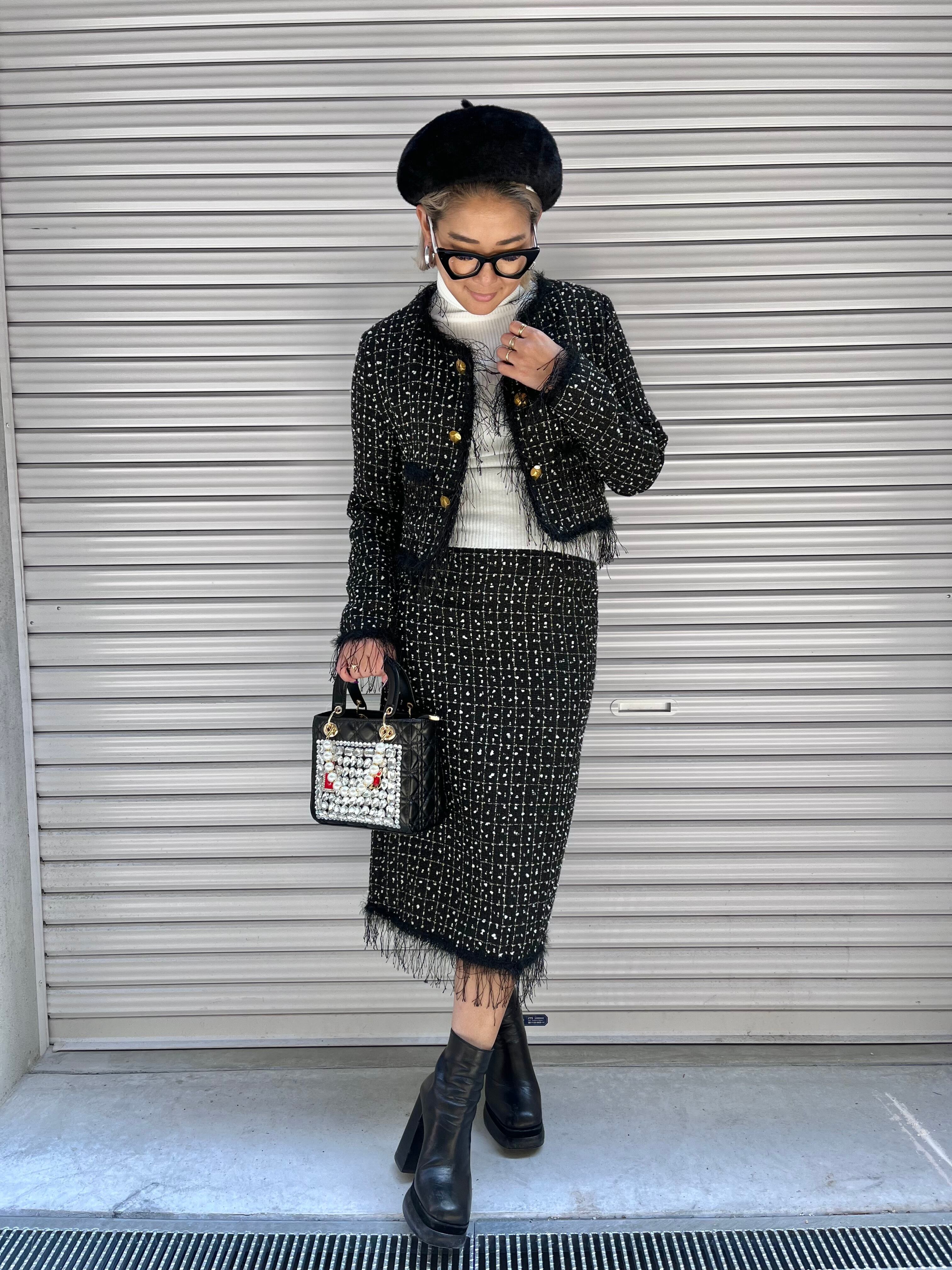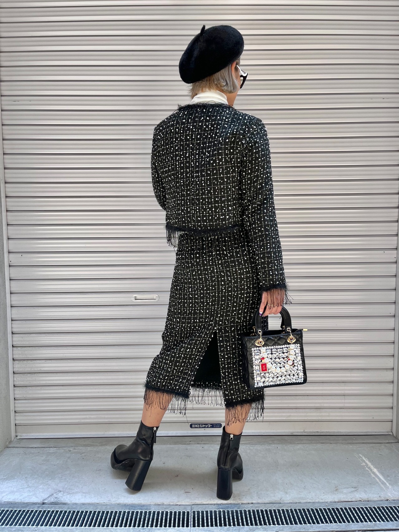 nep tweed fringe C-neck 2P set up セットアップ ツィード ジャケット スカート フリンジ 2点セット 結婚式 二次会 入学式 きれいめ