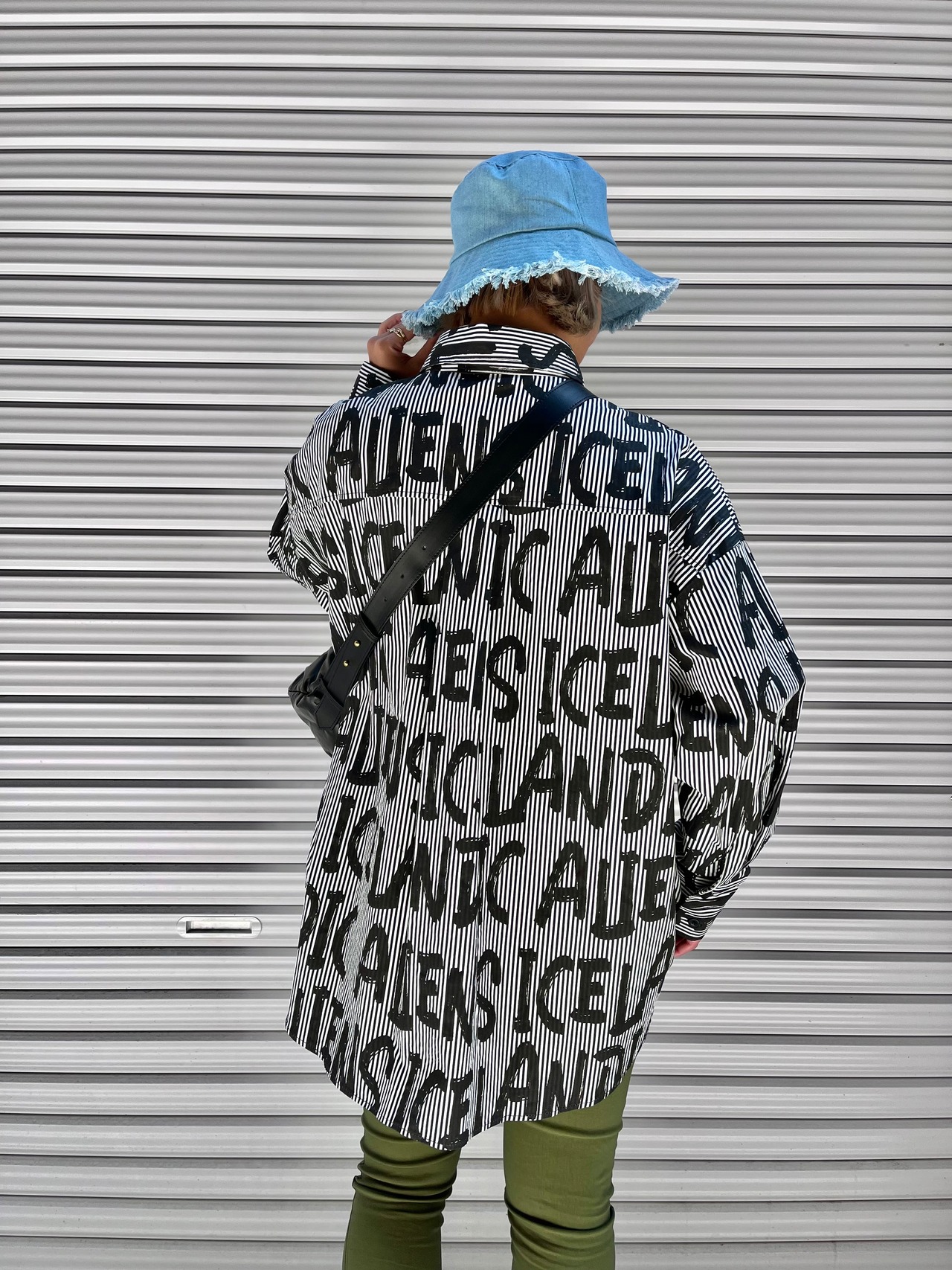 alphabet × stripe design shirt シャツ デザインシャツ ストライプ アルファベット オーバーサイズ ユニセックス