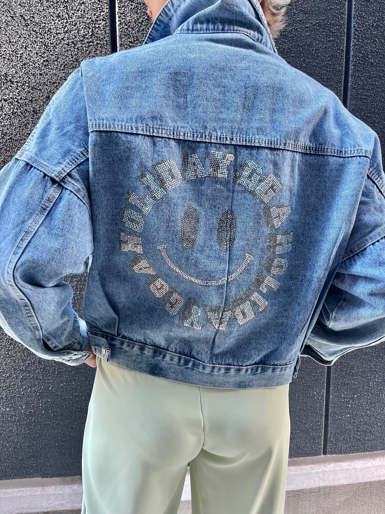 back stone smiley denim jacket ジャケット デニム デニムジャケット スマイリー にこちゃん キラキラ