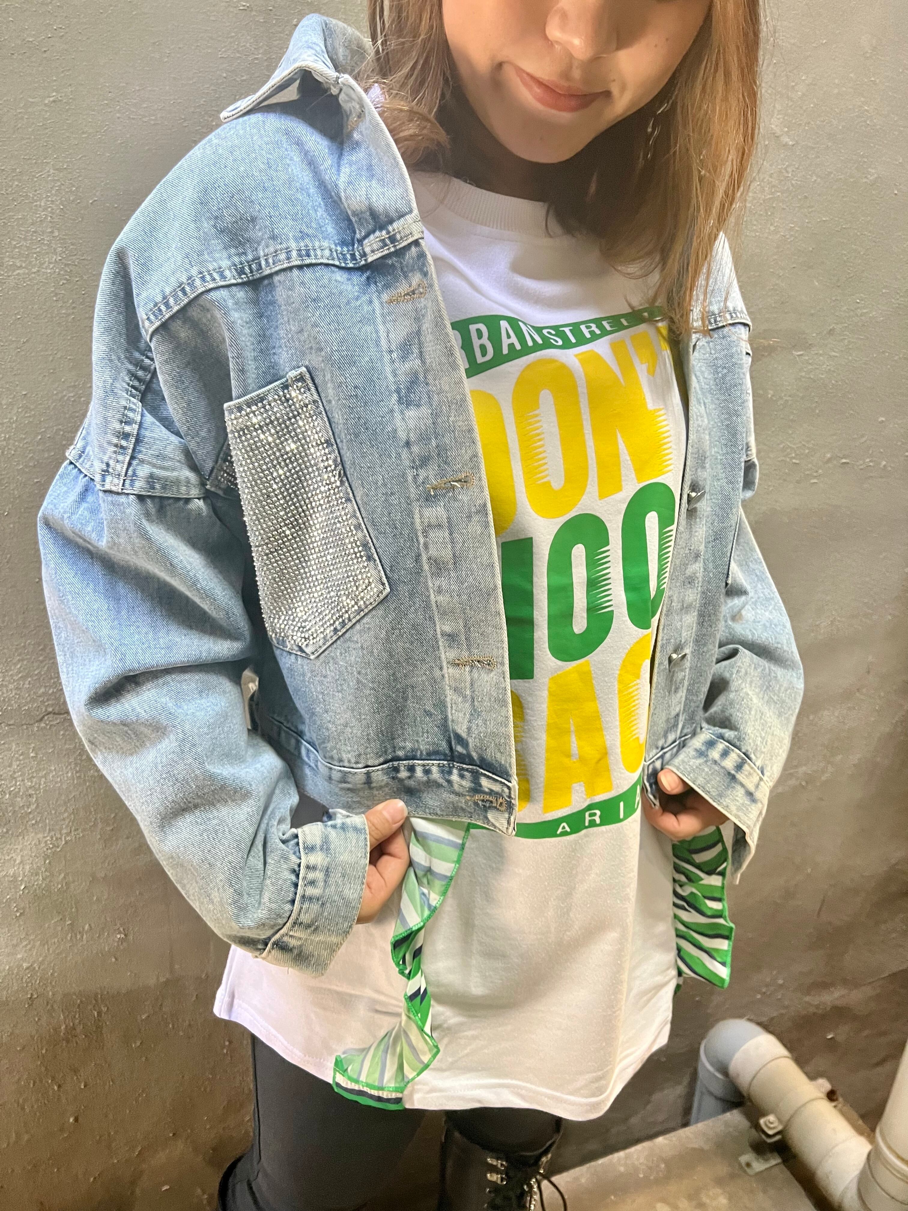 stone pocket denim jacket ジャケット デニムジャケット デニム ハピス ポケット ストーン キラキラ