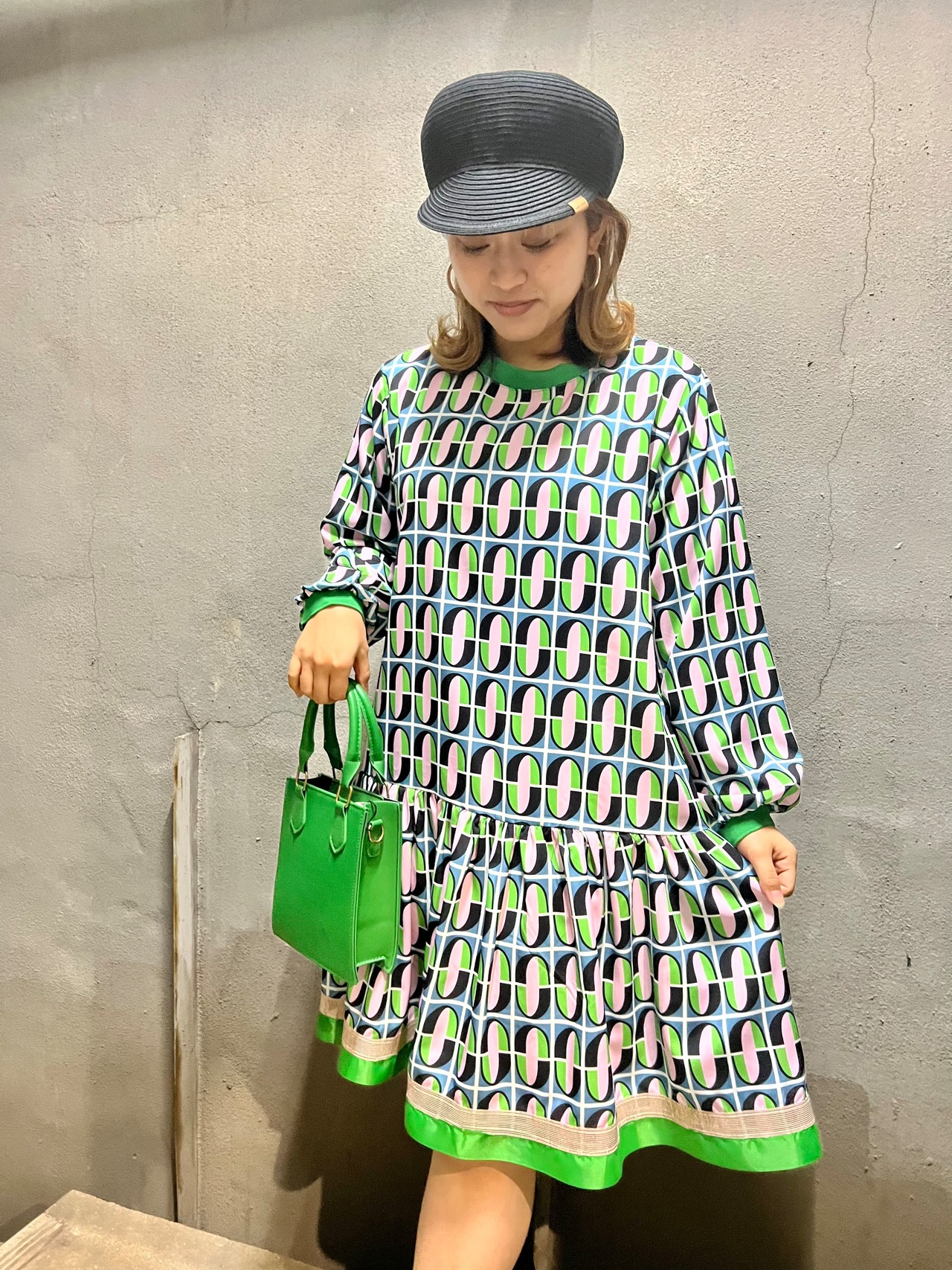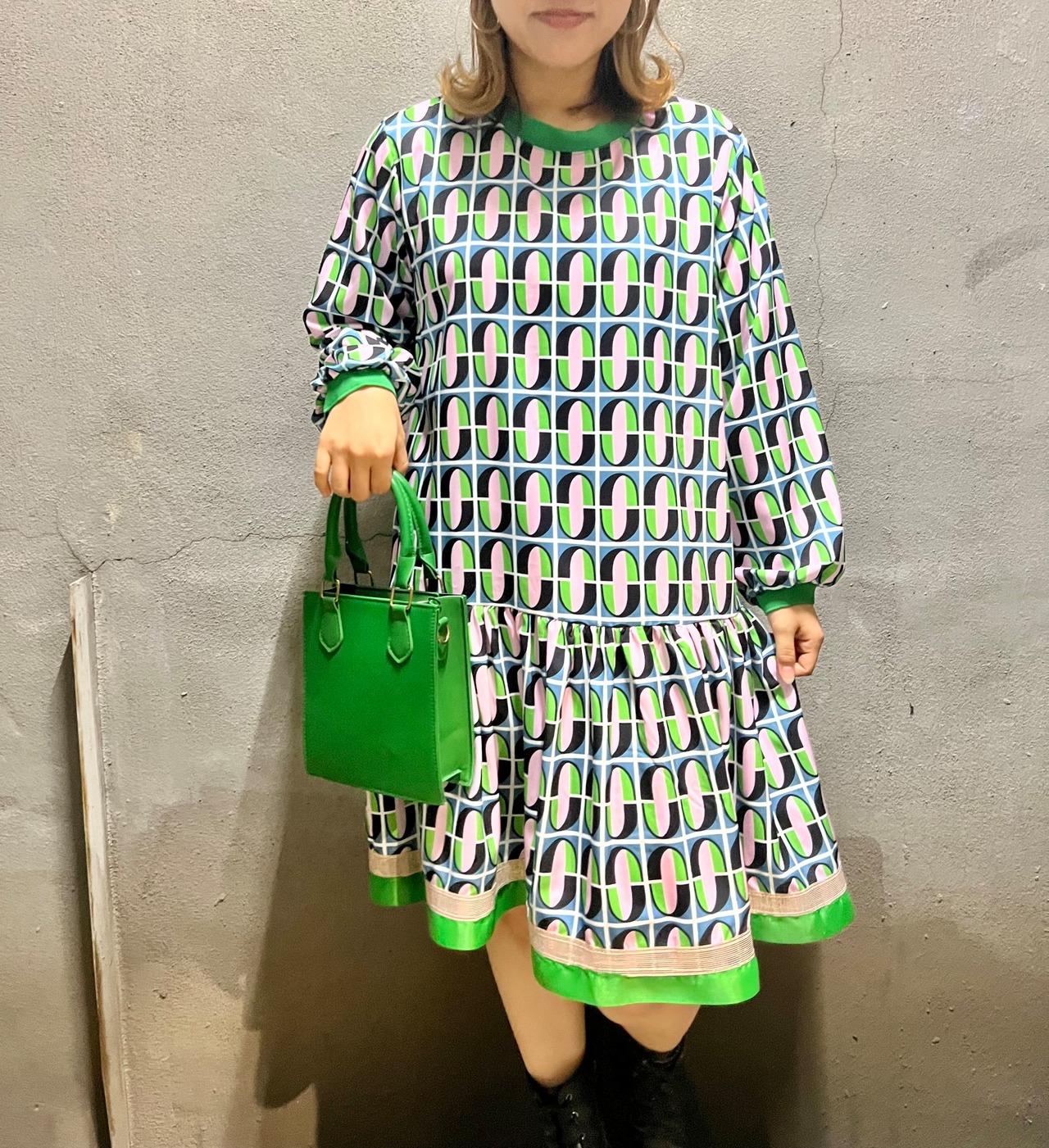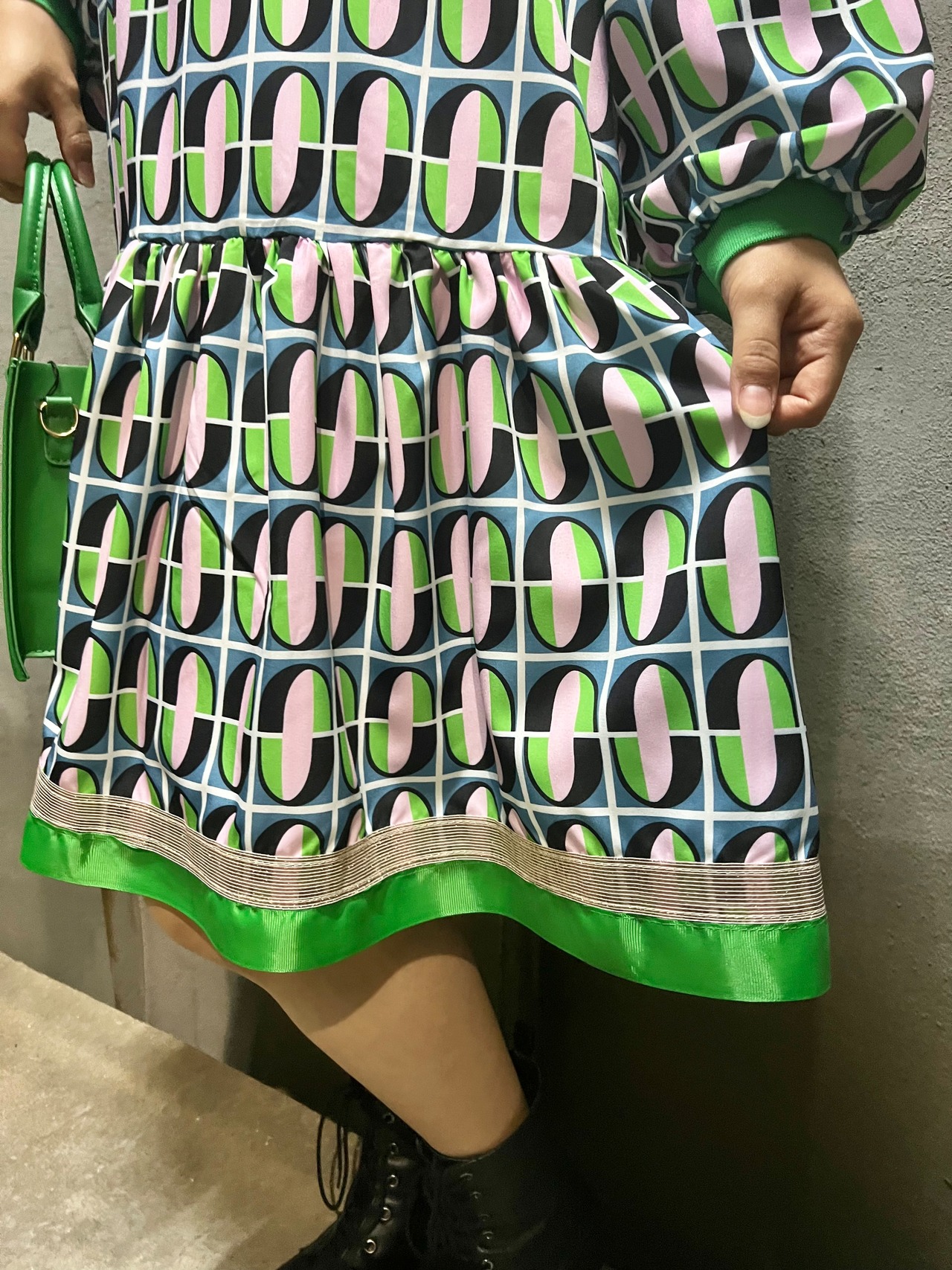 grograin tape hem print one-piece ワンピース ワンピ 柄ワンピ カラフル ピンク グリーン