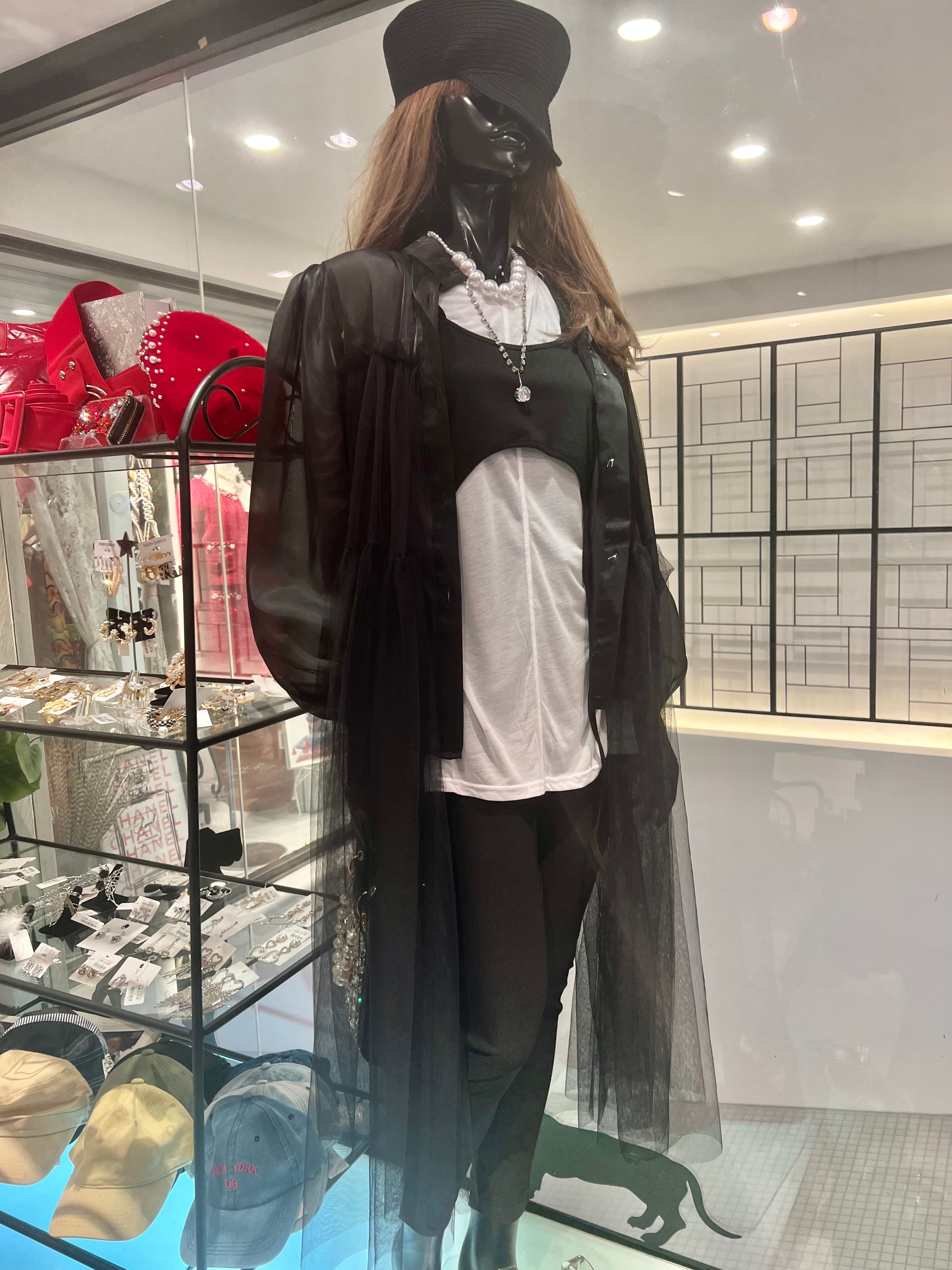 shiny chiffon tulle design long shirt シャツ デザインシャツ シフォン チュール シースルー 重ね着
