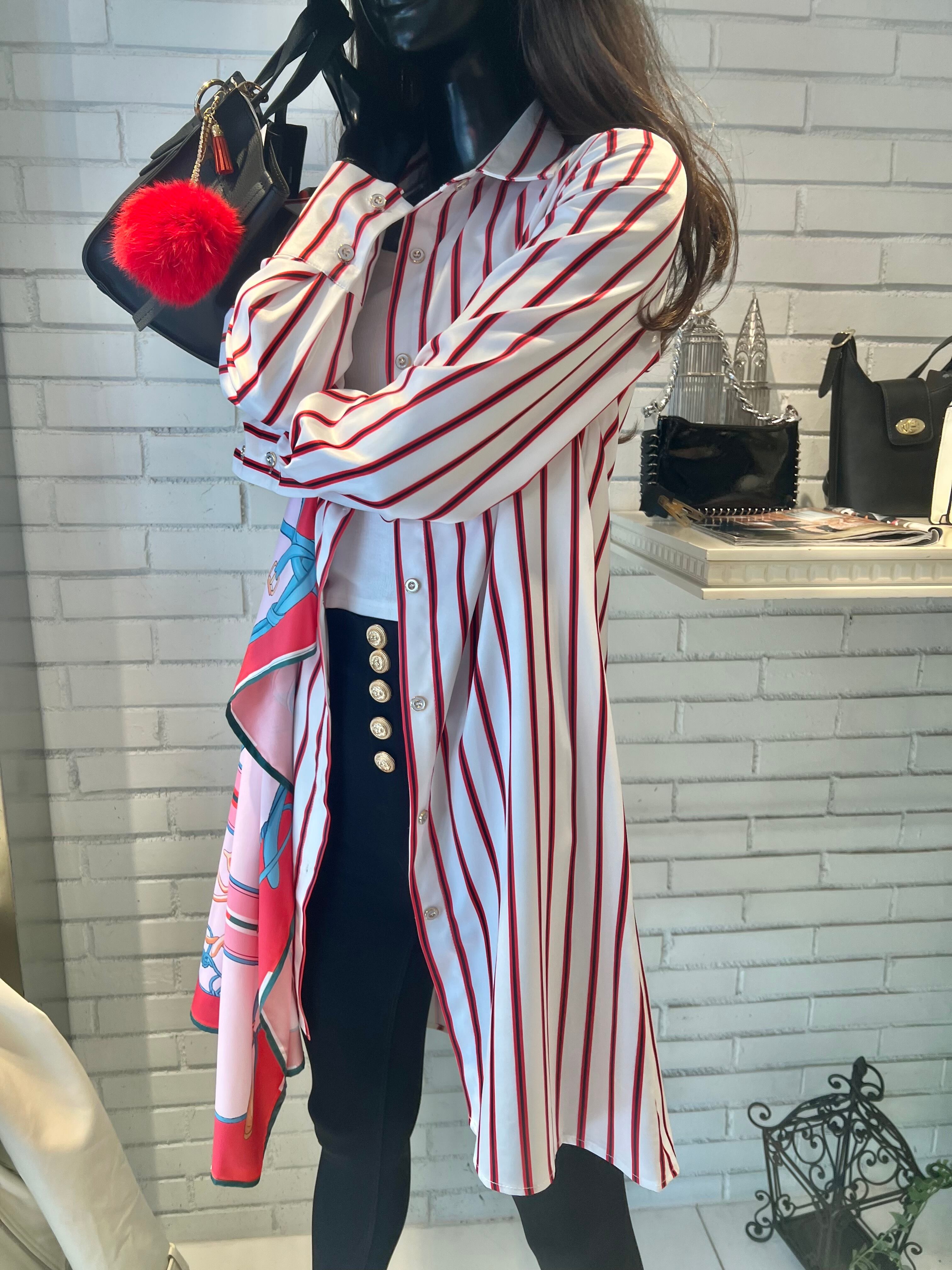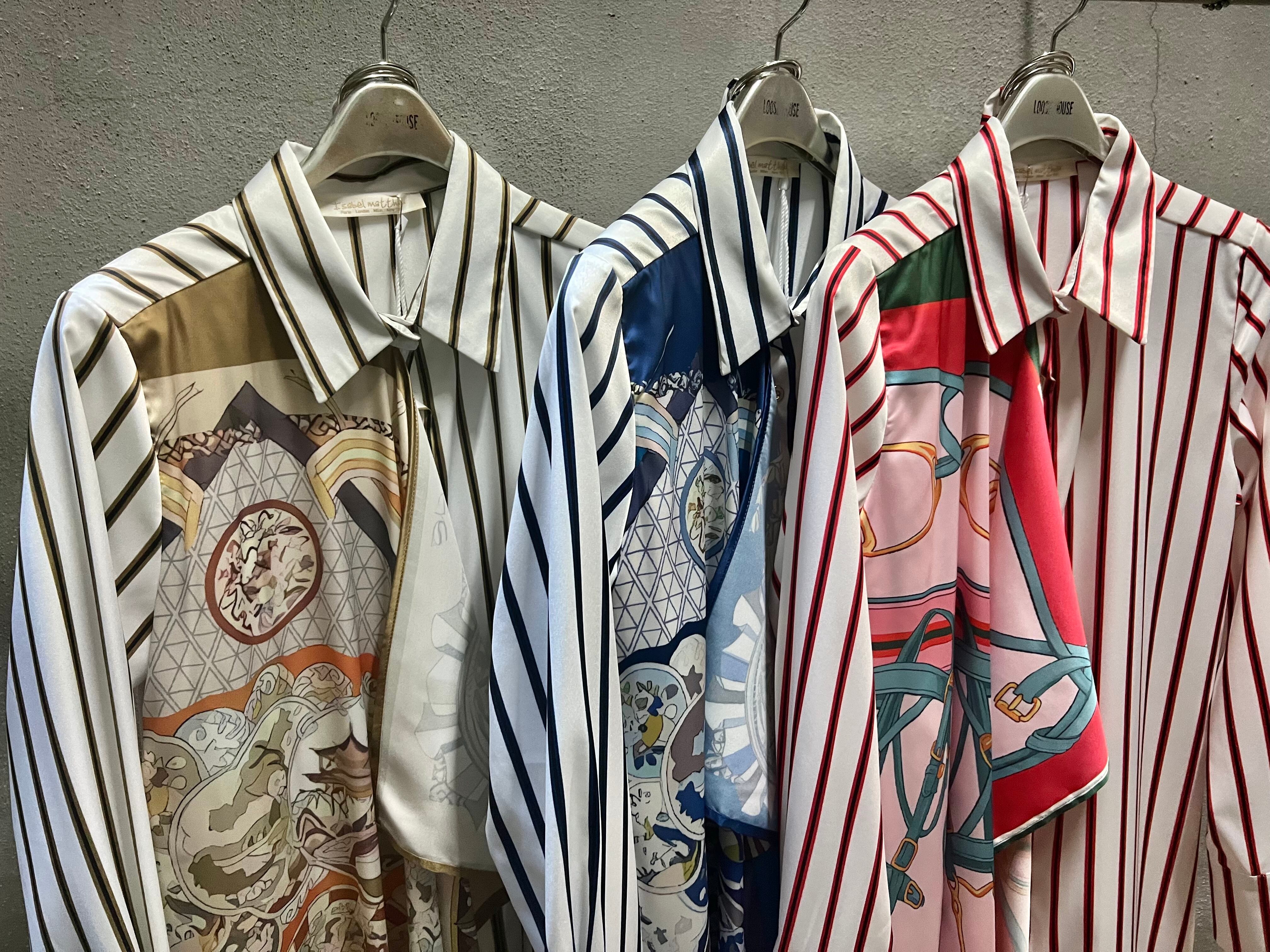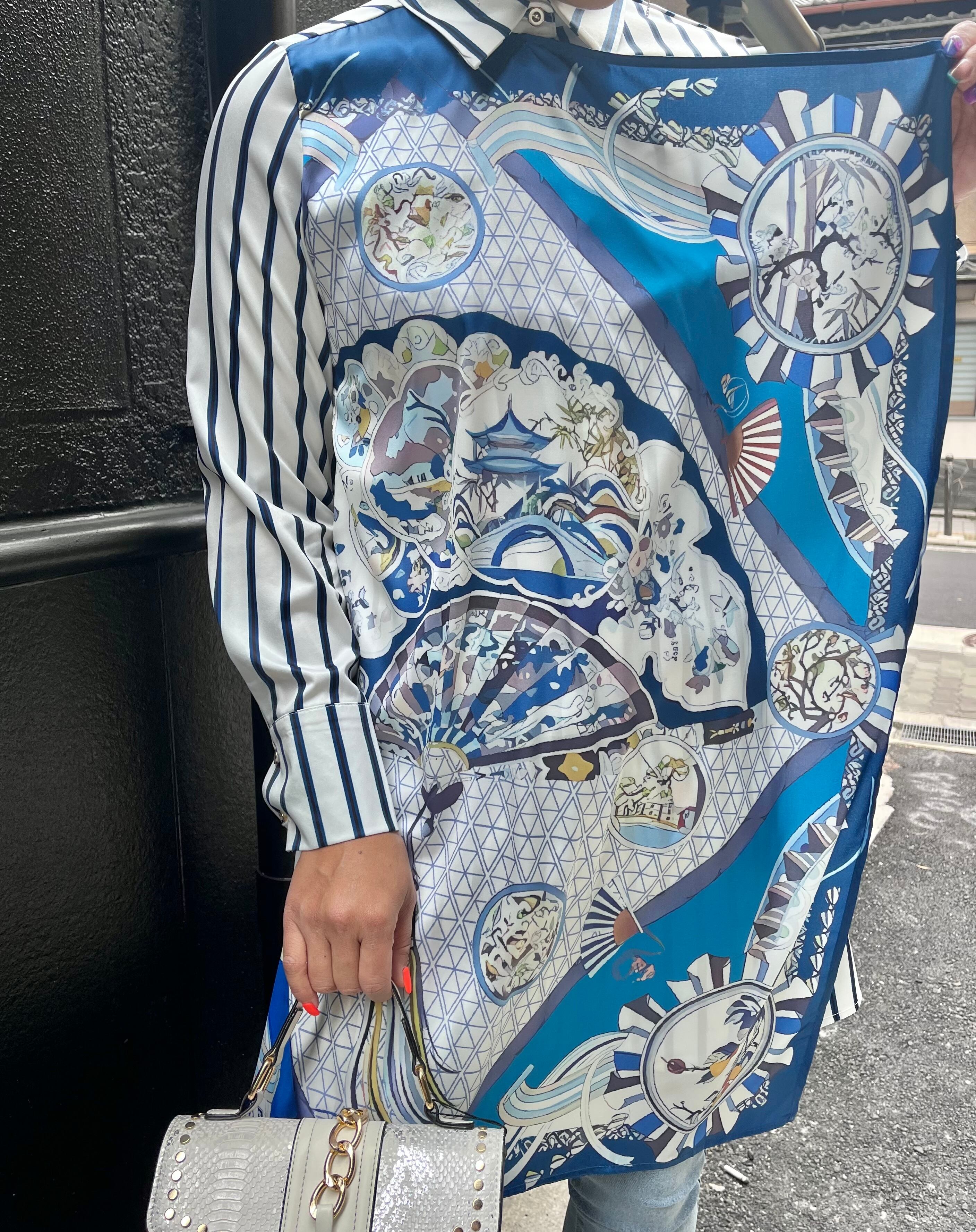 stripe pattern ・ scarf asymmetry shirt one-piece シャツ ロングシャツ シャツワンピース ワンピース ストライプ スカーフ