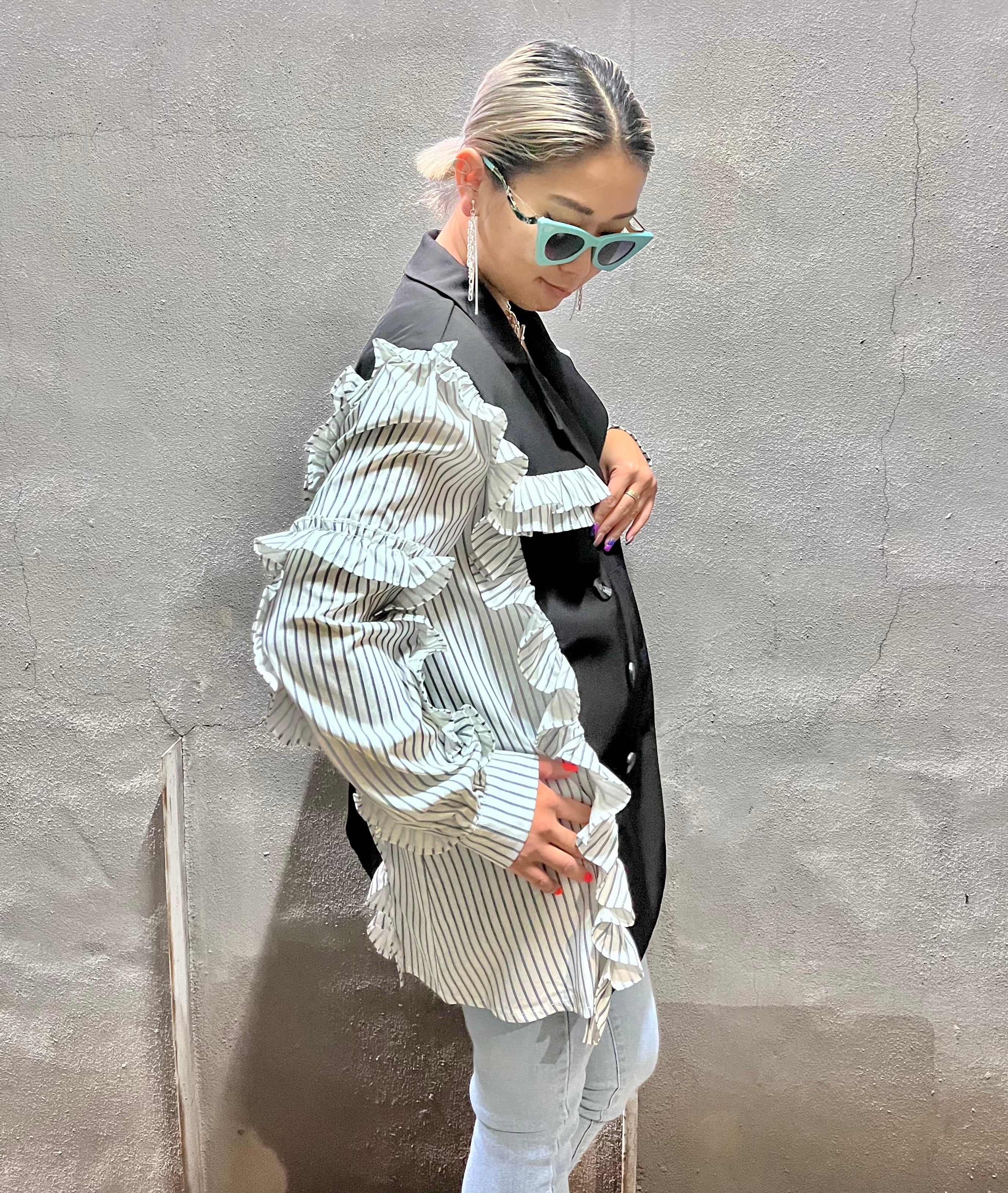stripe sleeve design jacket ジャケット ストライプ シャツ 切り替えデザイン デザインジャケット