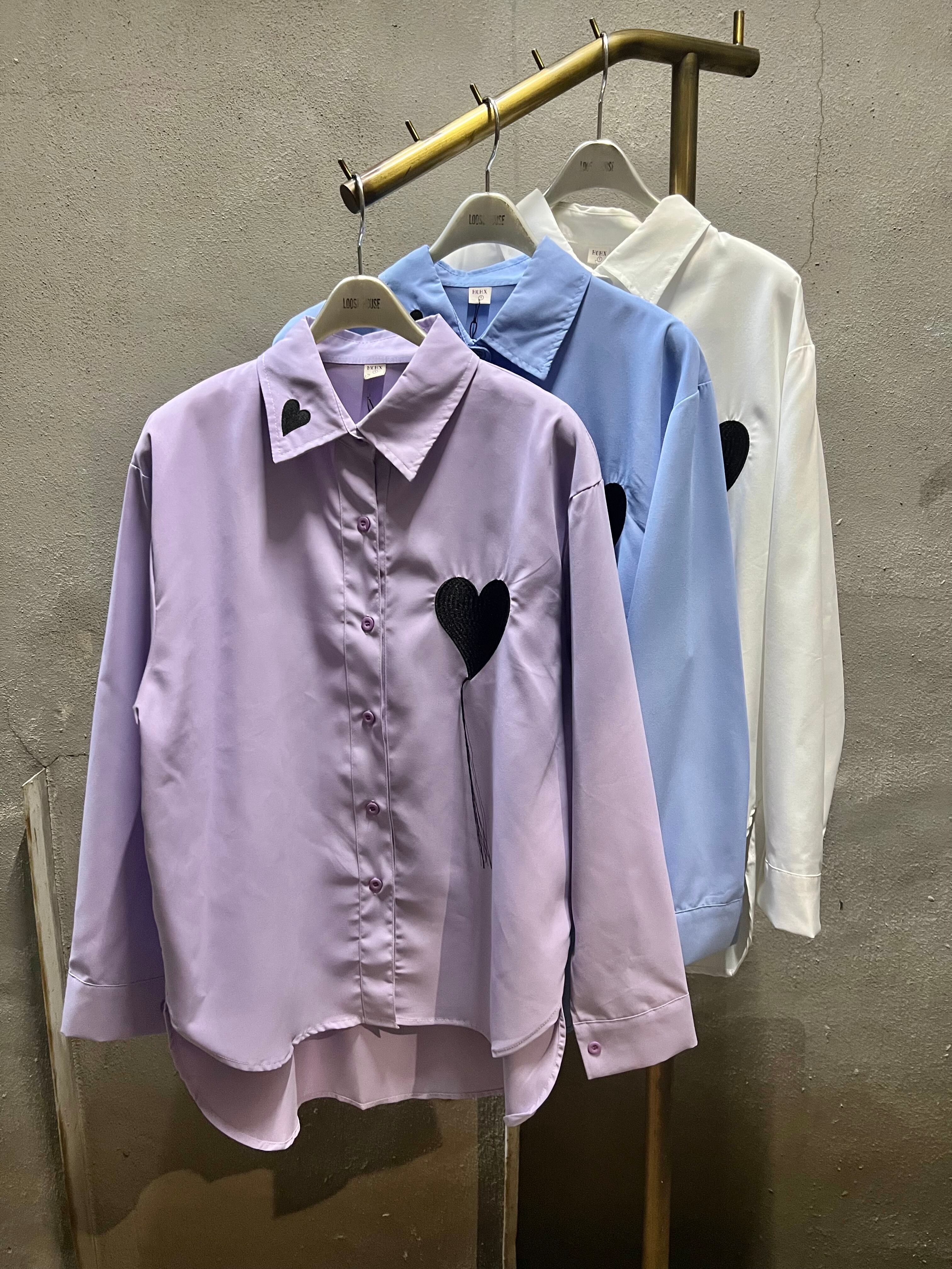 solid color heart point shirt シャツ ハート 刺繍 無地 パステル
