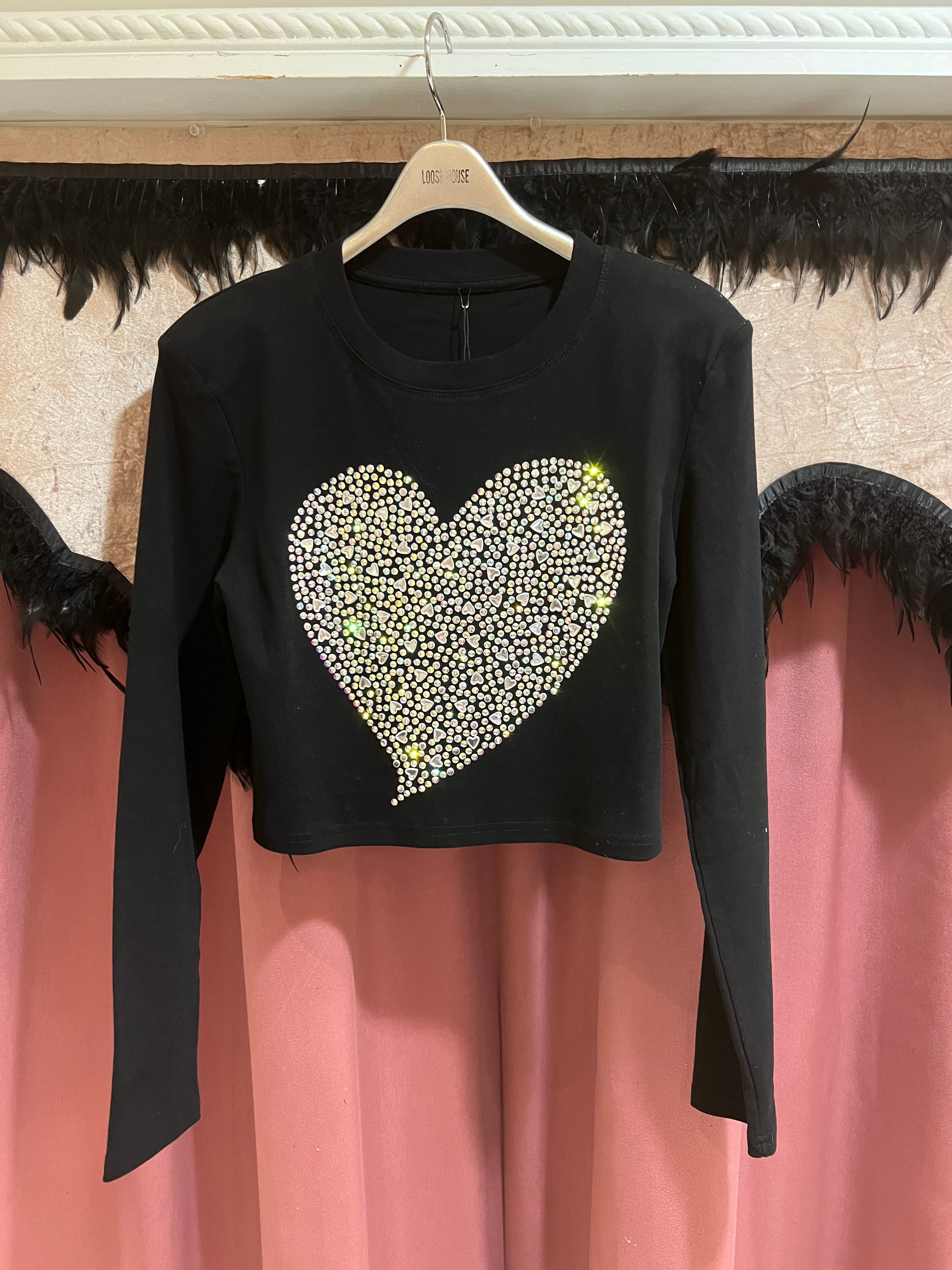 bijou heart croped long sleeve tops トップス ロンT ハート ビジュー キラキラ ストレッチ