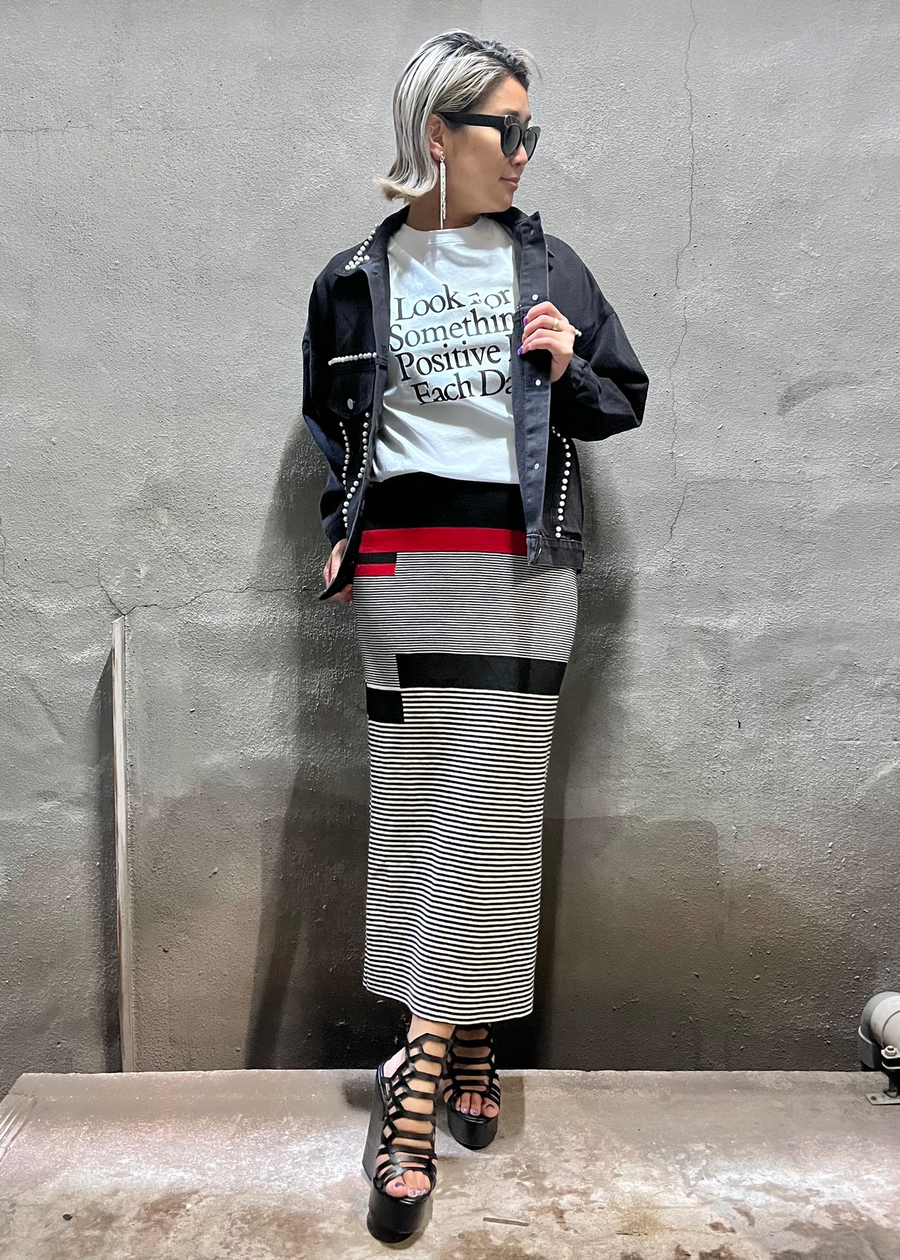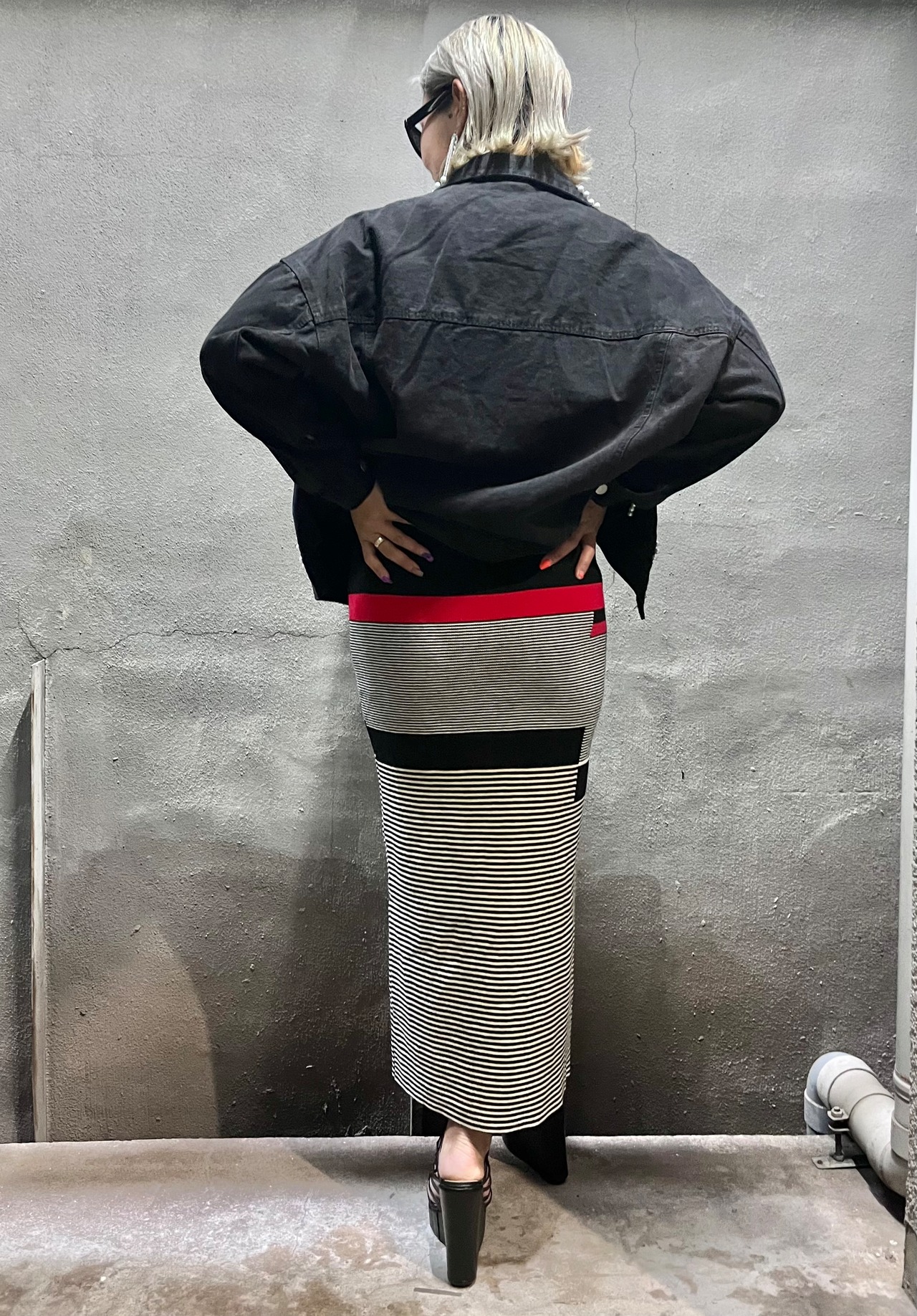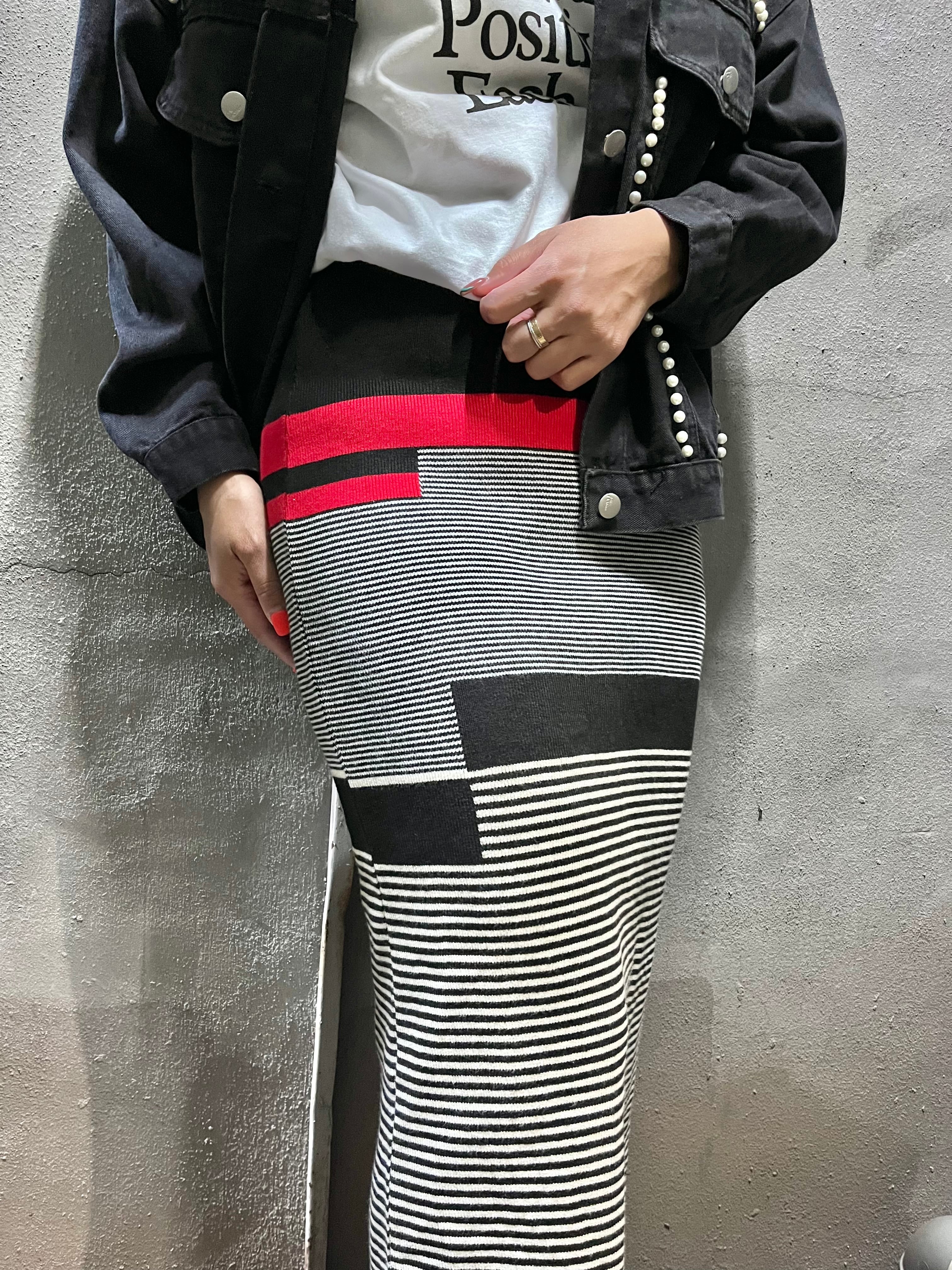 mix border knit tight long skirt スカート ニット タイトスカート ボーダー ロングスカート