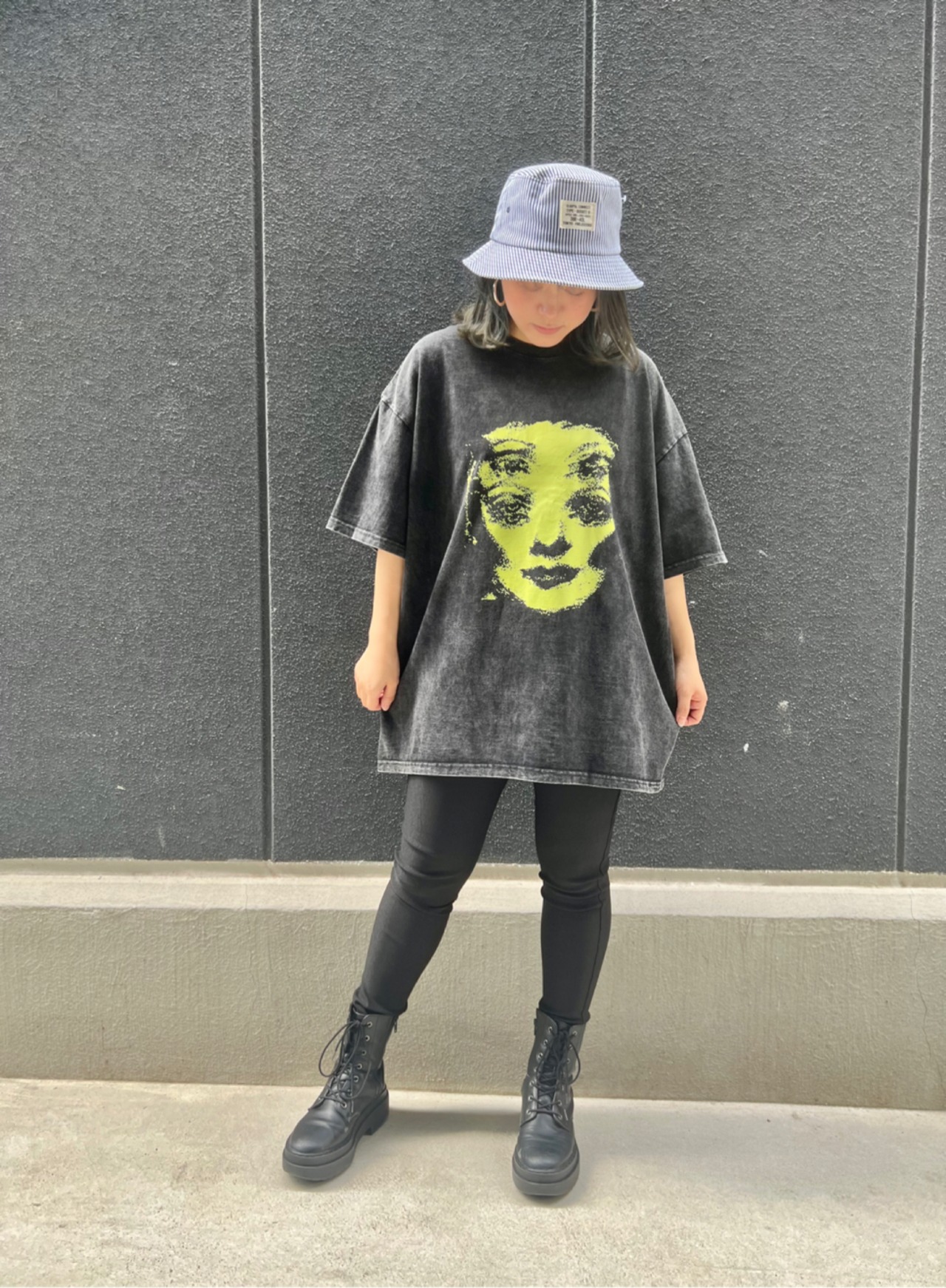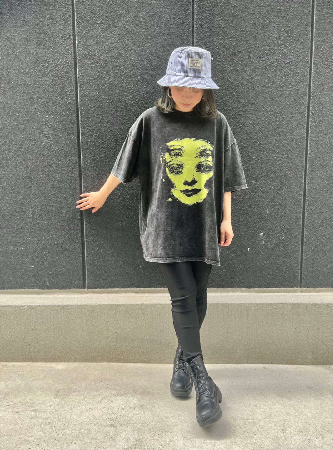 yellow face over size T-shirt Tシャツ オーバーサイズ プリントT ゆったりめ