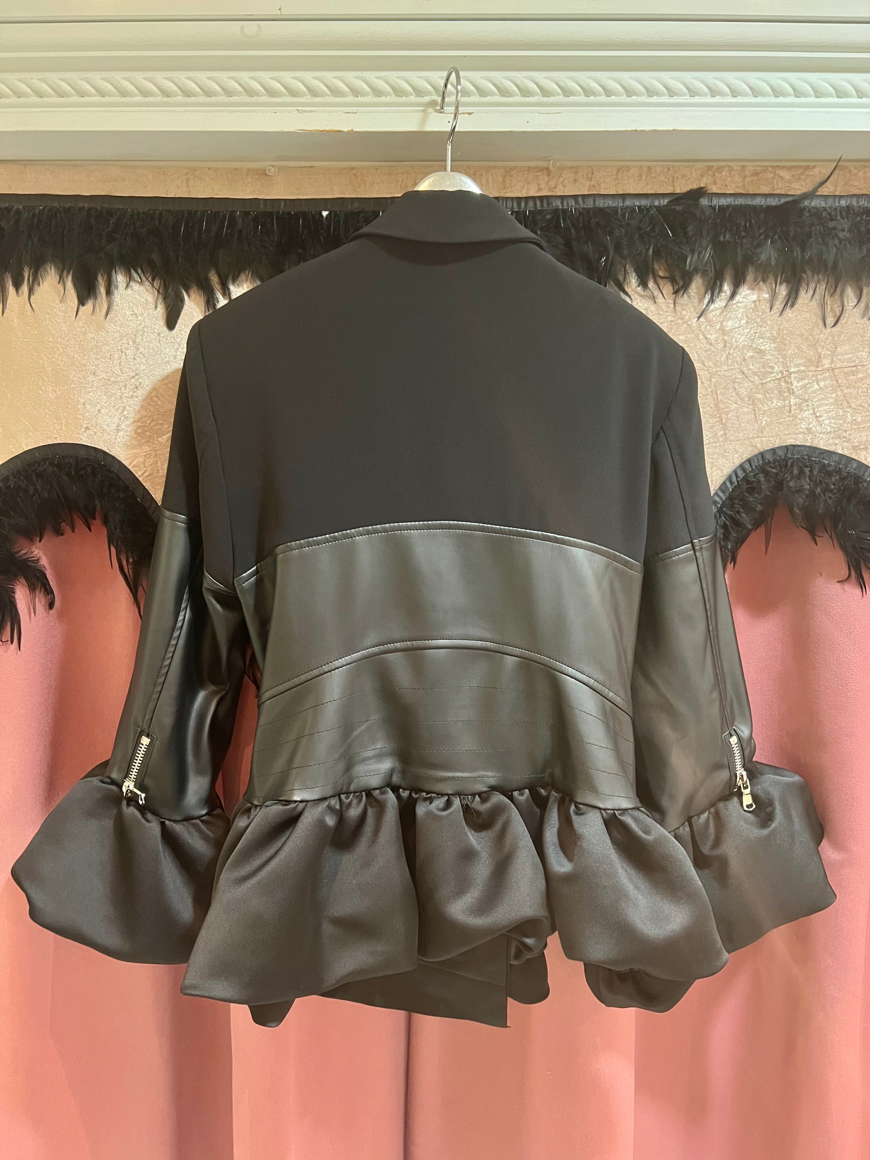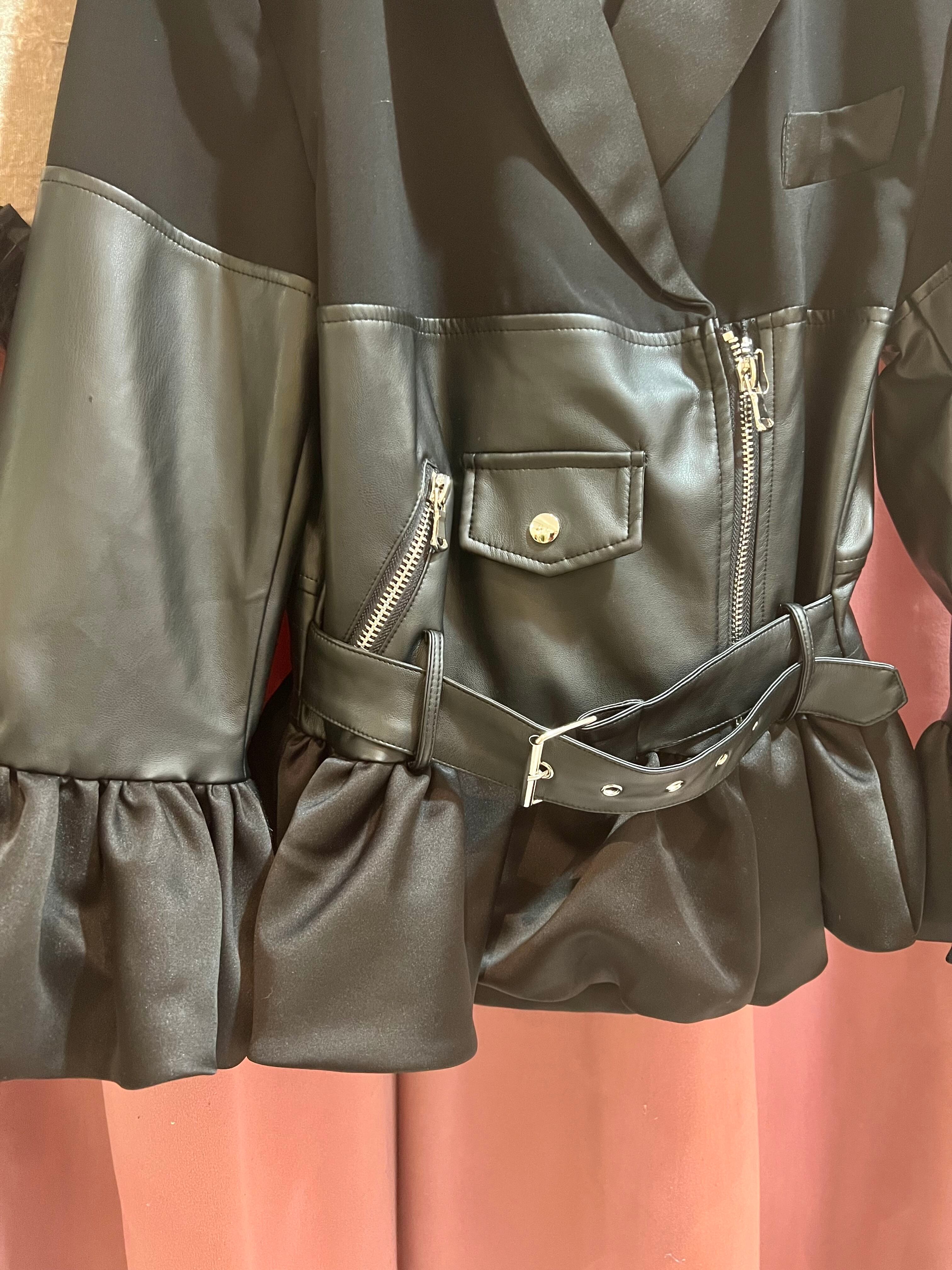 PU leather change gather frill design jacket ジャケット デザインジャケット 合皮 レザー 切り替えデザイン フリル