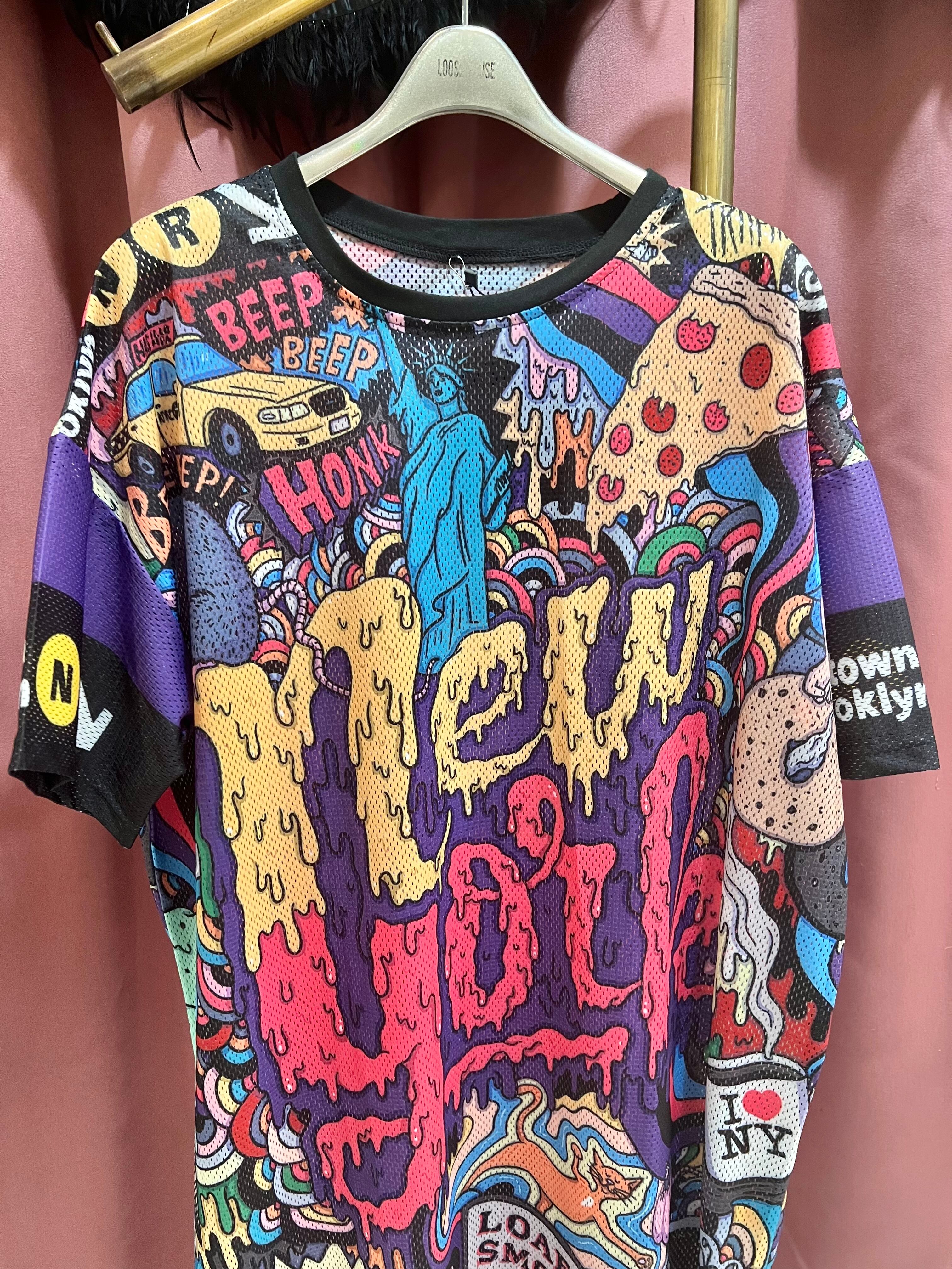 american comic print mesh tunic チュニック メッシュ アメコミ プリント カラフル