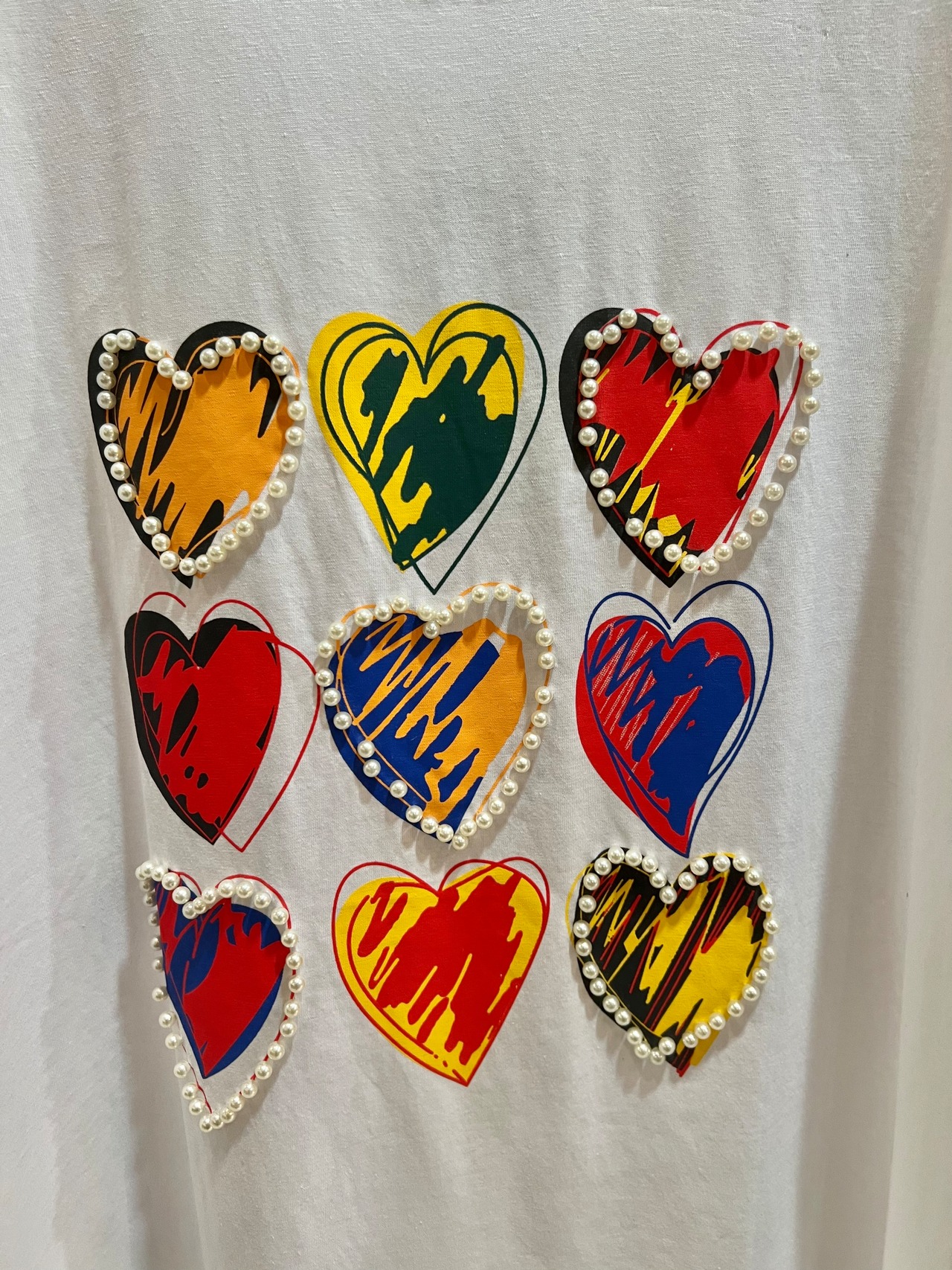 heart print × pearl T-shirt Tシャツ プリントT ハート パール カラフル