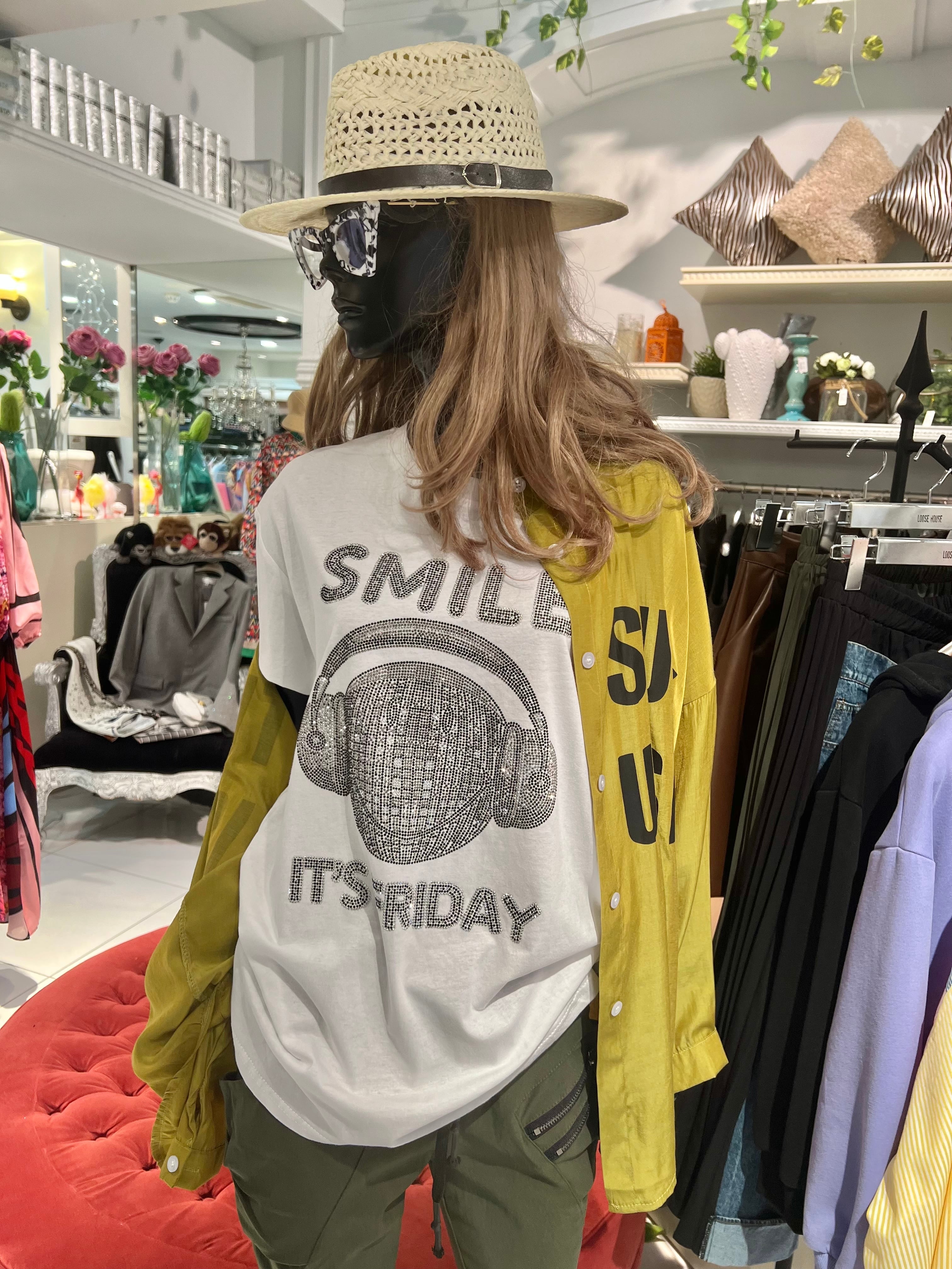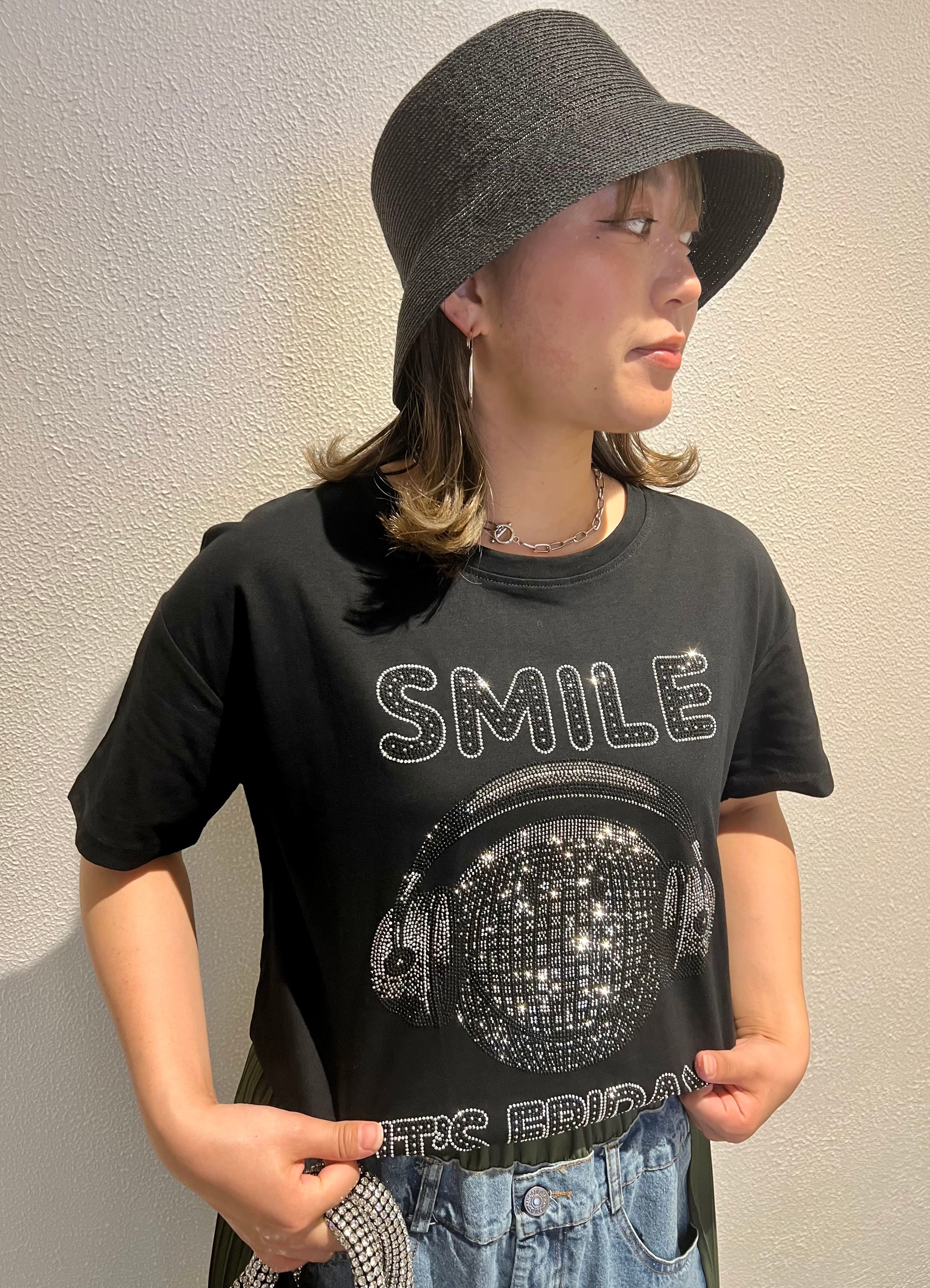 headphone smiley stone T-shirt Tシャツ スマイリー にこちゃん キラキラ ストーン ハピス プリントT