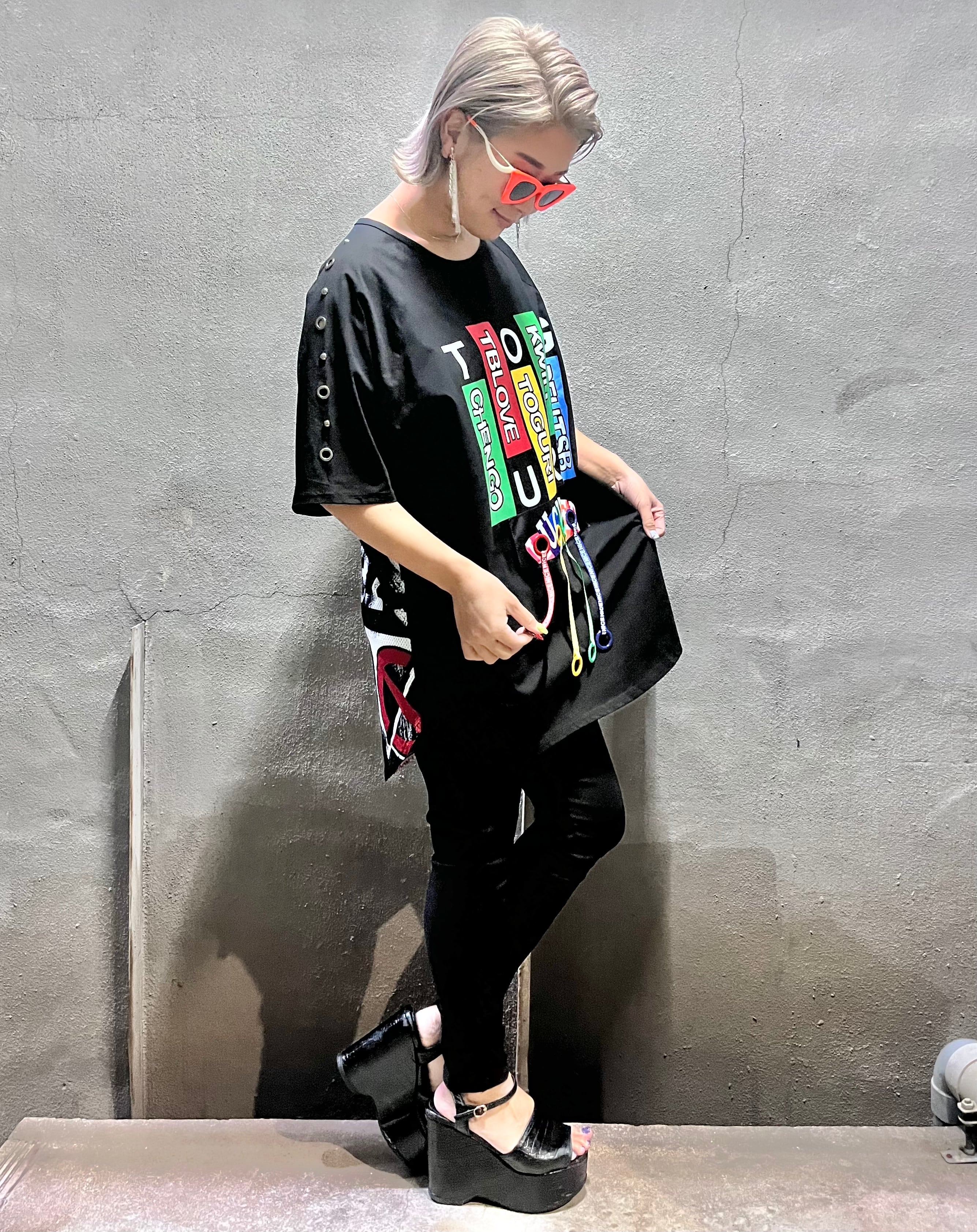 color eyelet × ribbon T-tunic チュニック Tチュニック メッシュ アイレット リボン カラフル