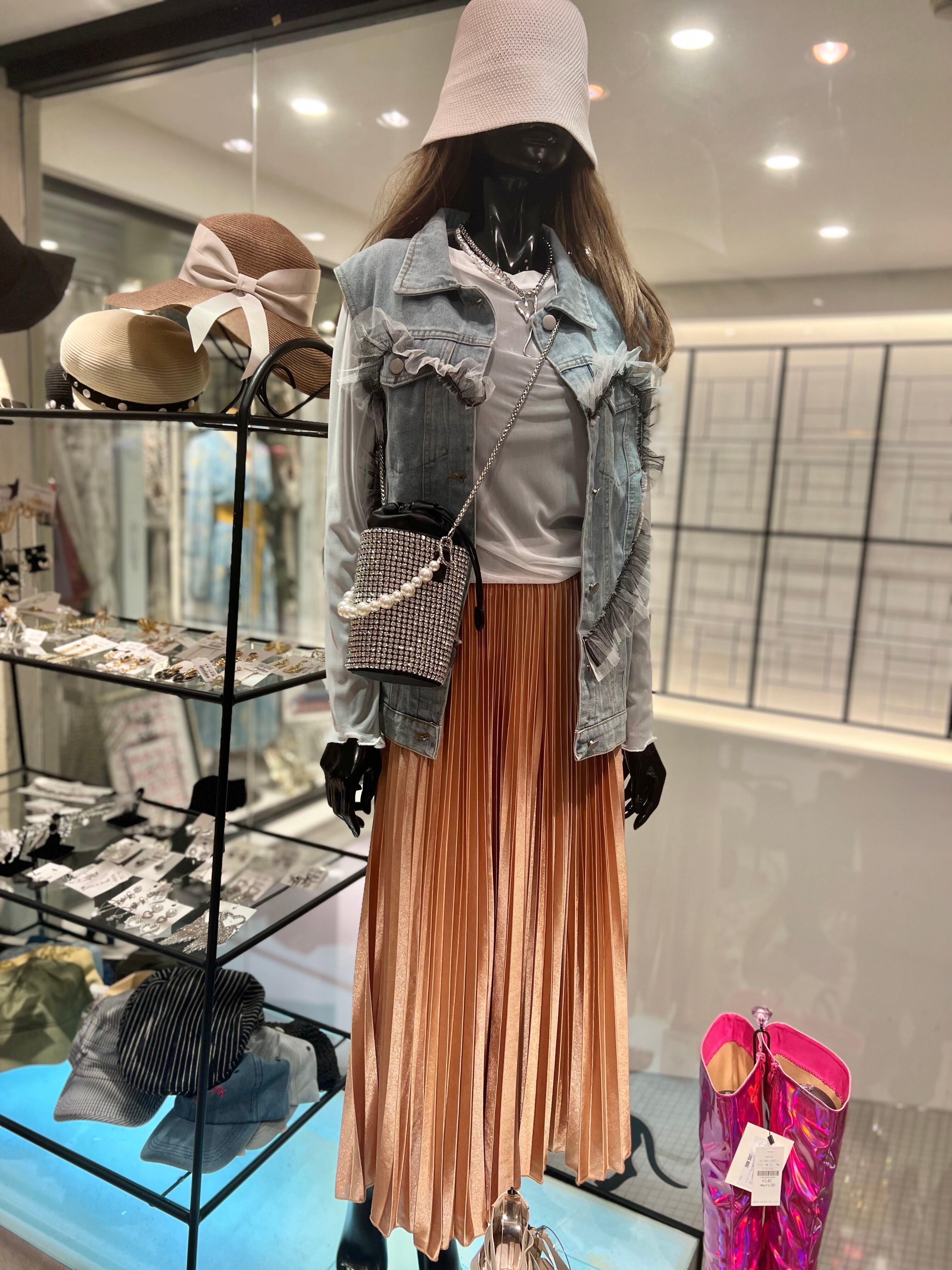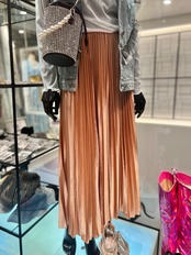 プリーツの入り方にもこだわり、動くたびに光沢感がさらに輝いて見えて美しいです。