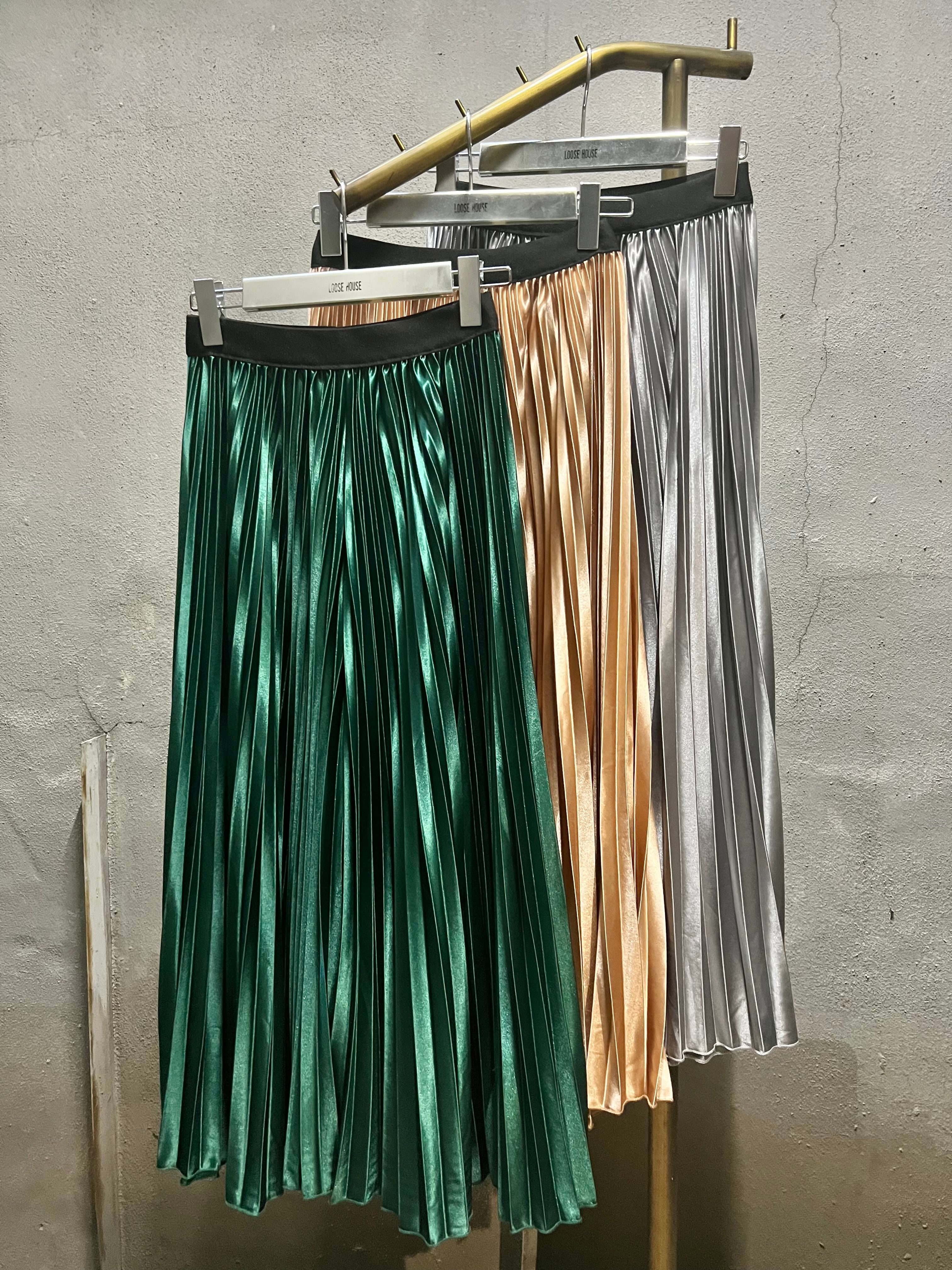 metallic satin pleats pants パンツ ガウチョパンツ ゴムウエスト プリーツ サテン メタリック
